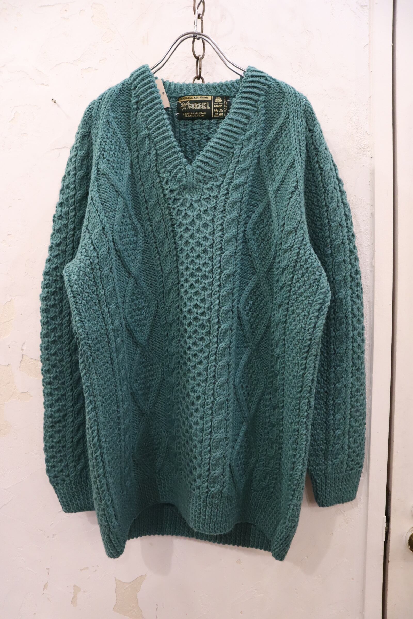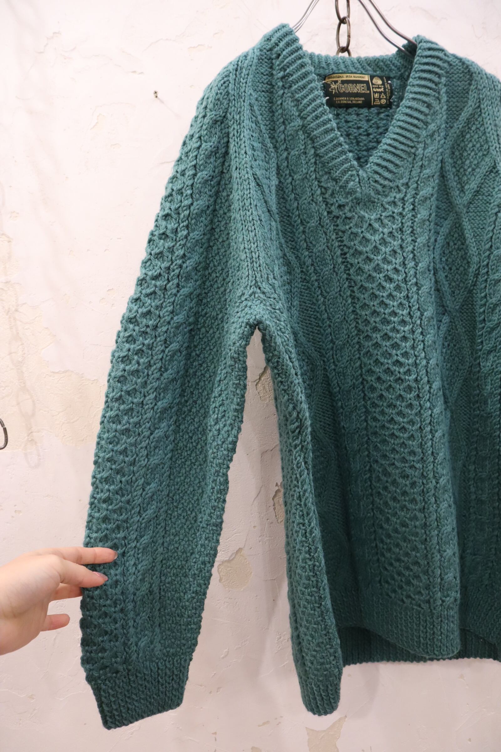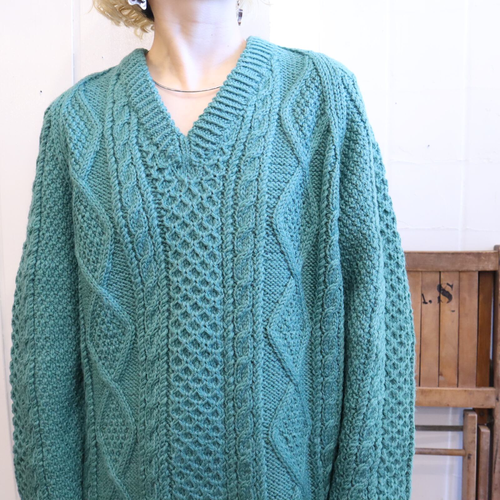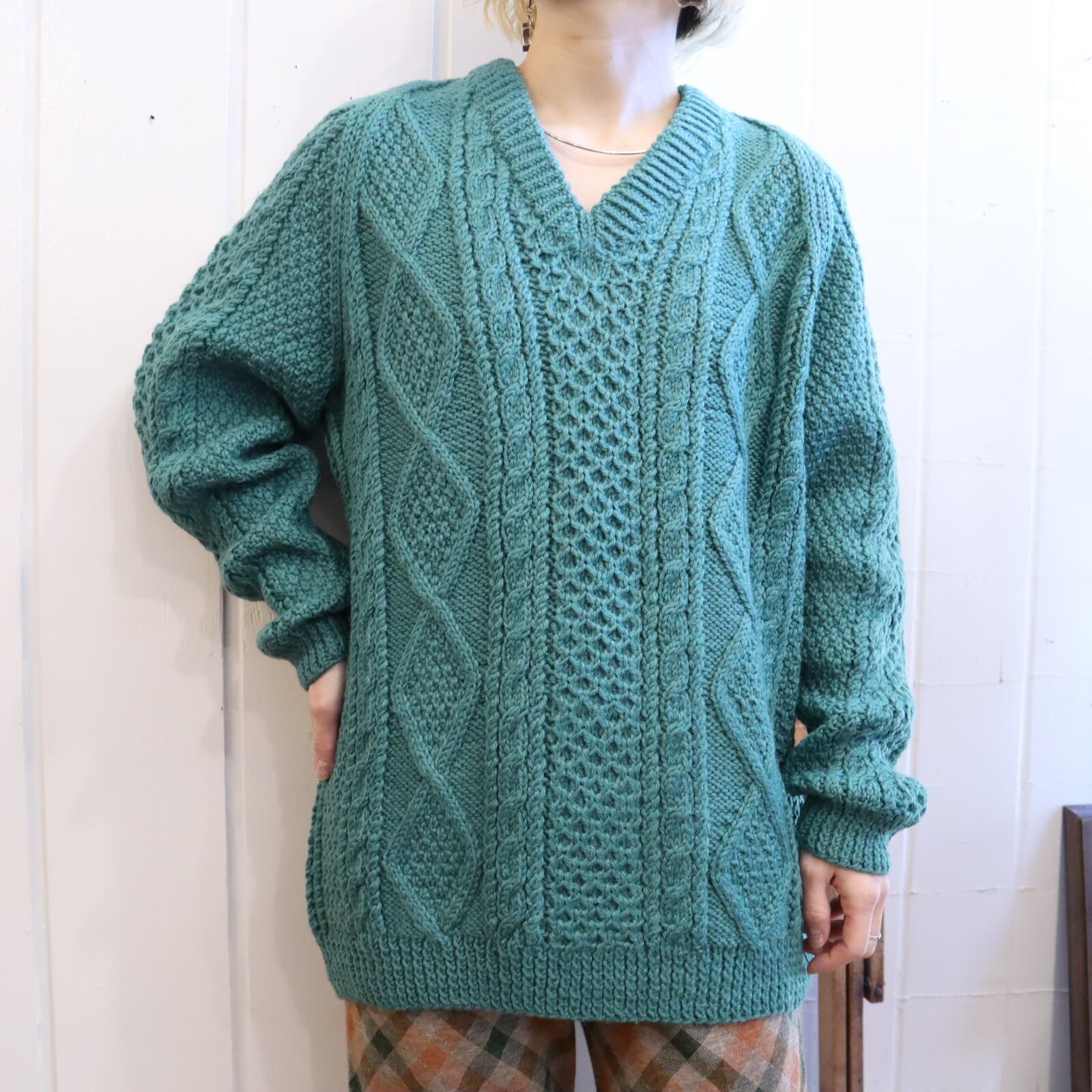 mossgreen plain fisherman knit pullover [l-2220]