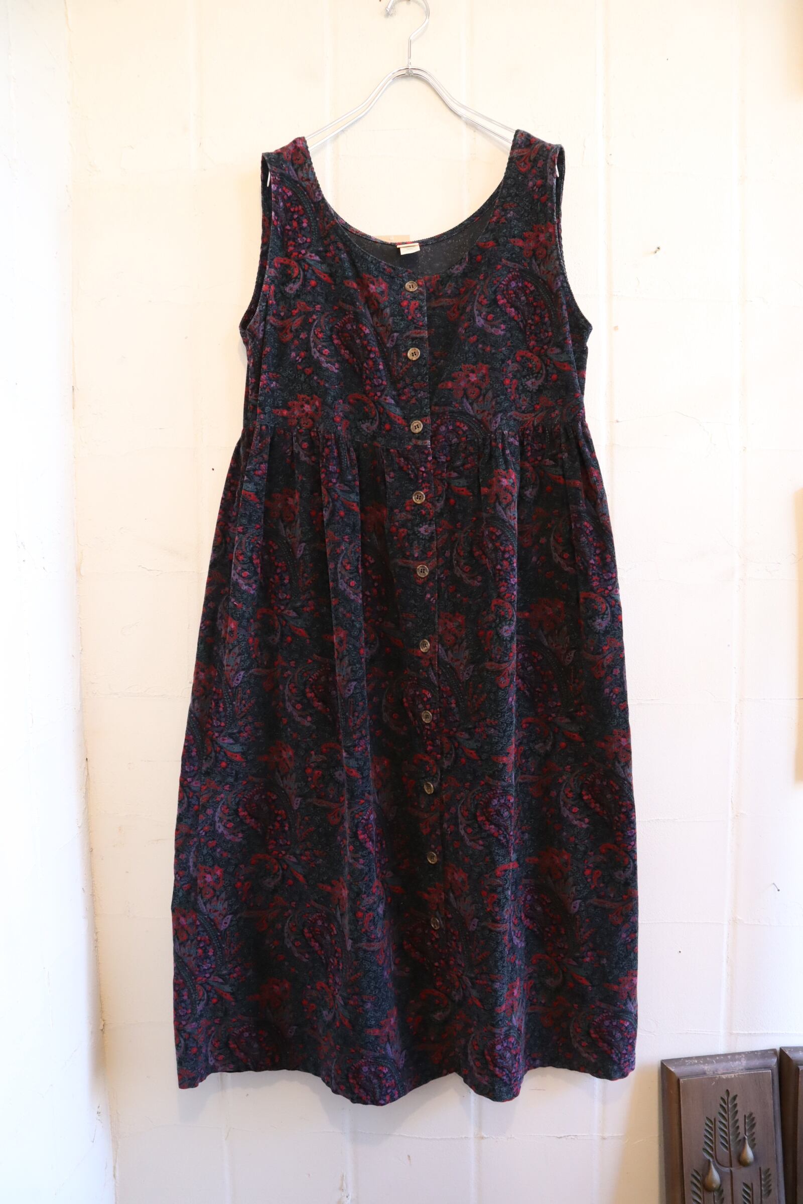 L.L.Bean paisley pattern sleeveless corduroy dress [l-2224]
