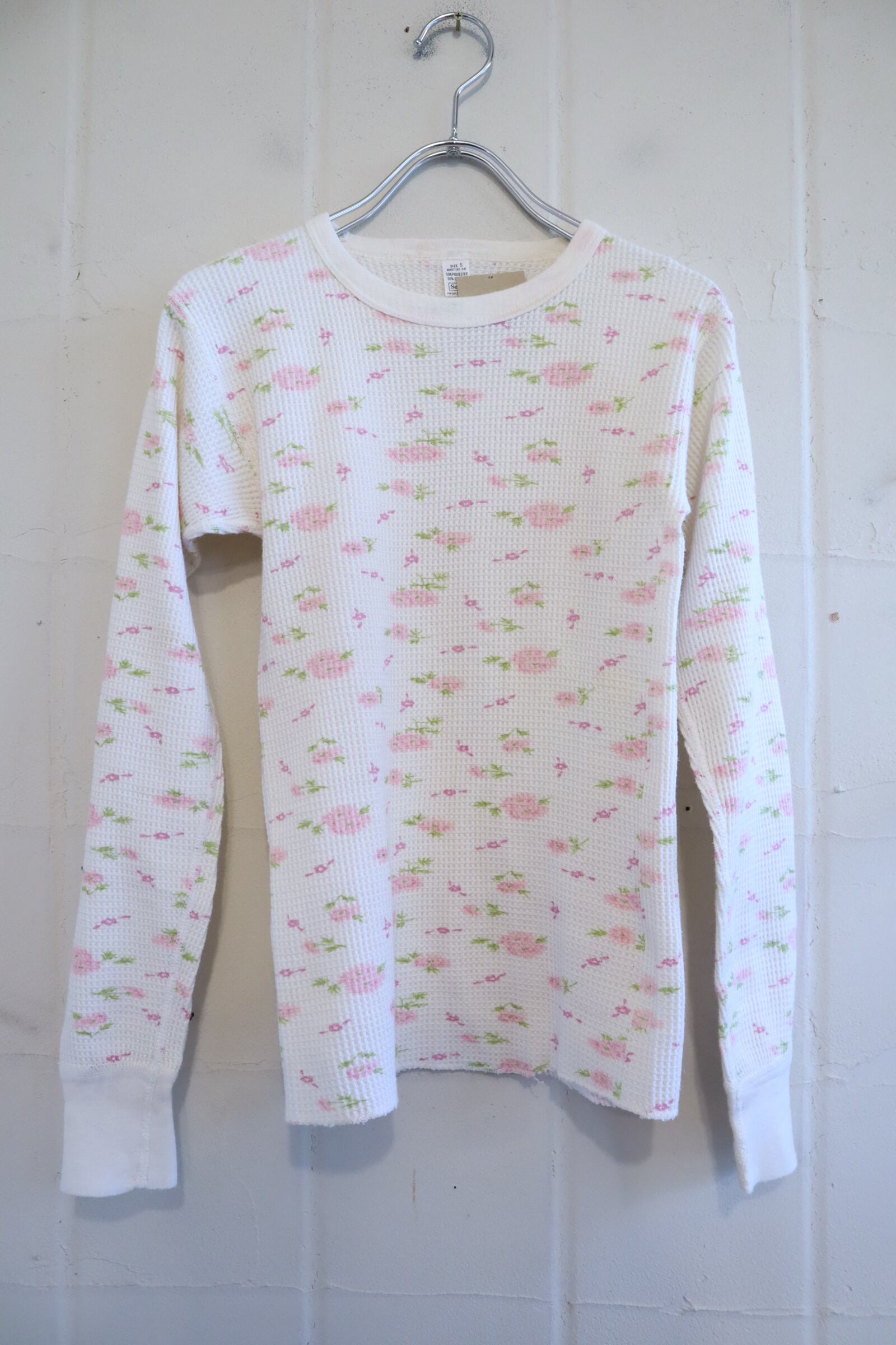 ピンクと黄緑のカラーリングが可愛いお花柄のサーマルトップス。