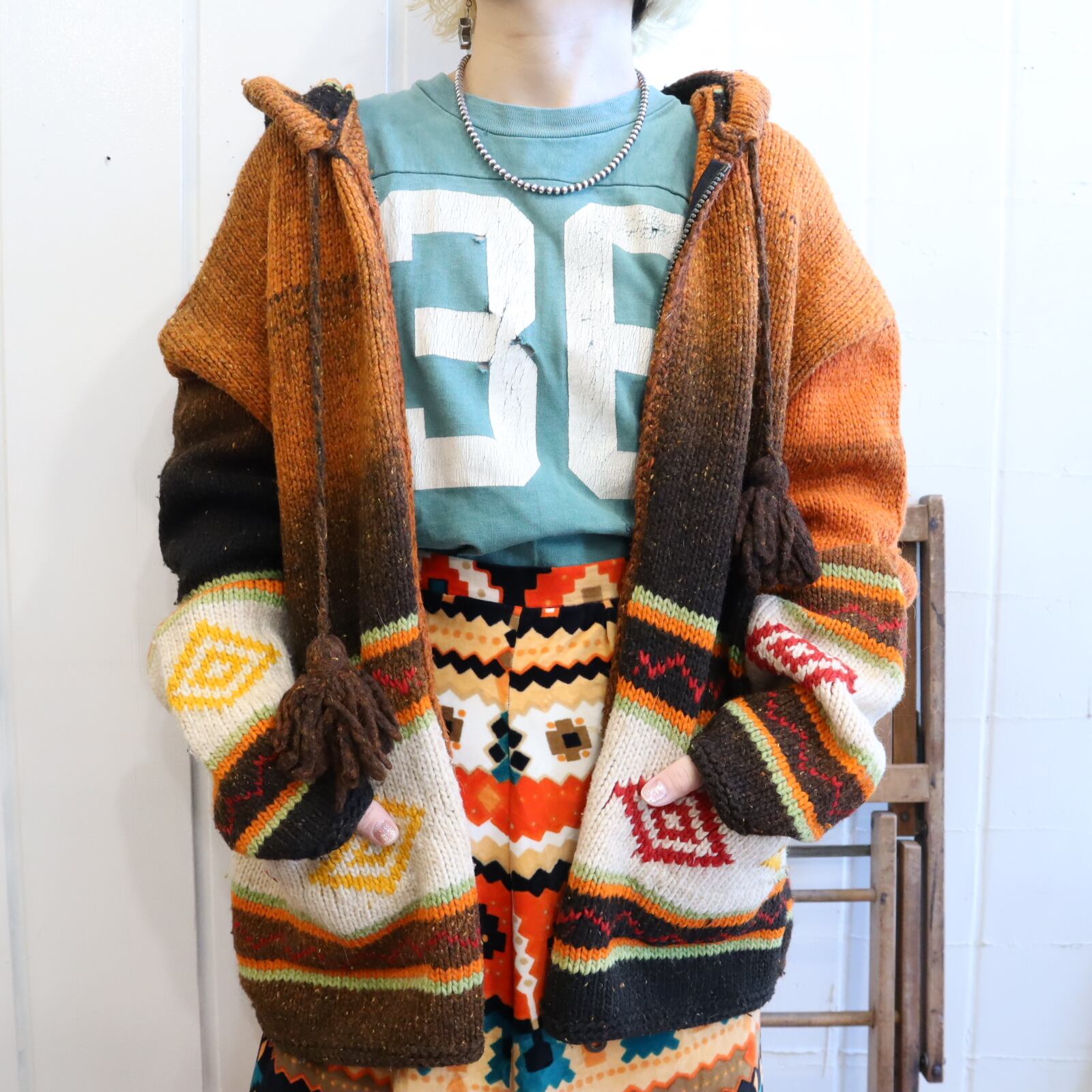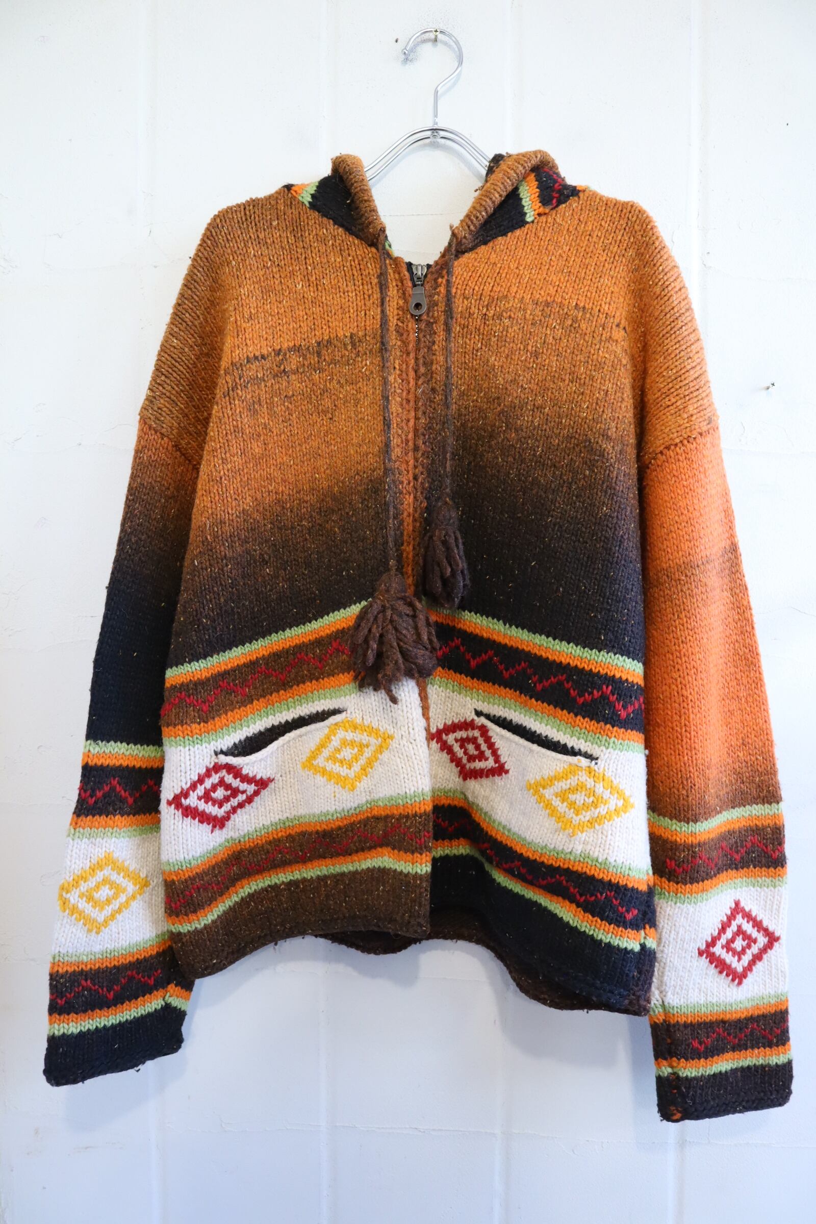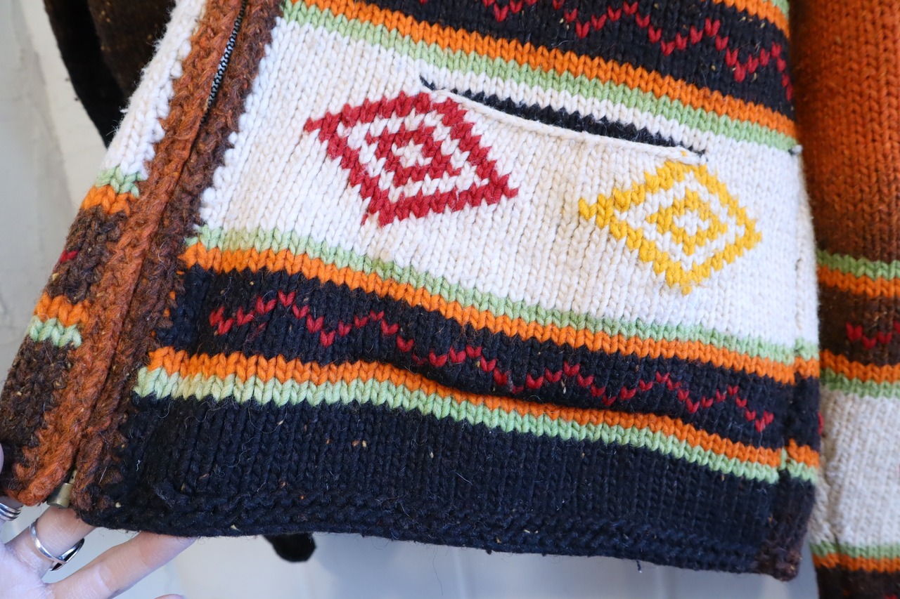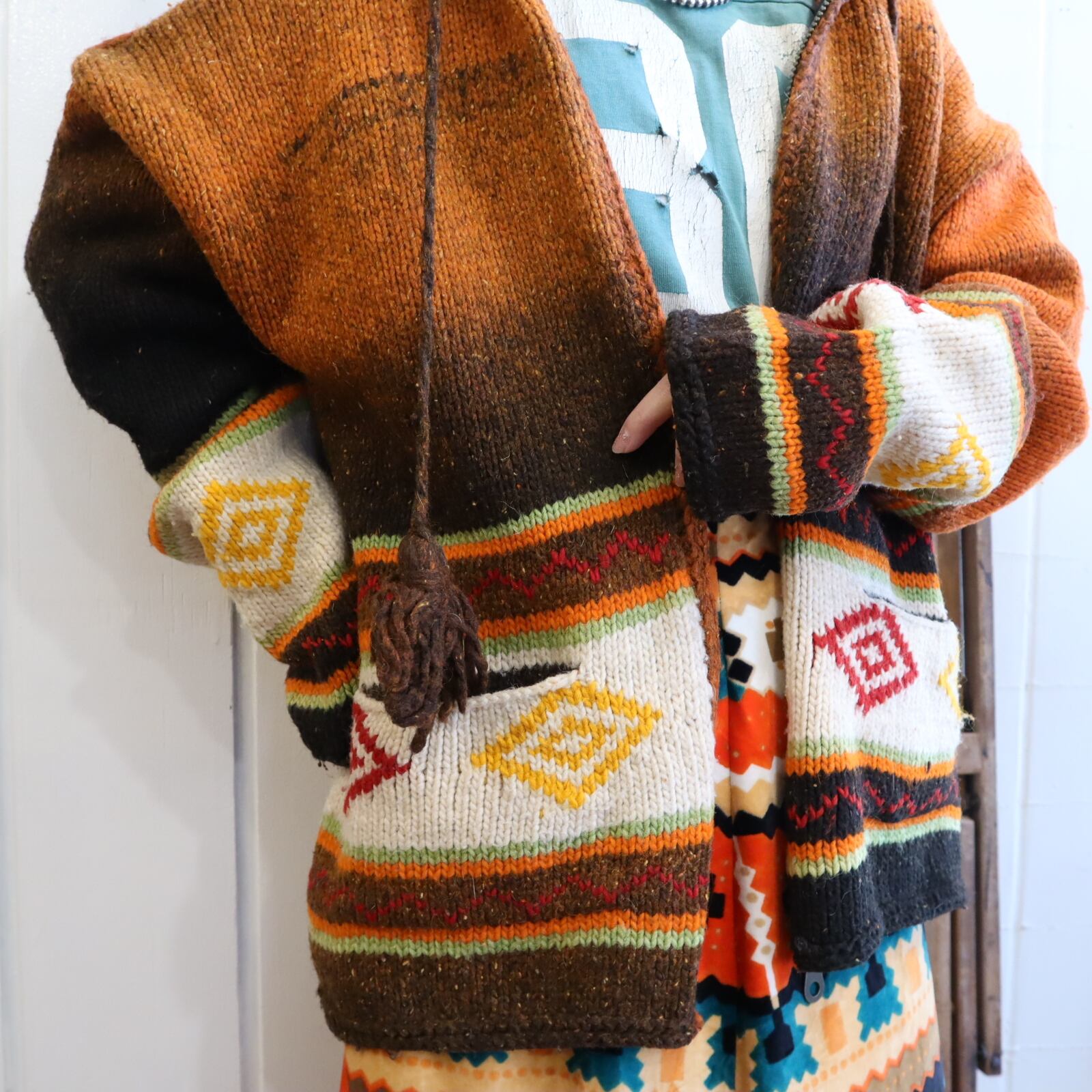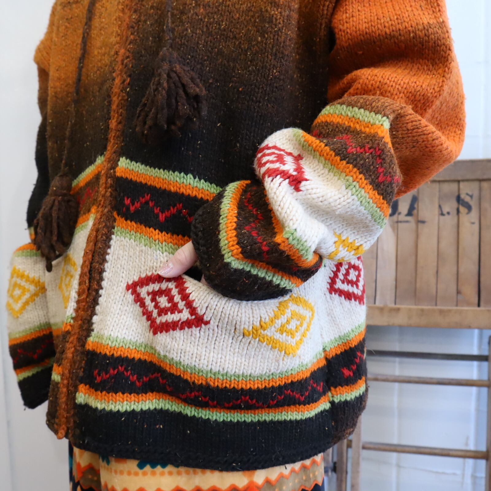 orange×brown×colorful fullzip knit cardigan [l-2259]