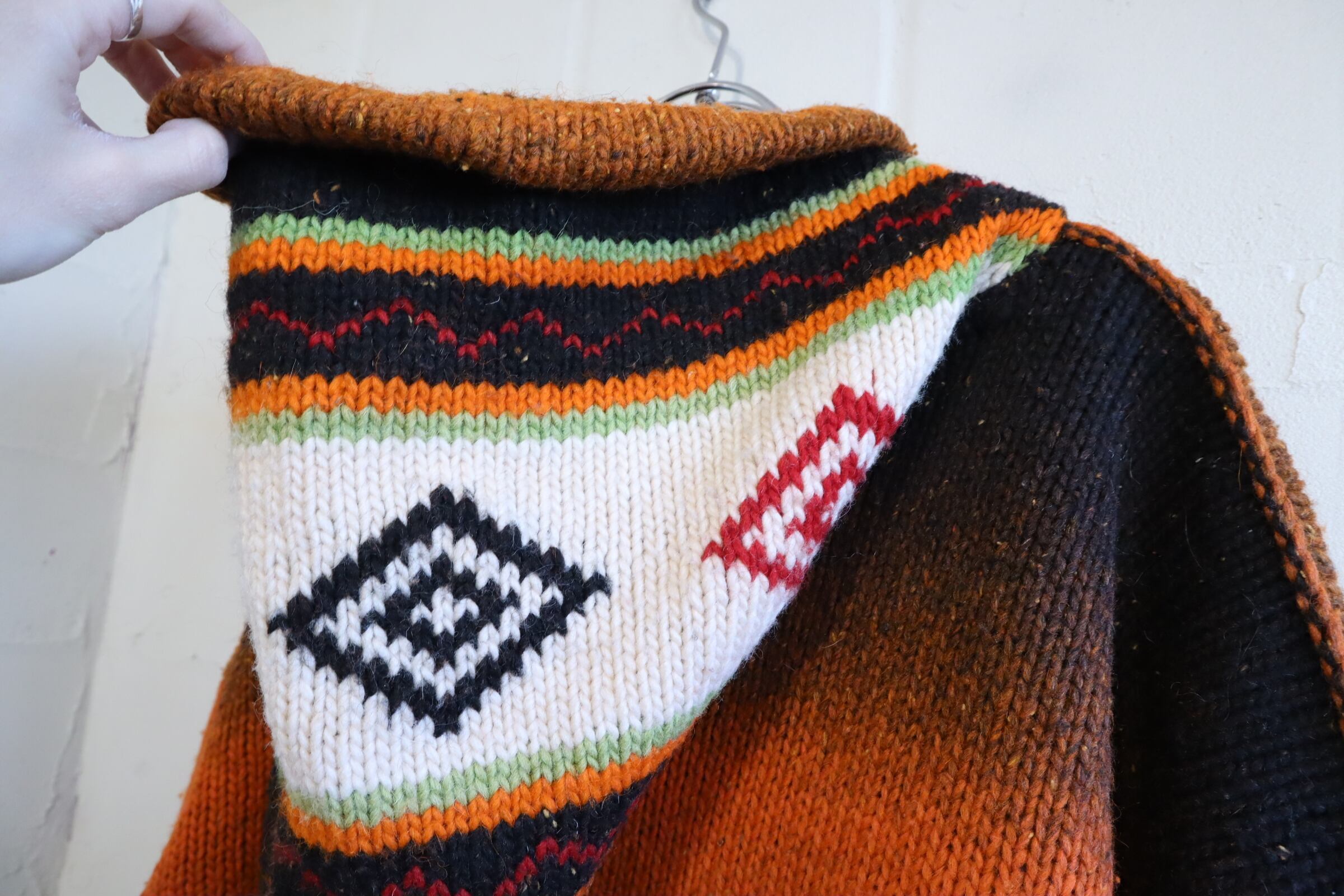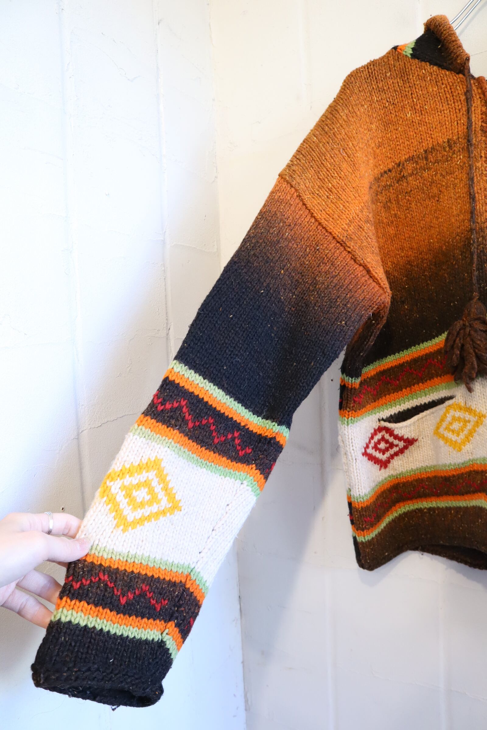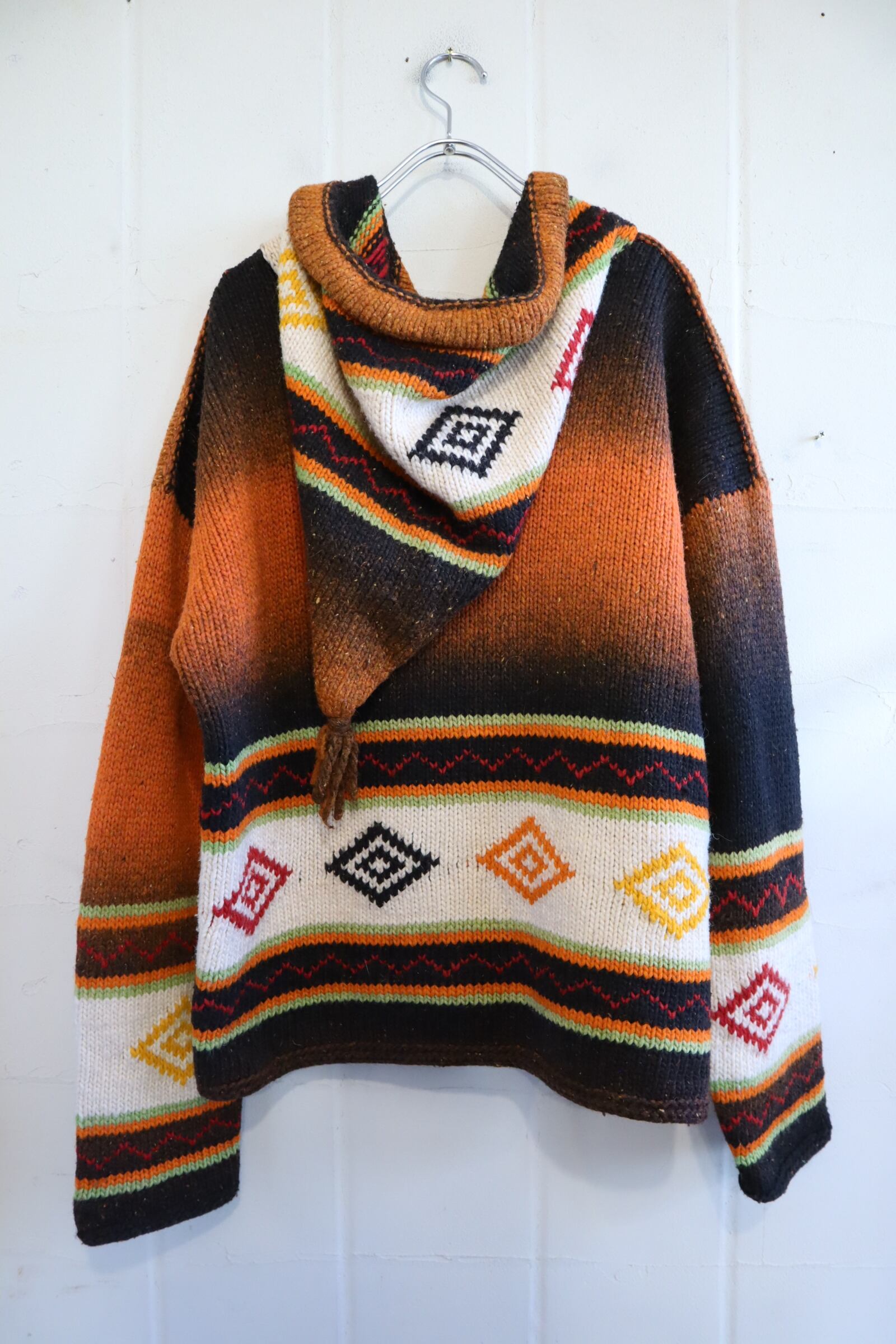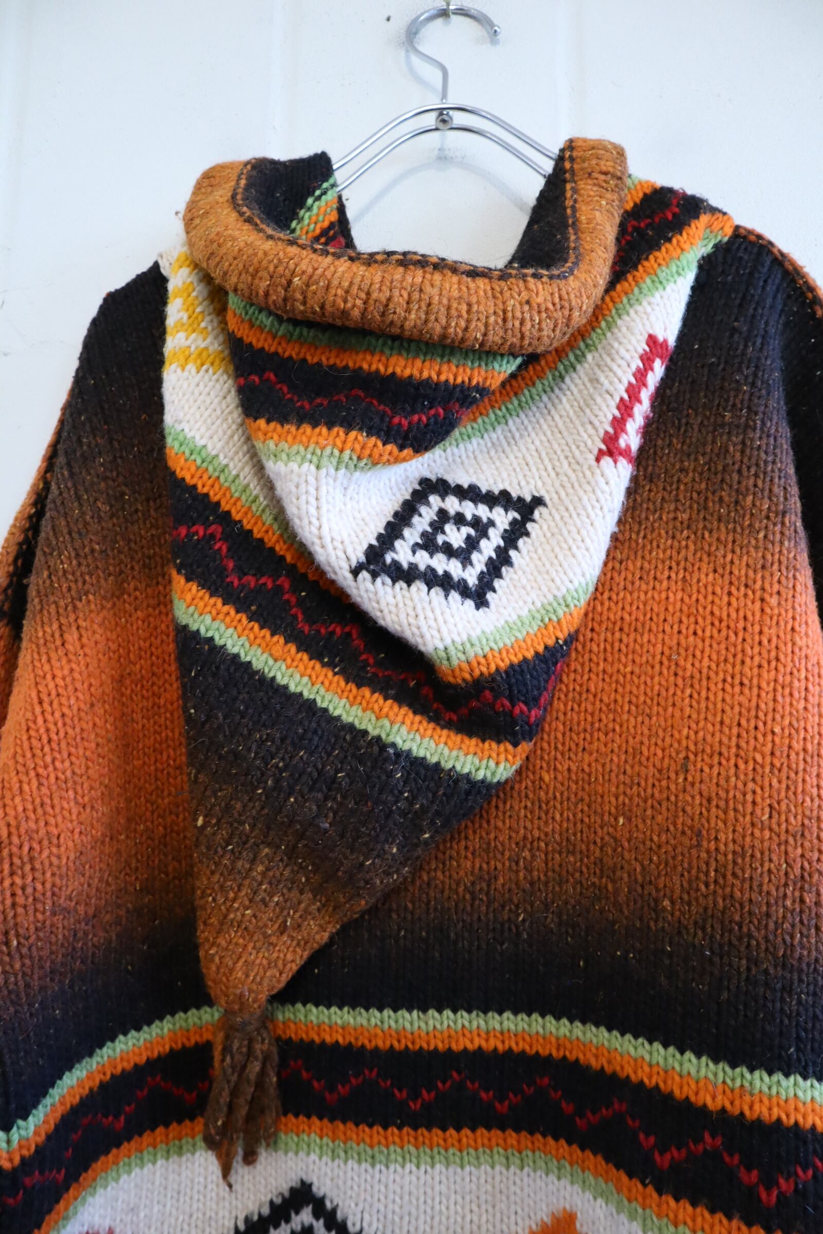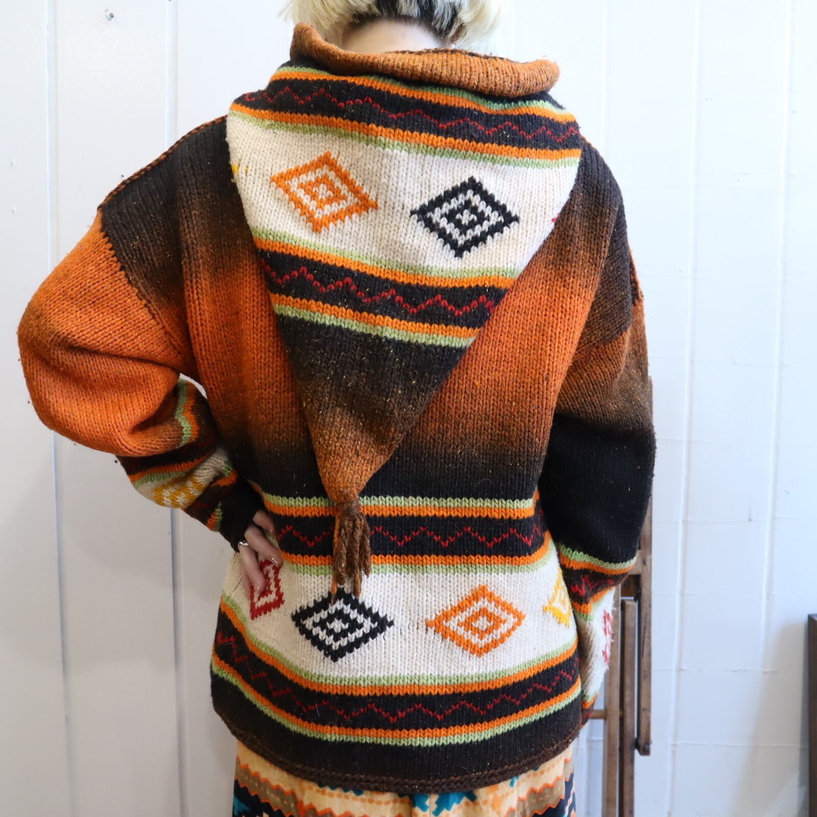 orange×brown×colorful fullzip knit cardigan [l-2259]