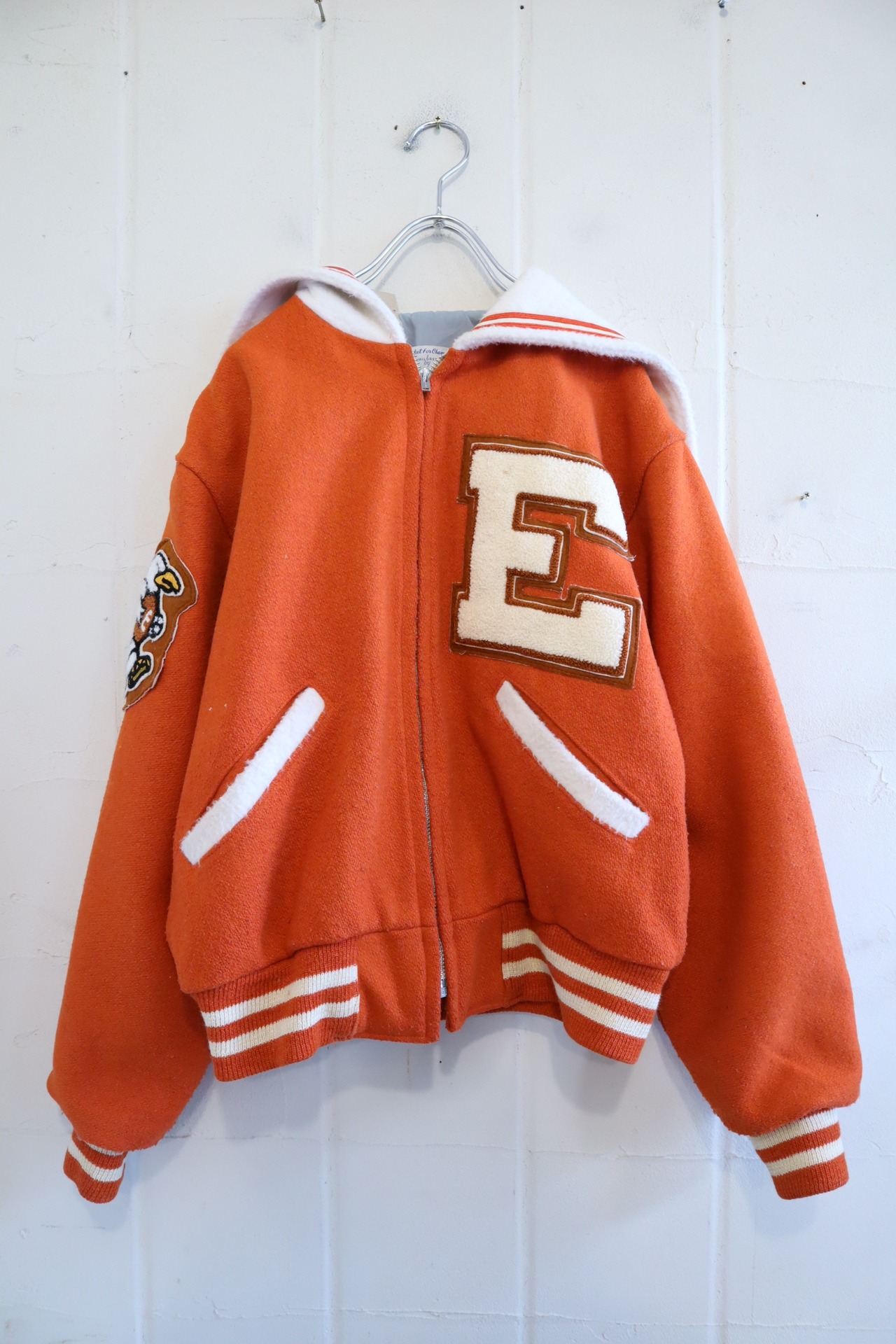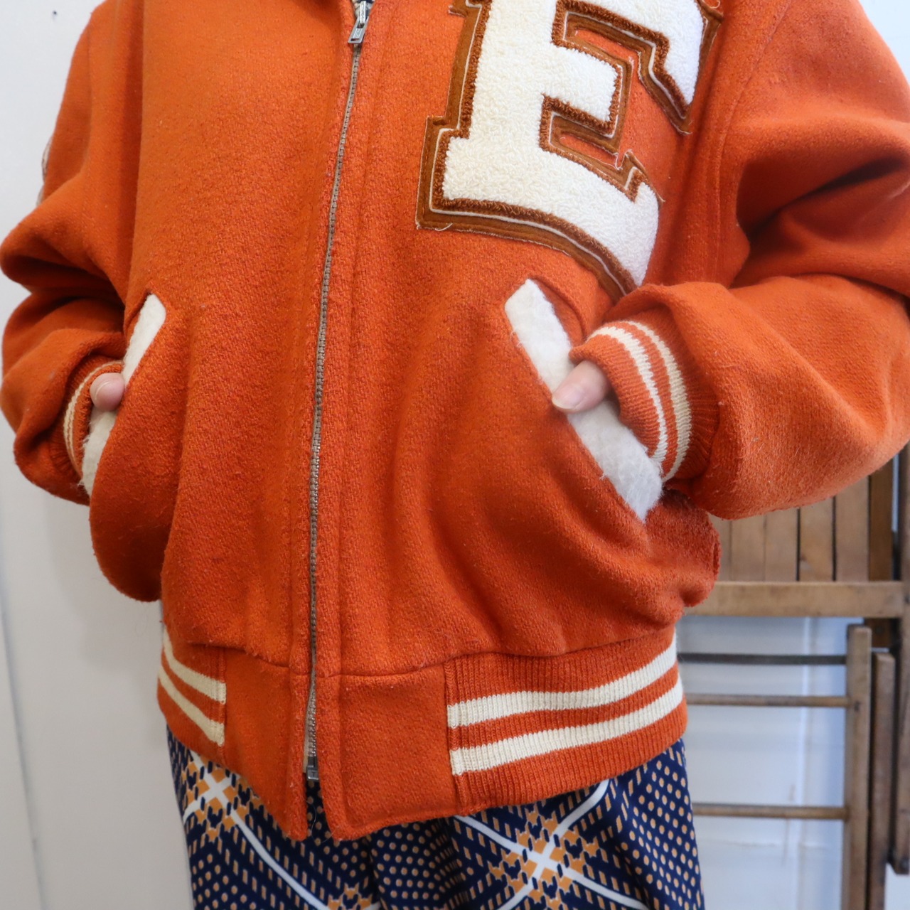 60s-70s orange×white sailorcollar stadium jumper [l-2262]