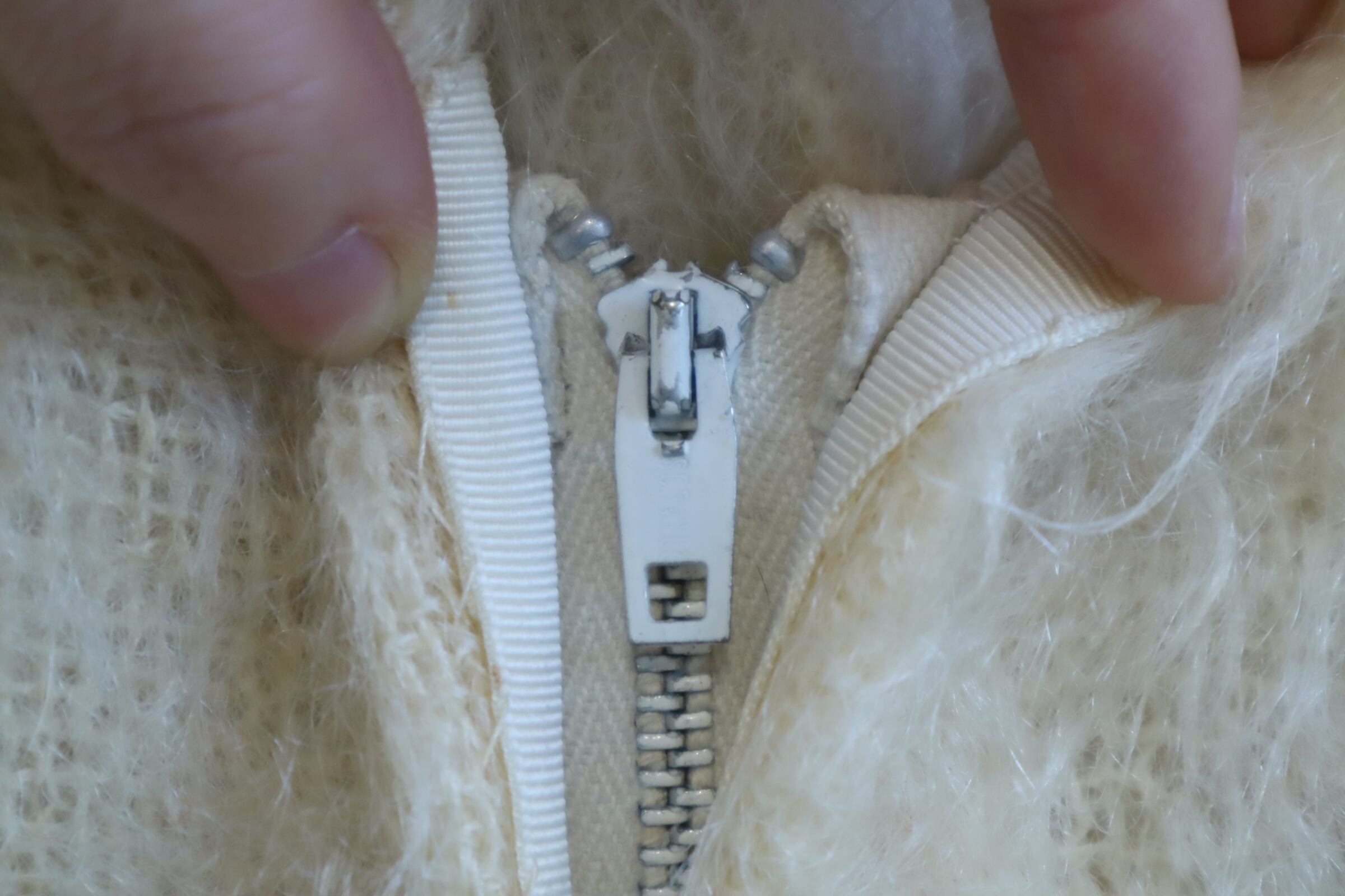 white plane zip flare sleeve mohair knit cardigan [l-2269]
