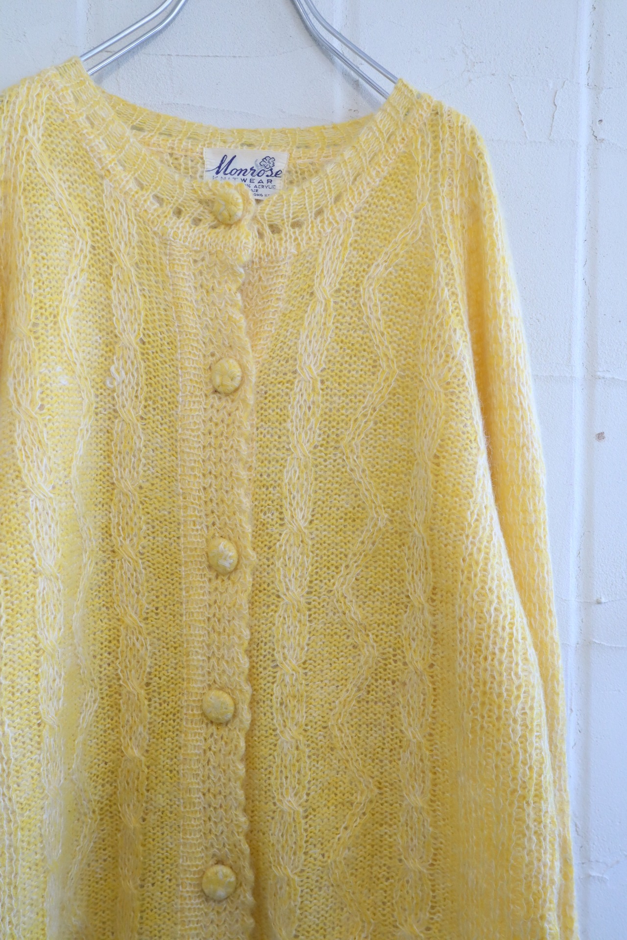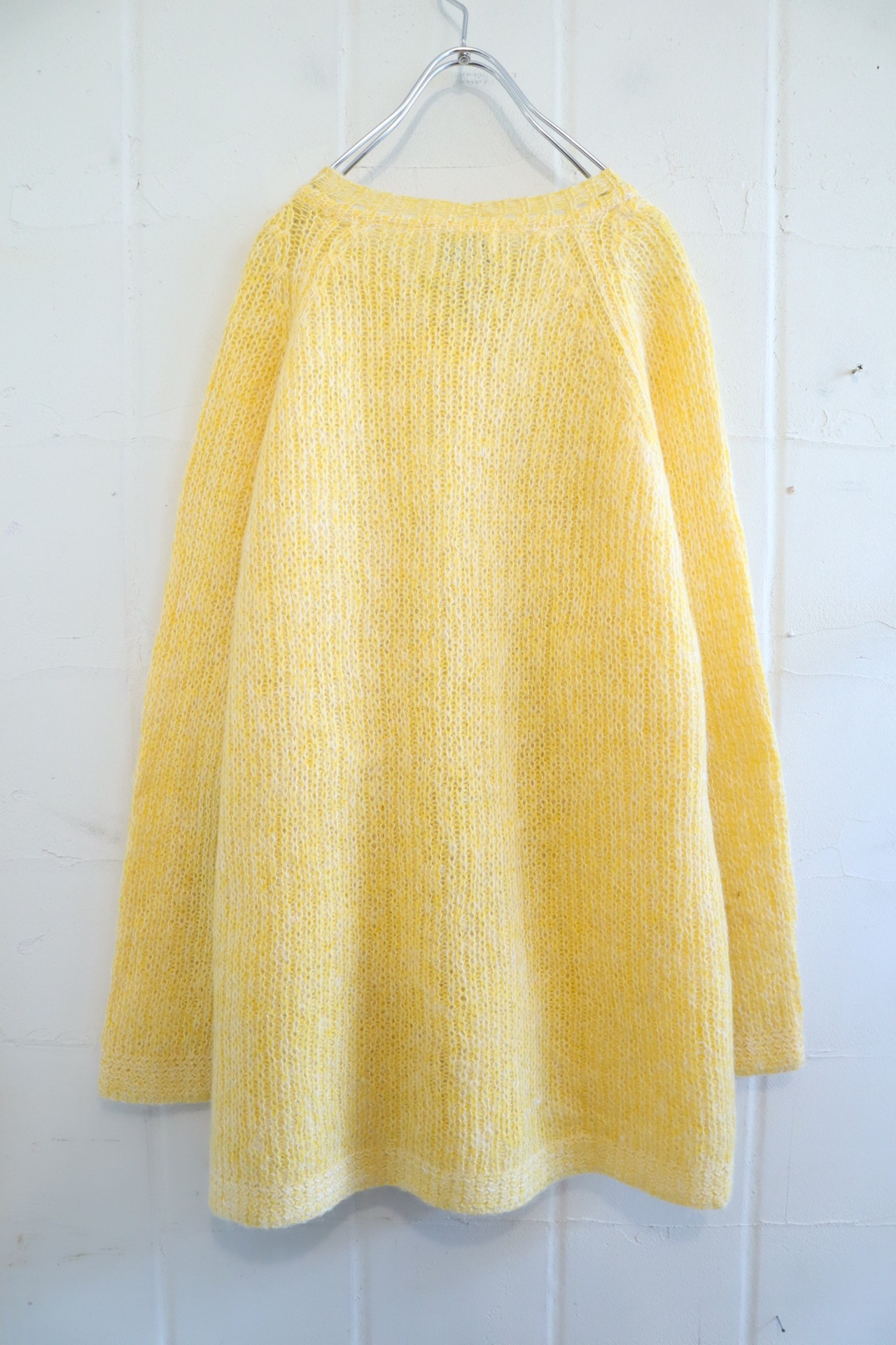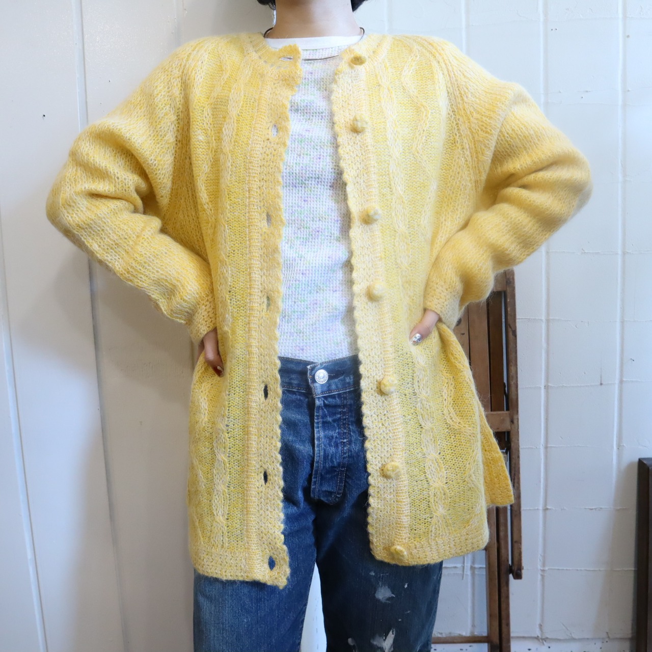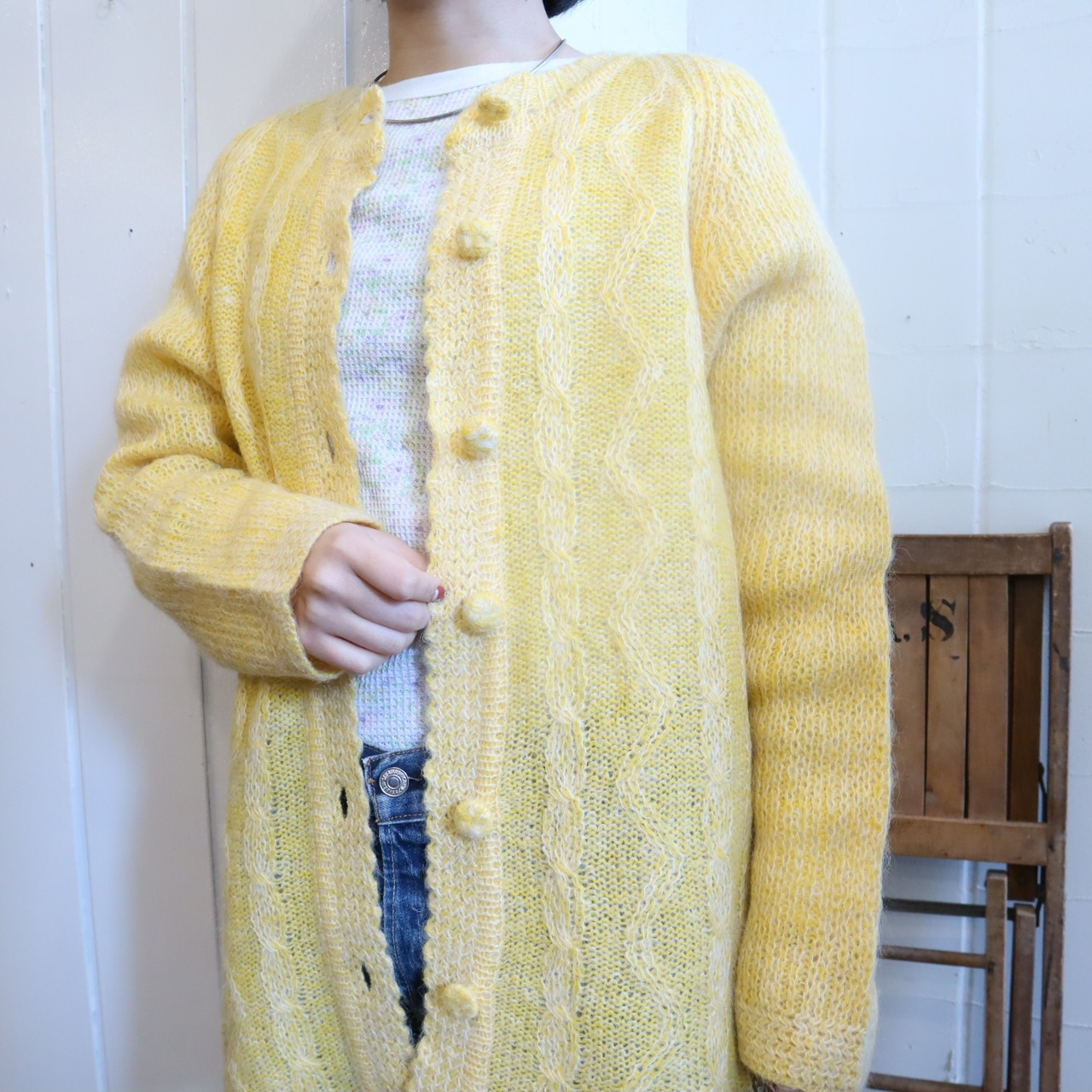 明るく柔らかいイエローのお色味や、長めの丈感が可愛いモヘアニットカーディガン*