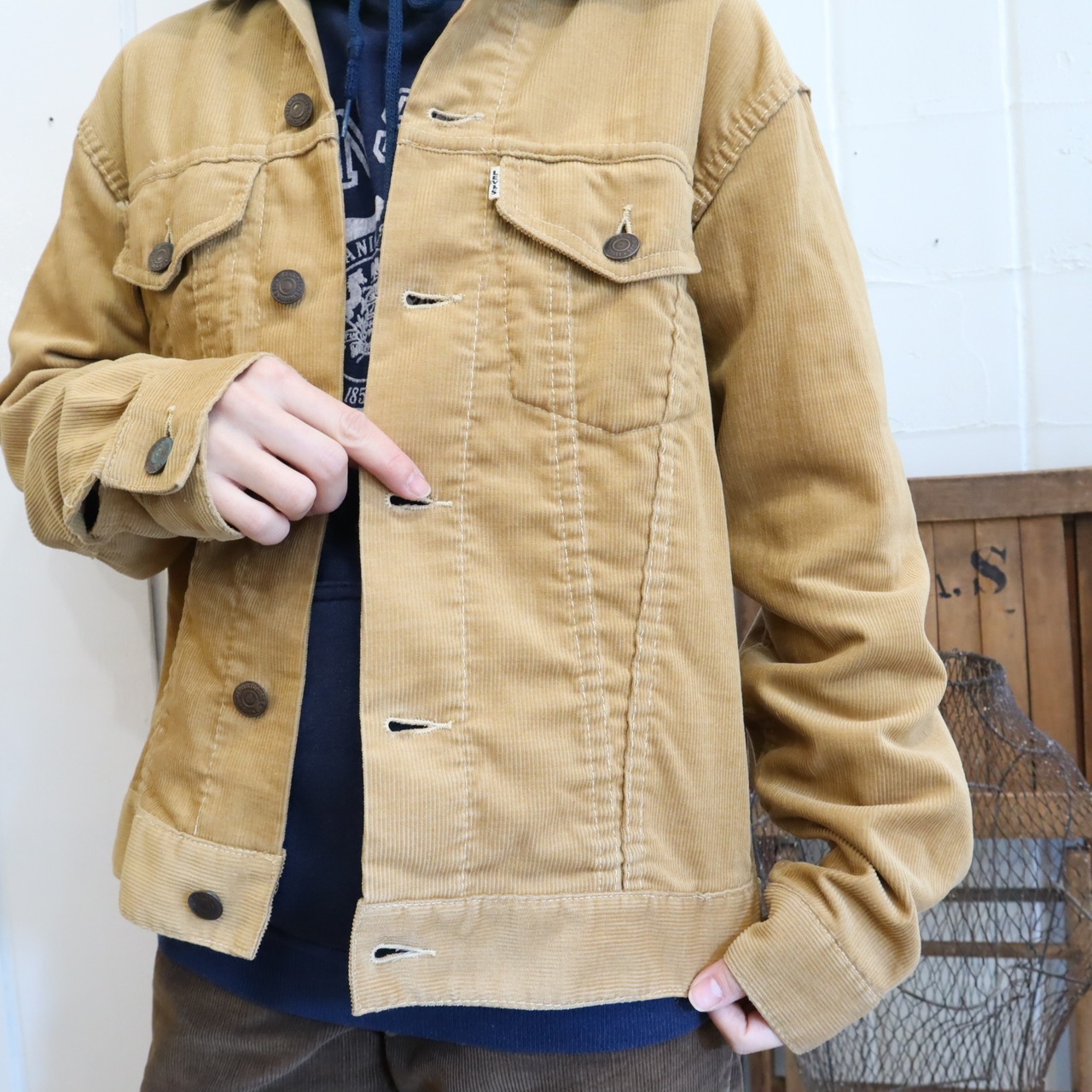 襟の形やV字に入った縫い目など、ディテールやシルエットの良いLevi’s bigEのジャケット。
