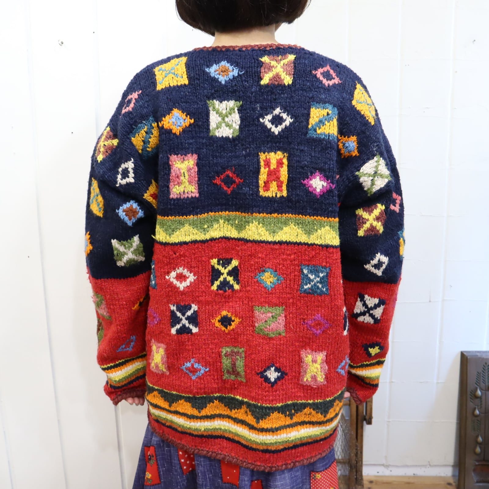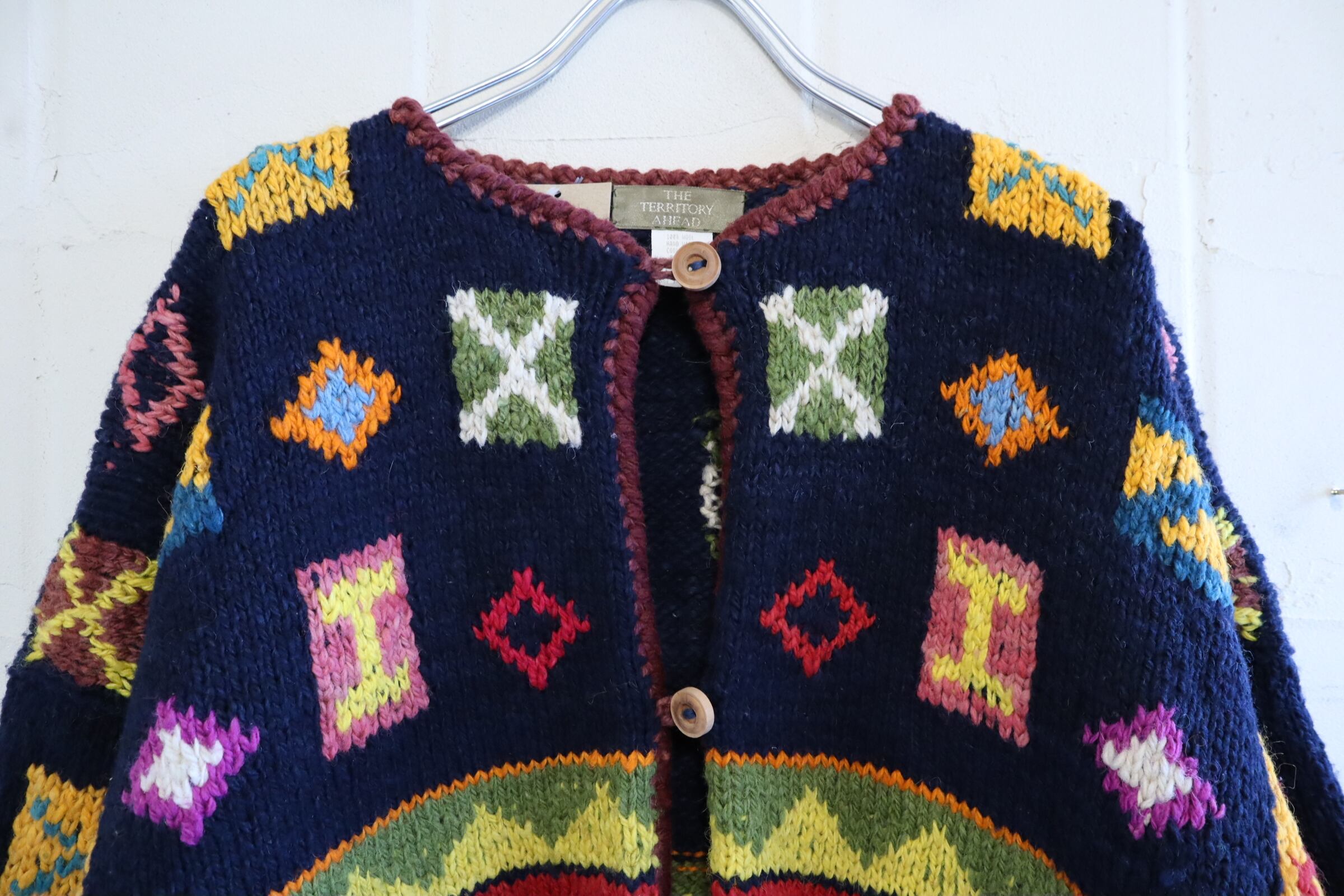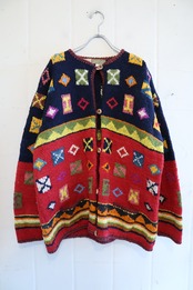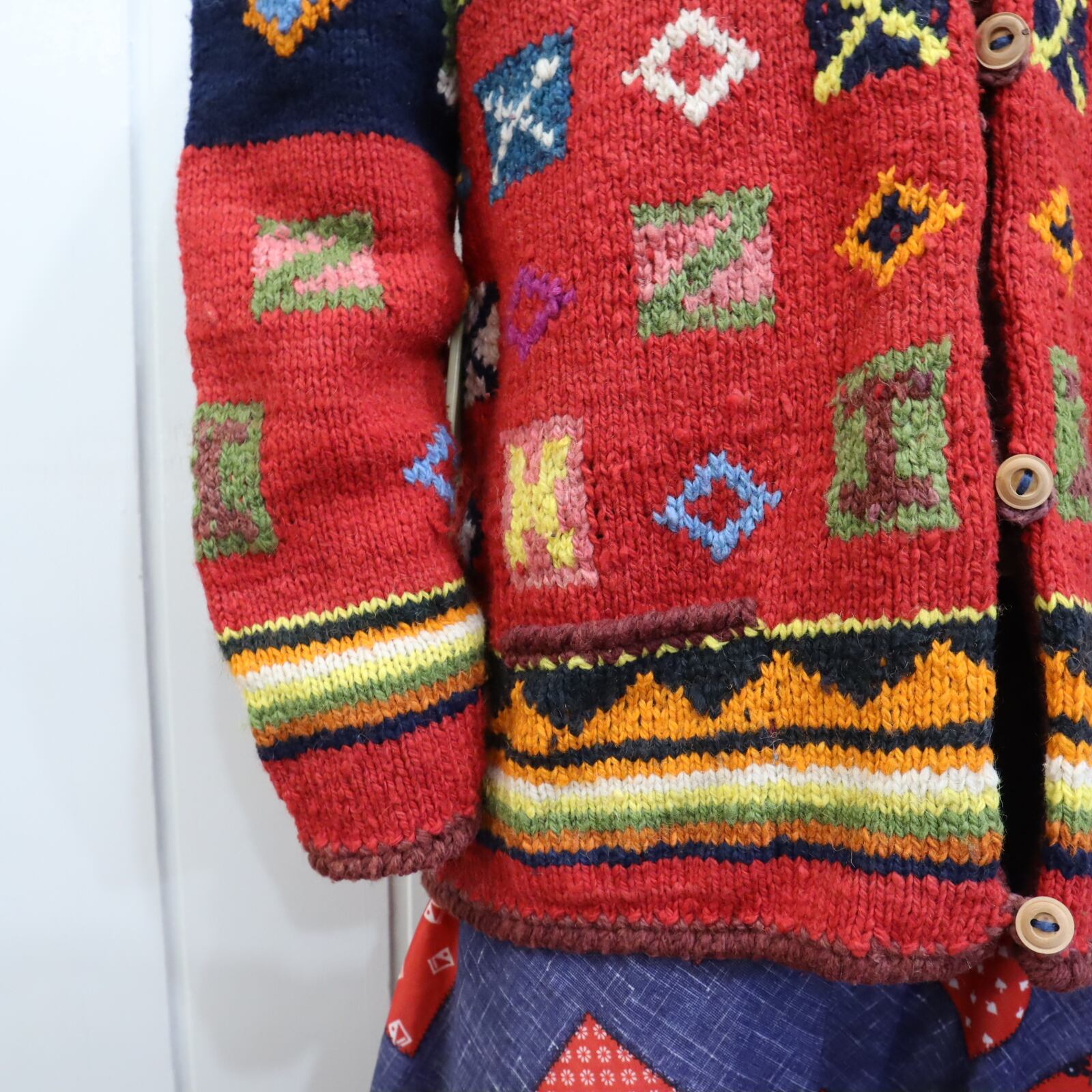 カラフルなカラーリングに散りばめられた柄が可愛いニットカーディガン♡