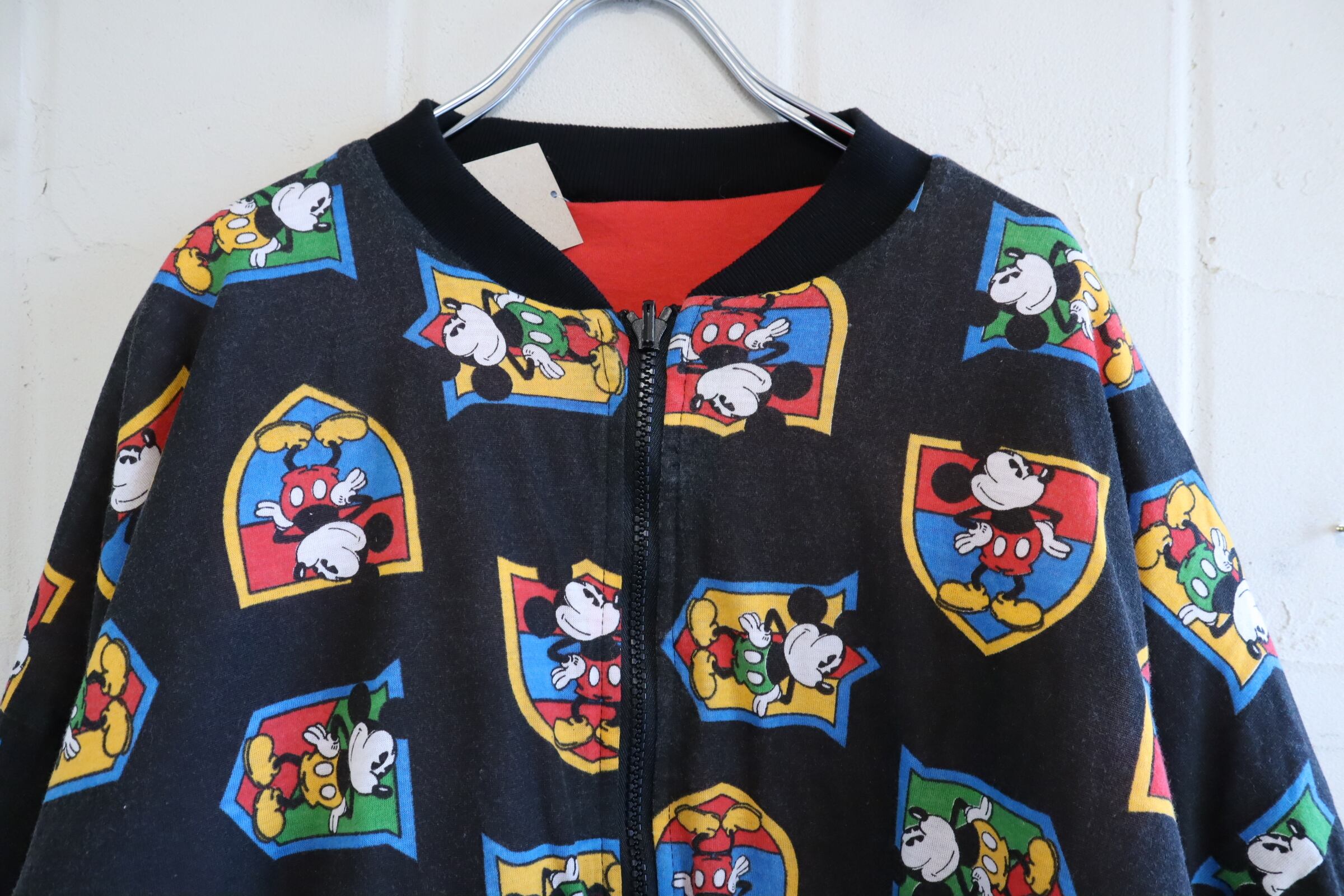 表はボーダーとシンプルなミッキー、裏は総柄の中綿ミッキースウェットジャケットです。