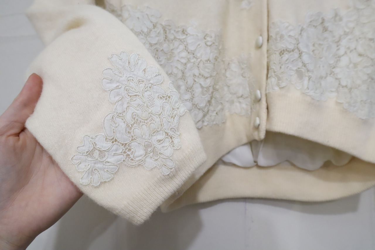 50s ivory×white flower lace cashmere knit cardigan [l-2299]