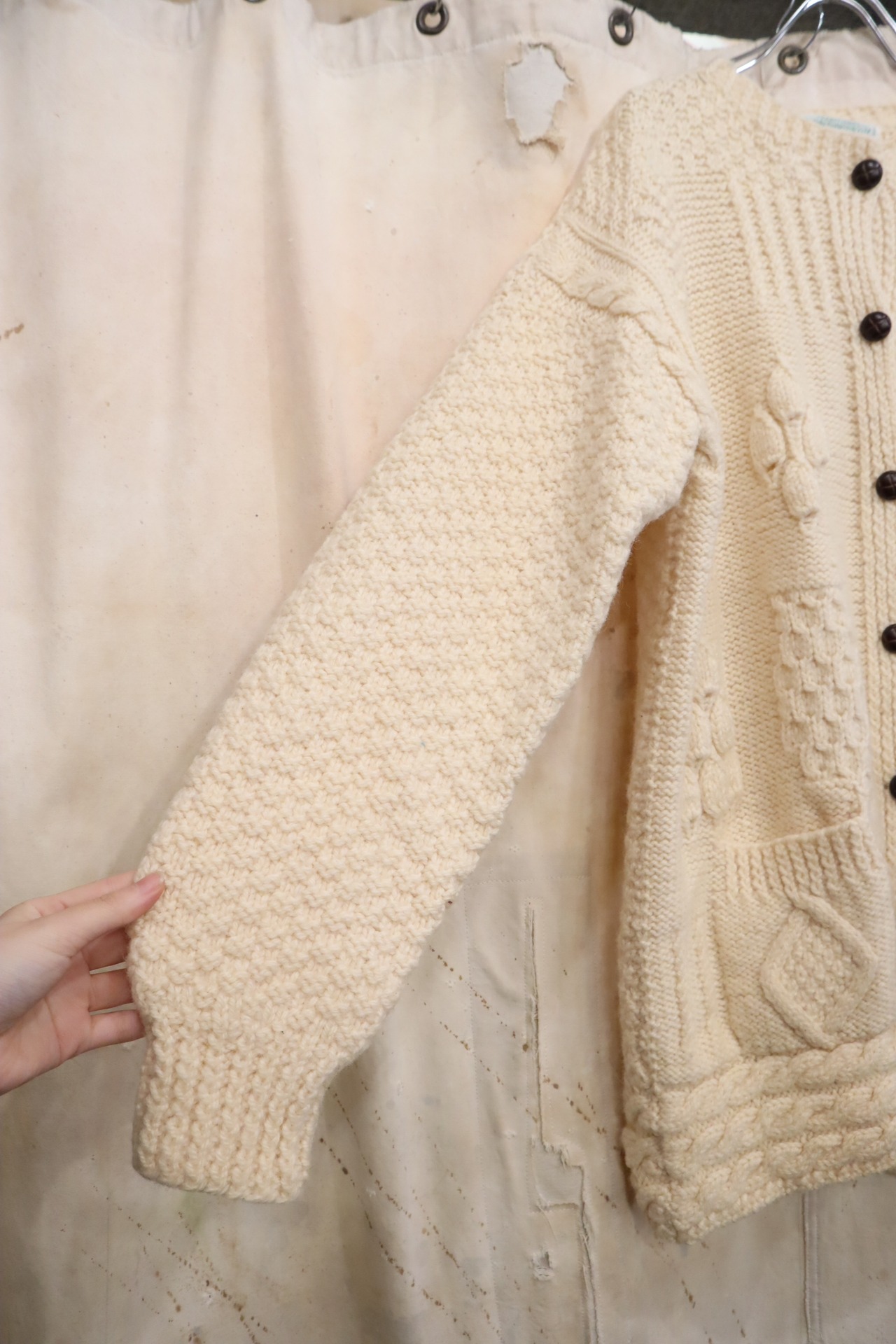 offwhite aran pattern knit cardigan [l-2305]