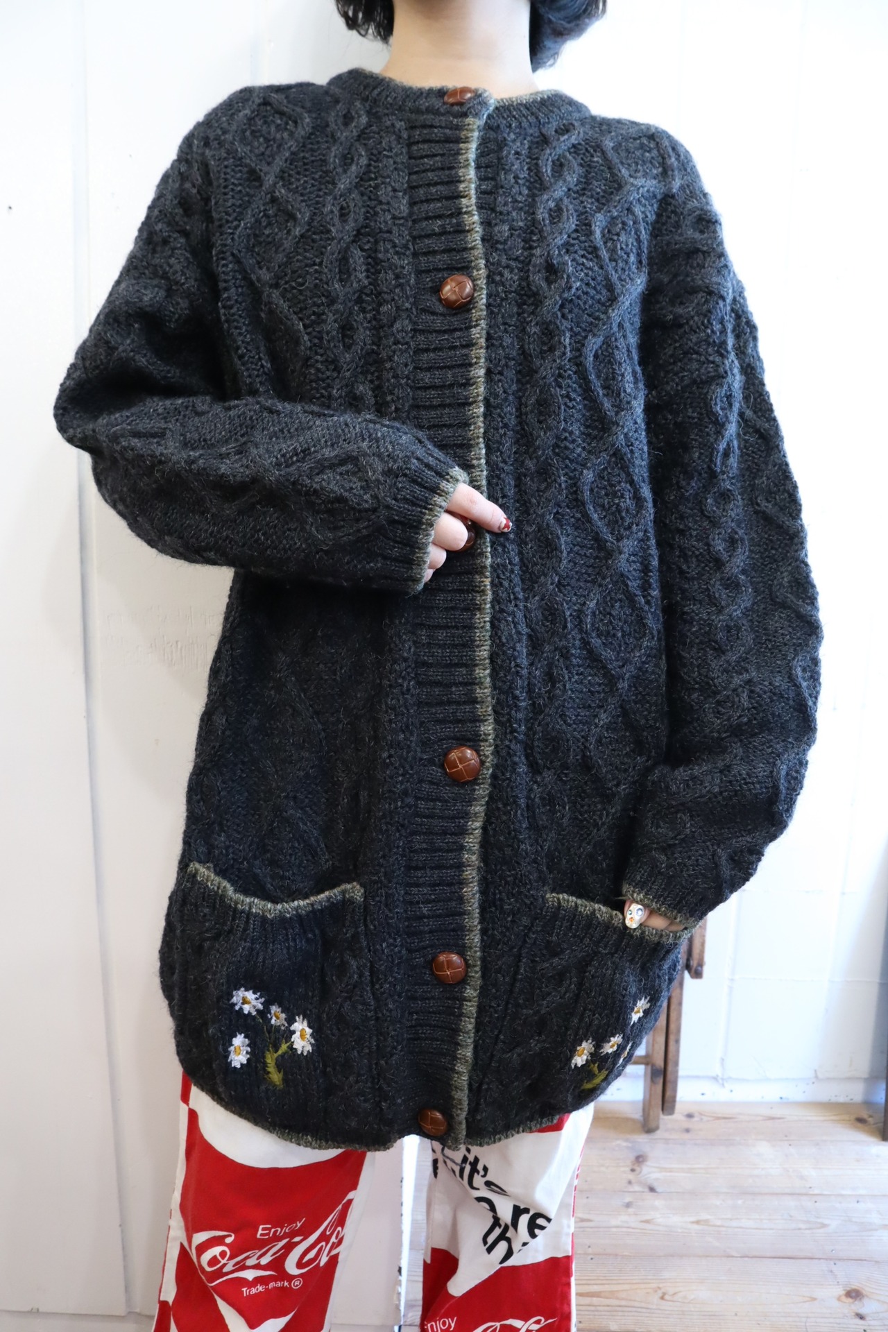 アランニットといえばオフホワイトやベージュといった印象が強いですが、黒に近いグレーも新鮮でオススメですよ♡