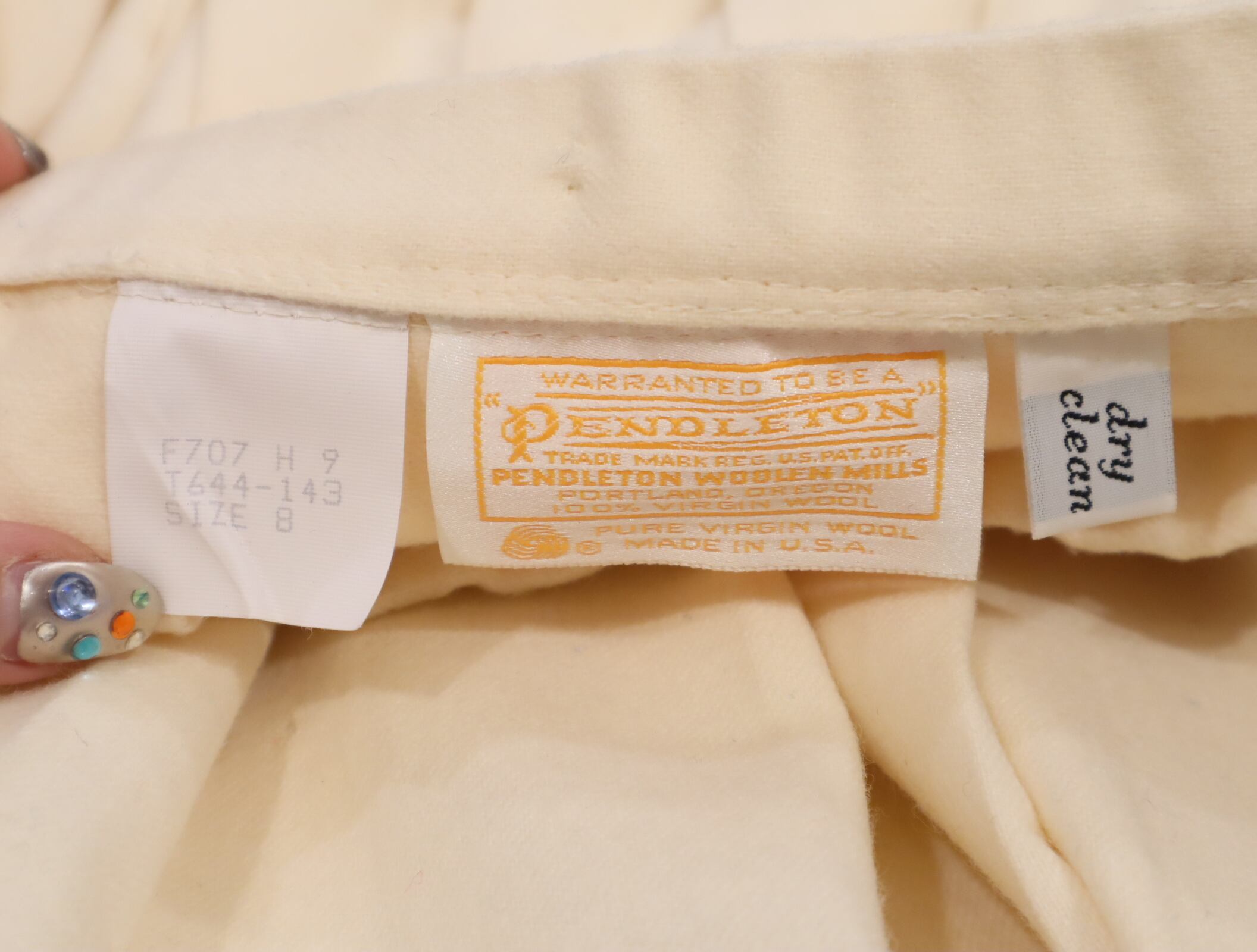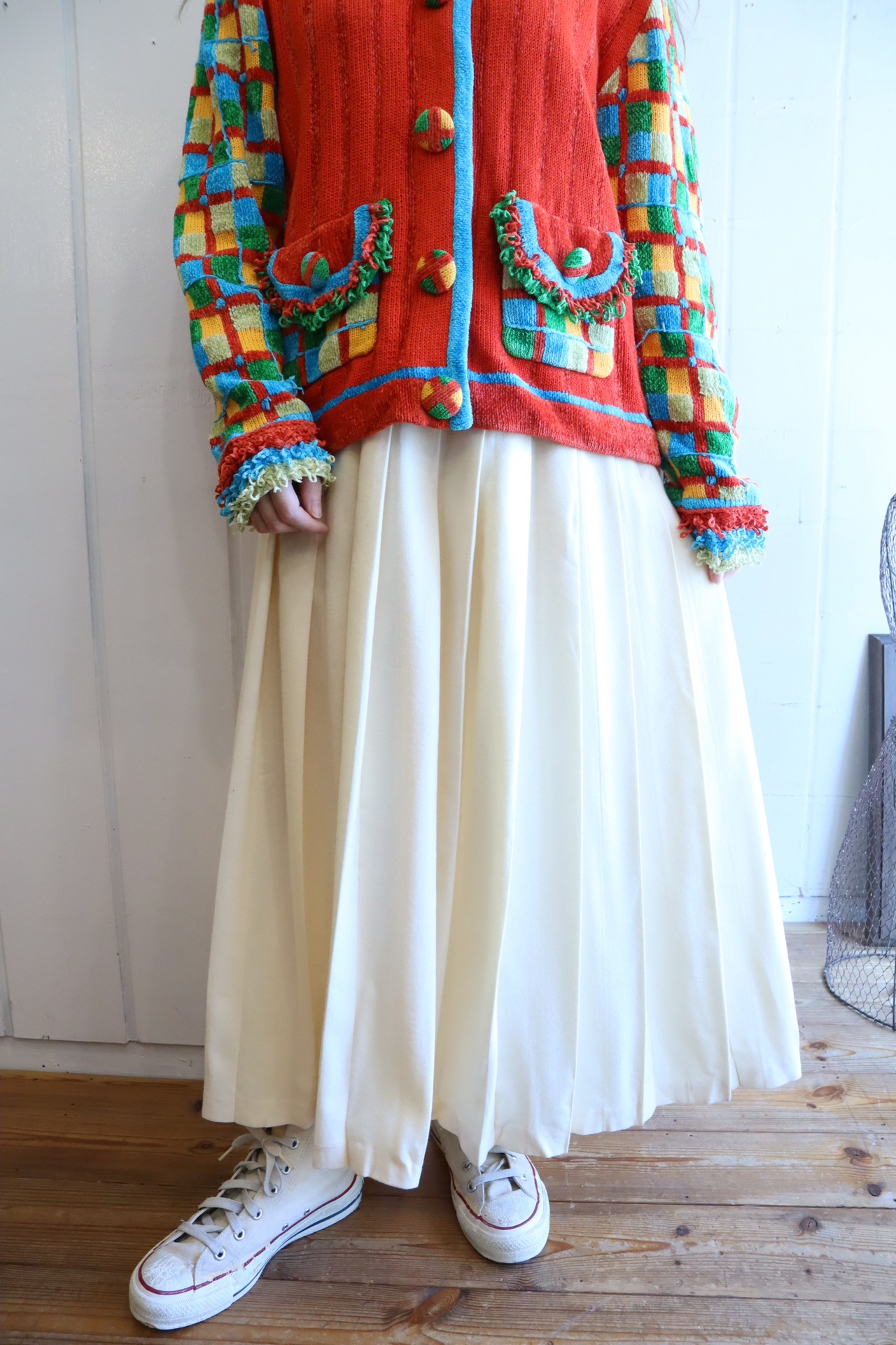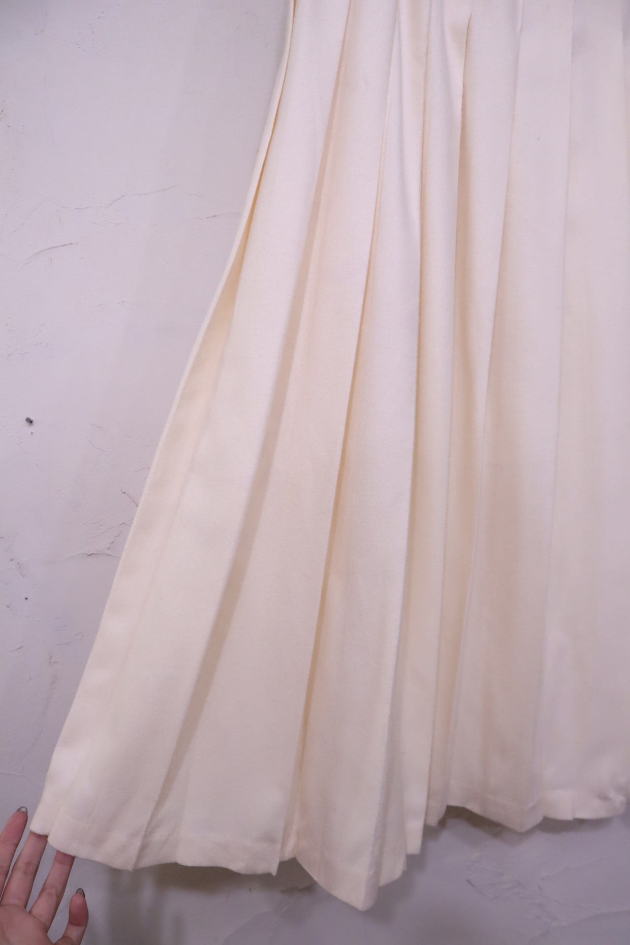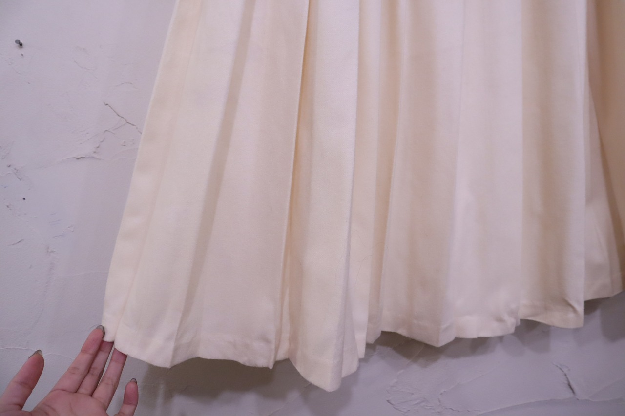 made in USA PENDLETON ivory plain pleats skirt [l-2319]