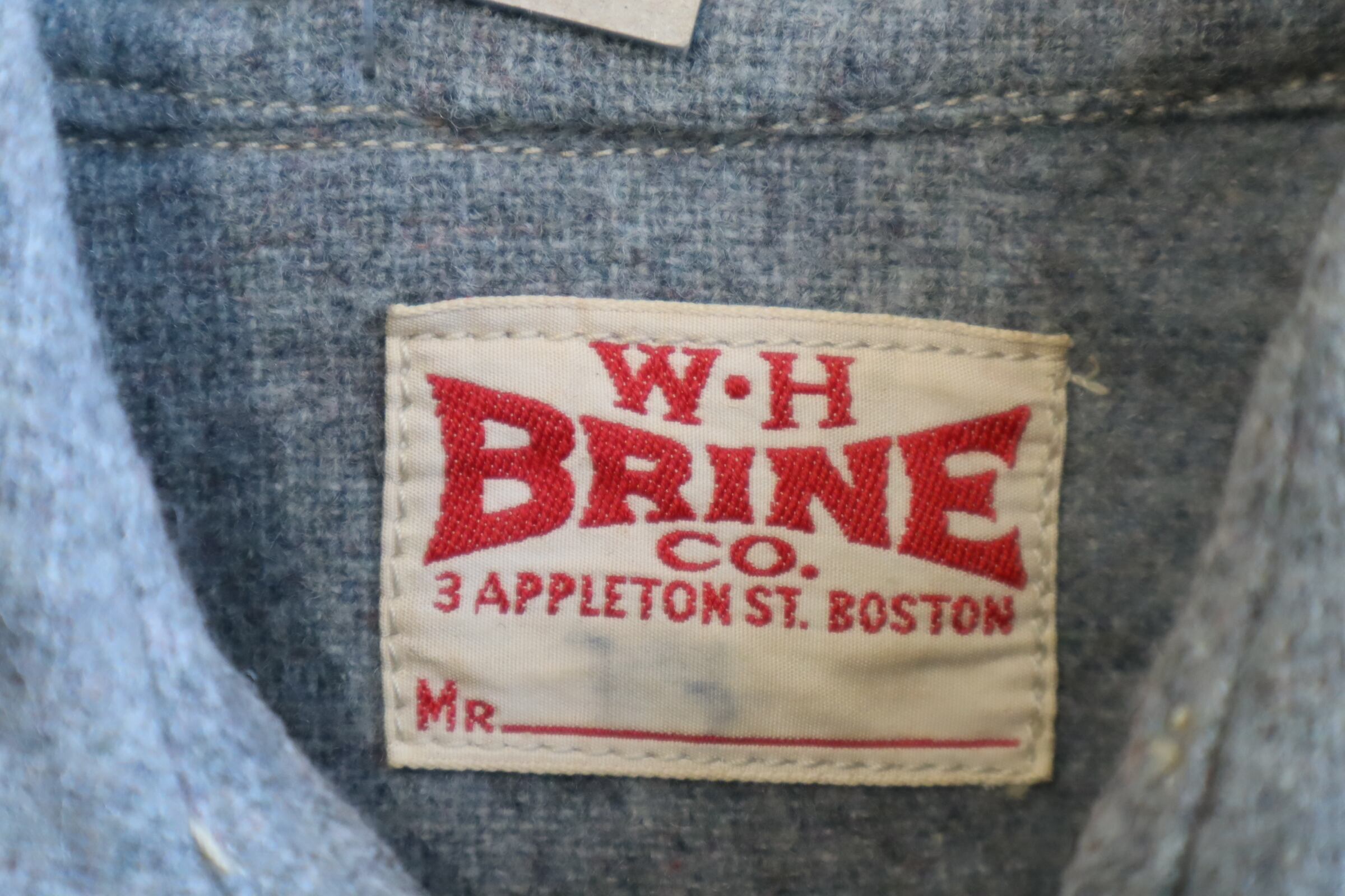 40s W.H BRINE gray×navy felt patch pullover shirt [l-2333]