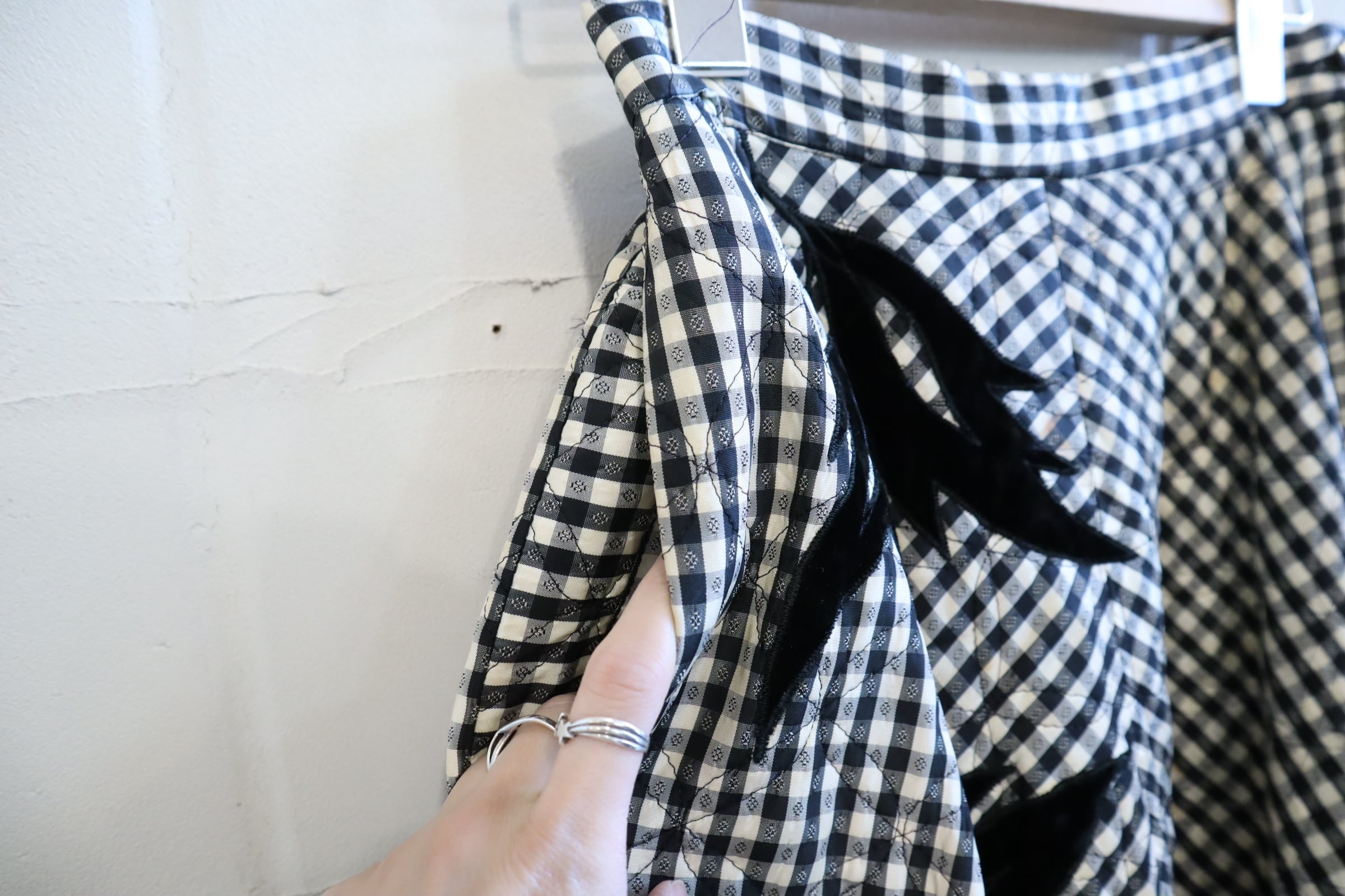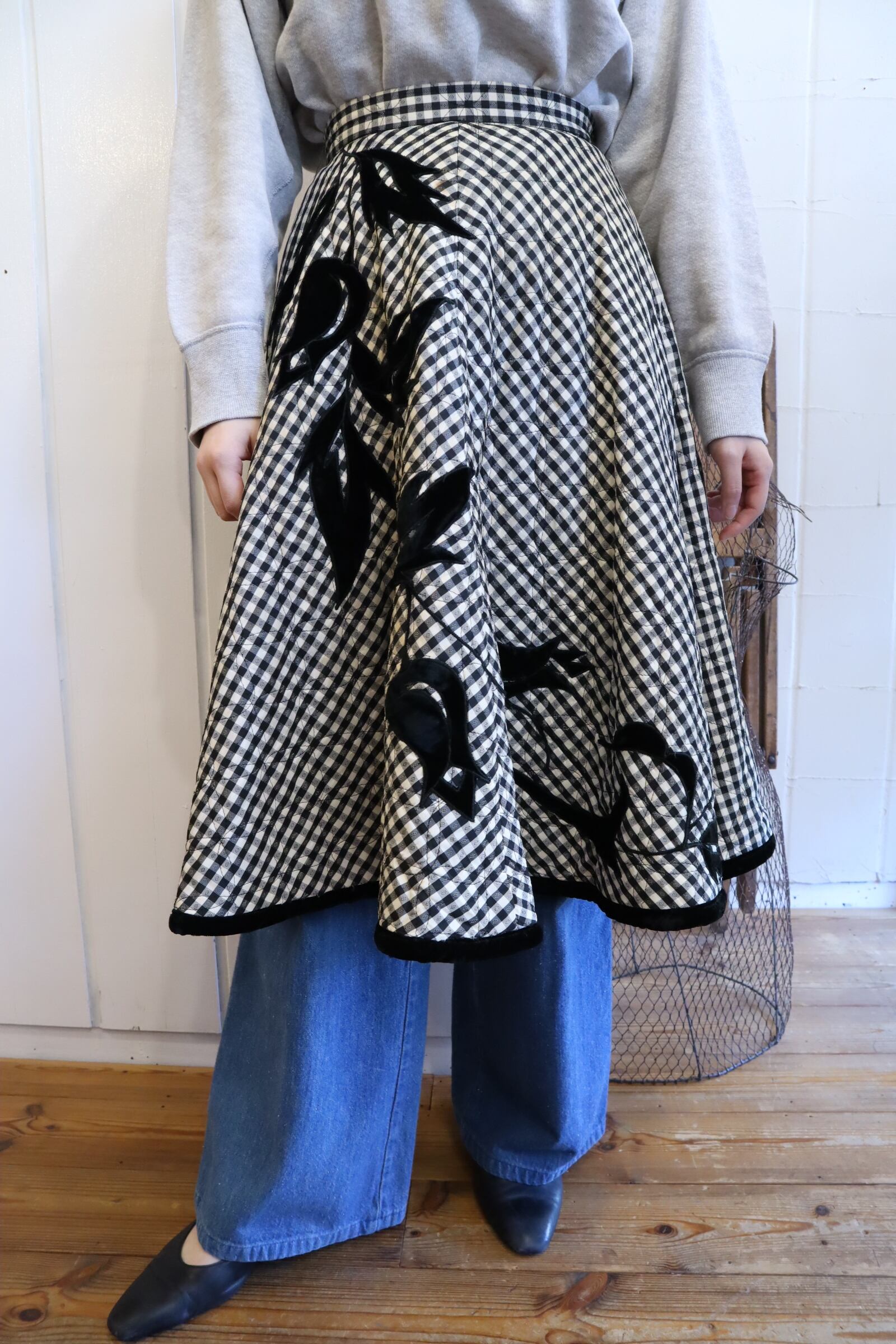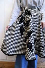 50s black×white ginghamcheck quilting circular skirt [l-2339]