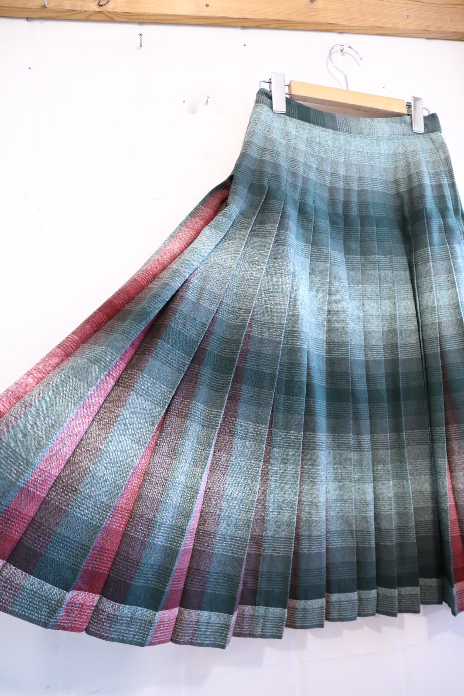 50s PENDLETON reversible pleats wool skirt [l-2340]
