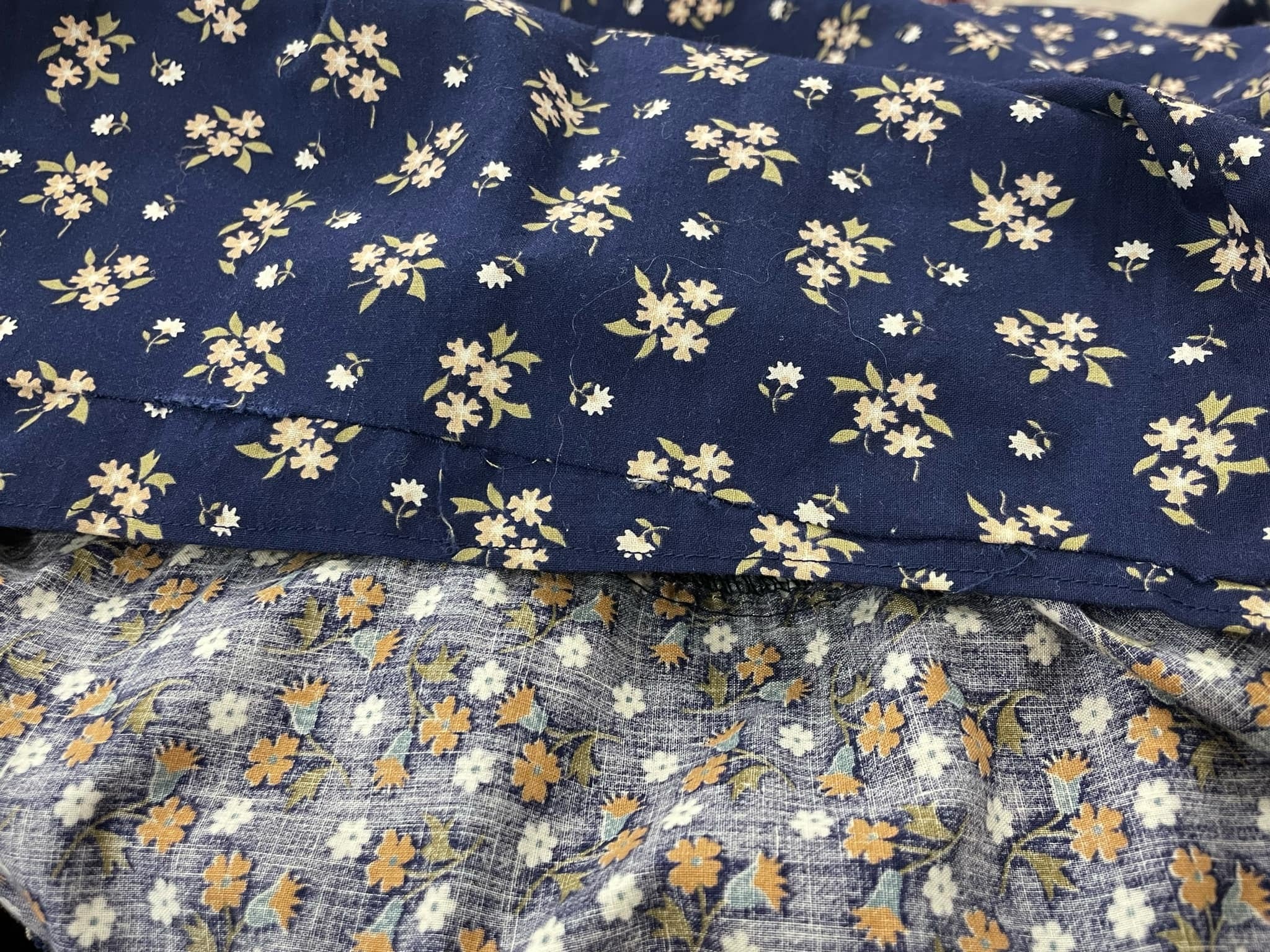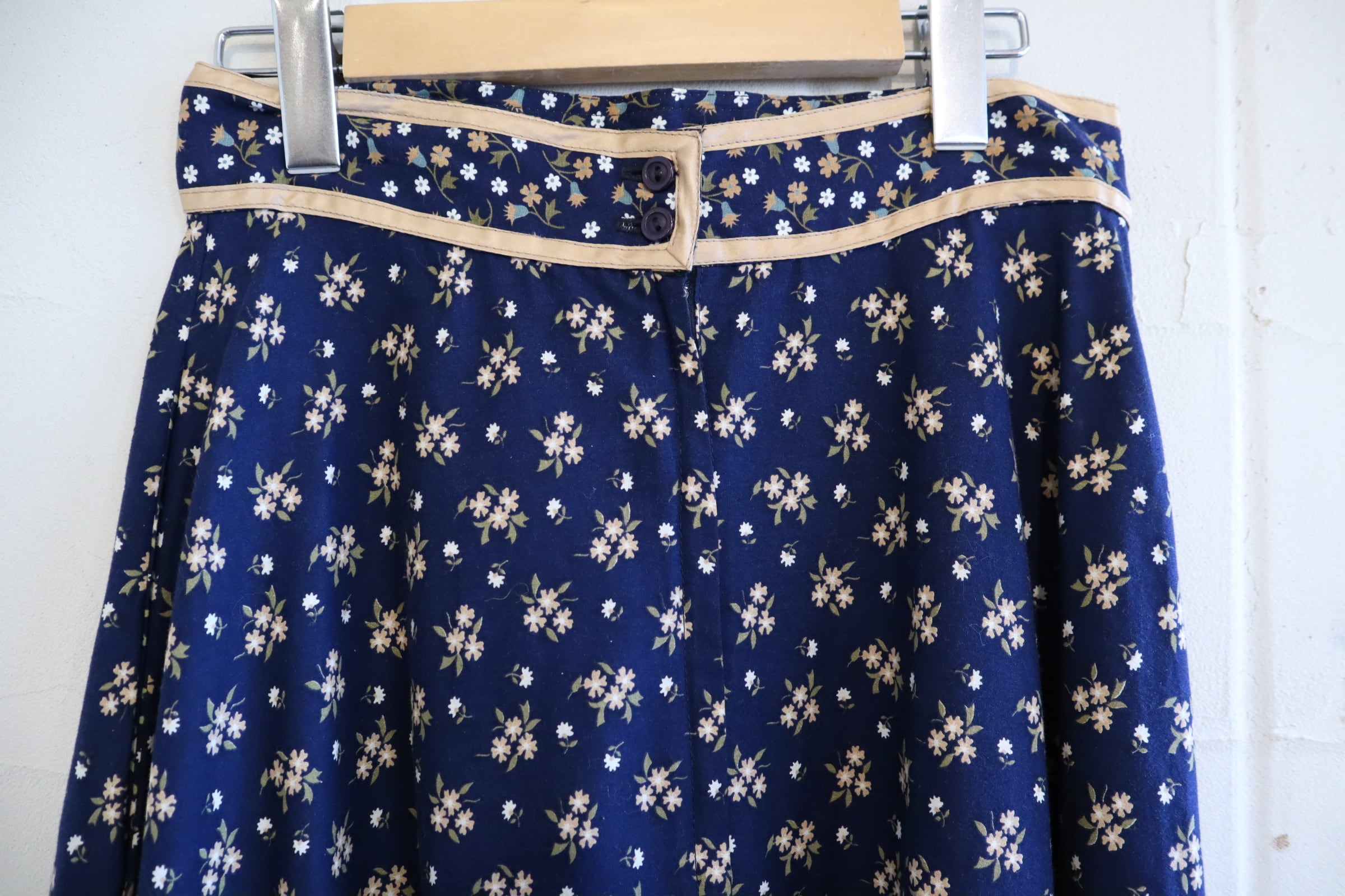 70s GUNNE SAX navy×beige flower print long skirt [l-2354]