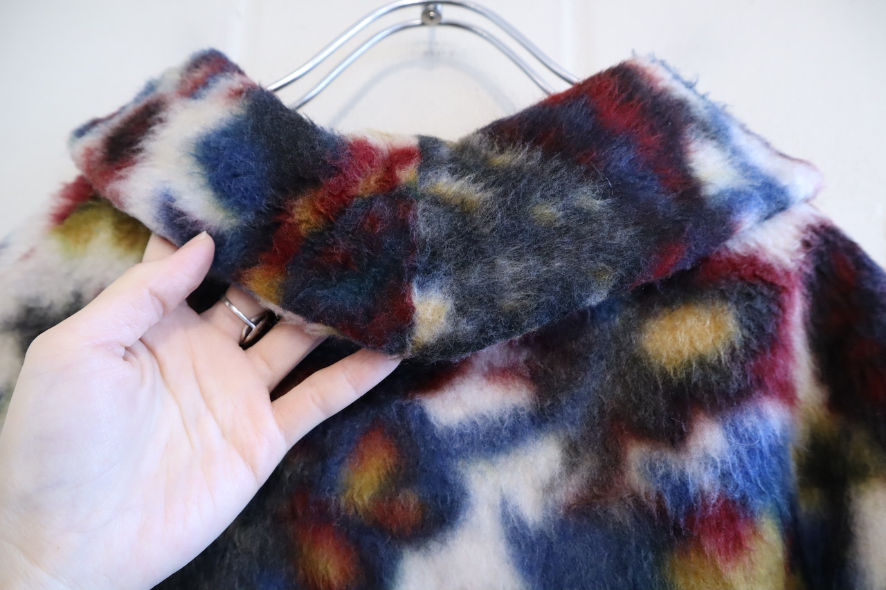 60s white×colorful flower print fleece jacket [l-2358]