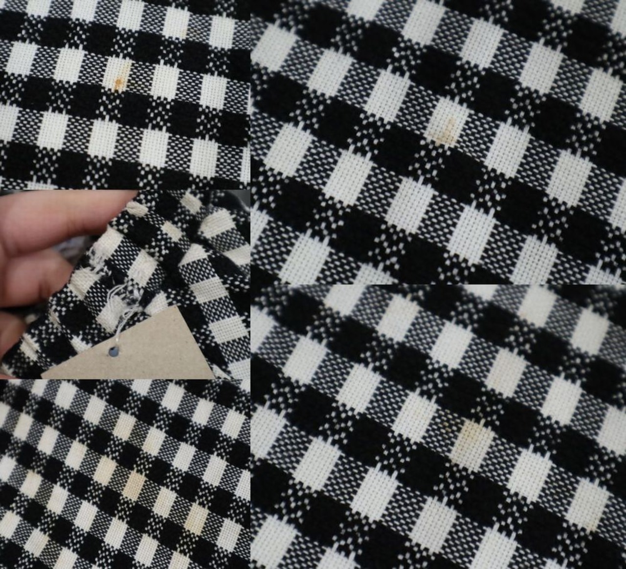 いくつかシミ汚れ、一部小さな破れがございますが、着用に問題ございません。