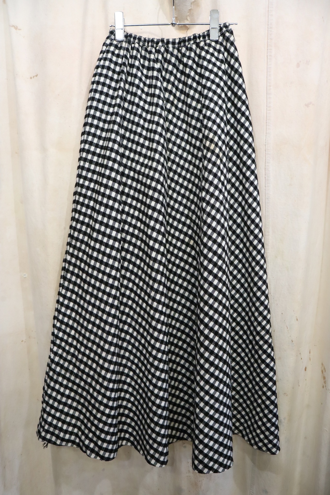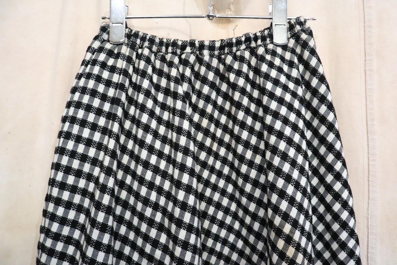 70-80s black×white plaid pattern skirt [l-2378]