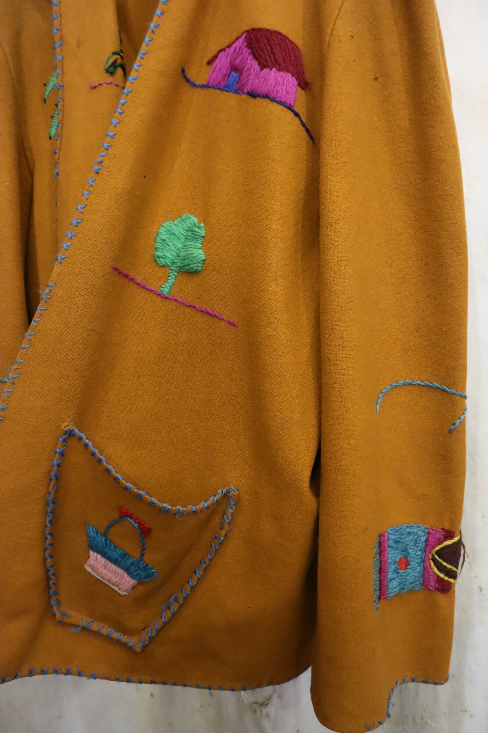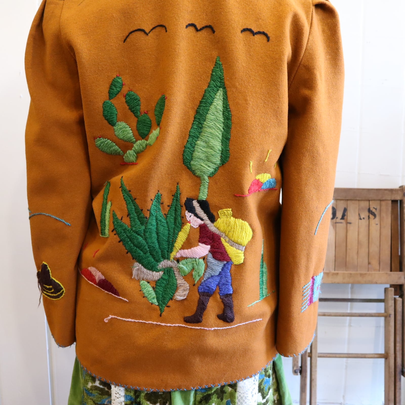 50-60s camel×colorful embroidery Mexican jacket [l-2386]