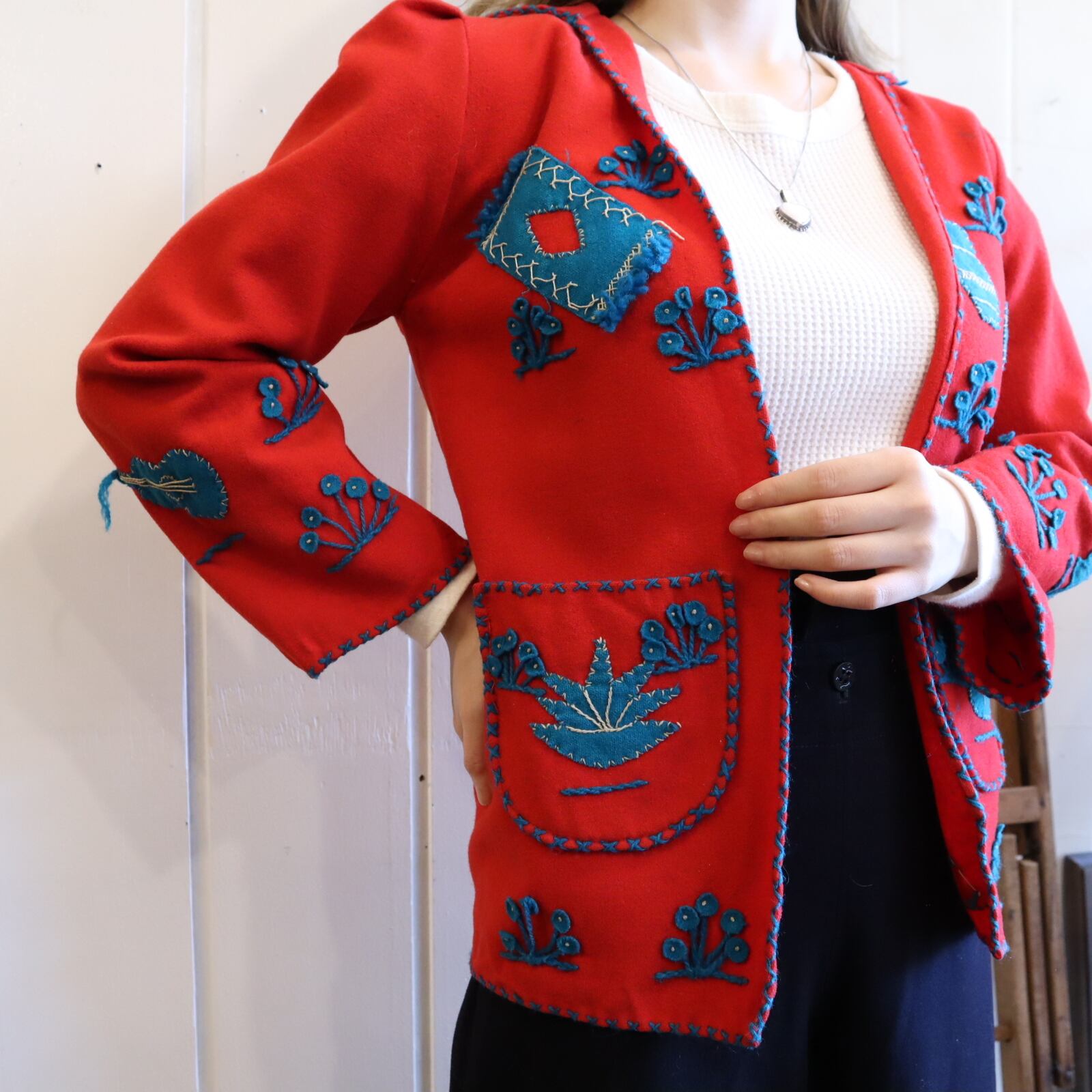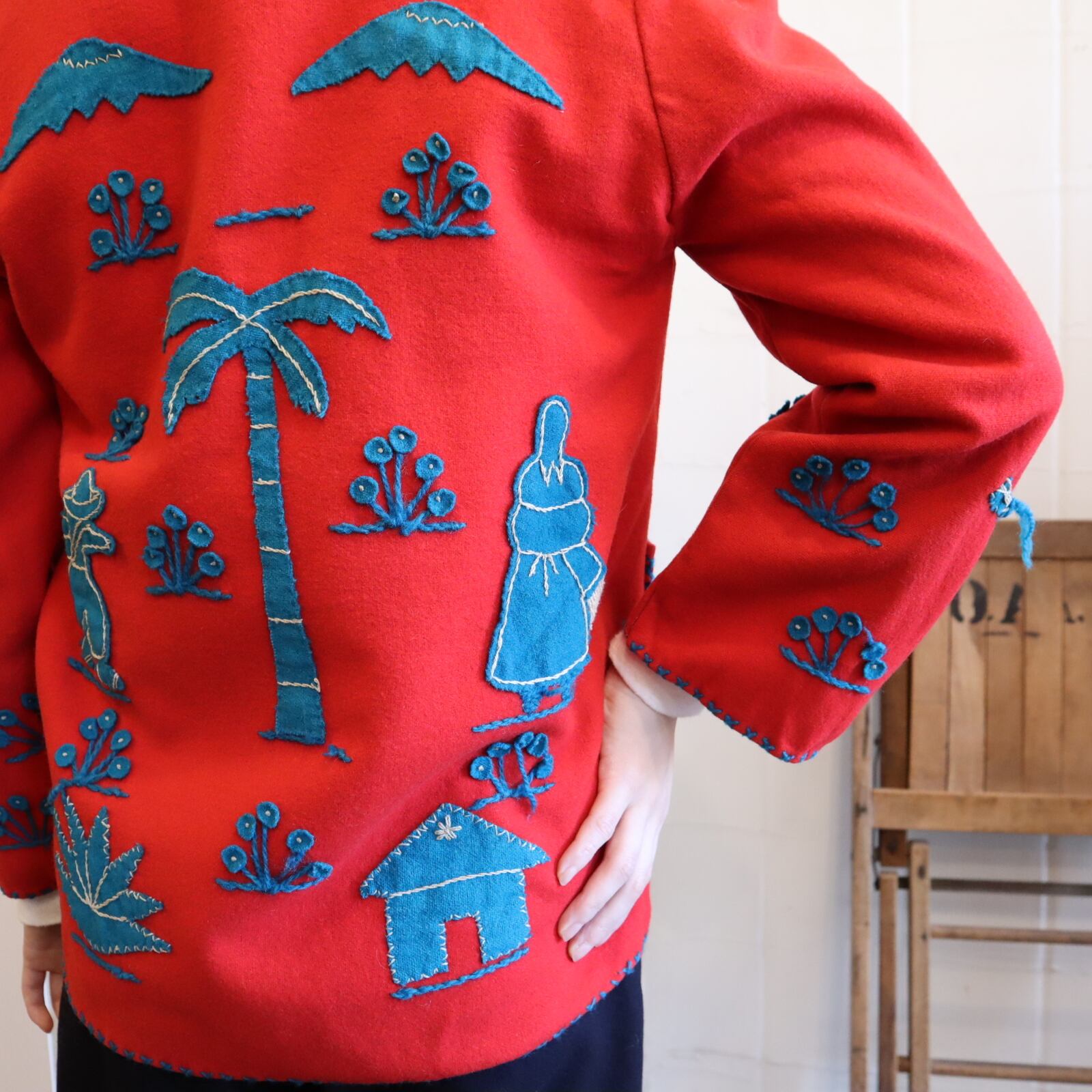 50-60s red×blue embroidery Mexican jacket [l-2387]