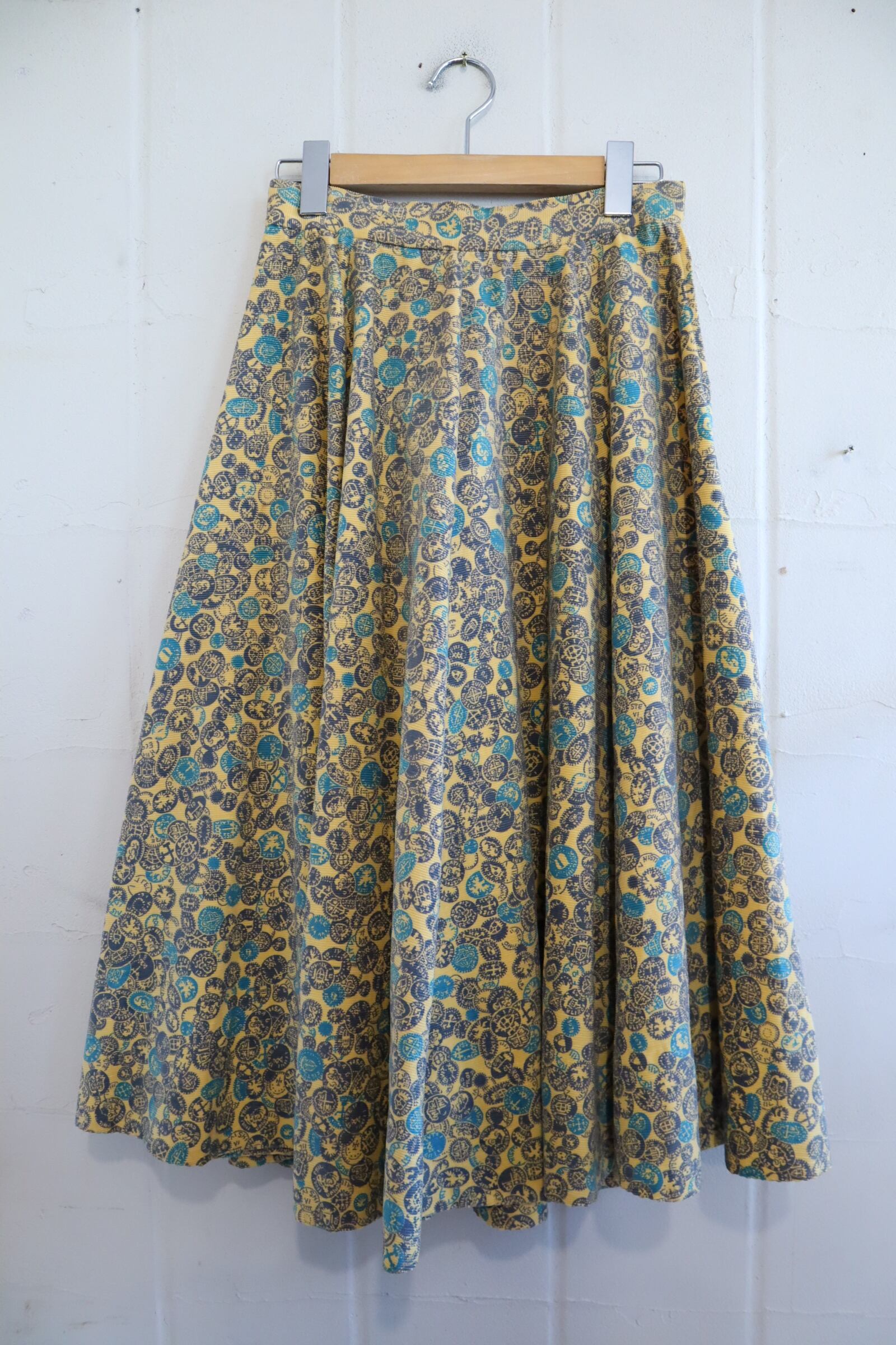 50-60s yellow×turquoise coin corduroy circular skirt [l-2392]