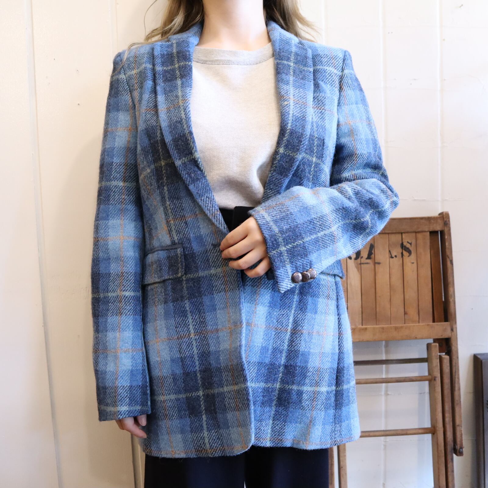HarrisTweed lightblue plaid wool jacket [l-2403]