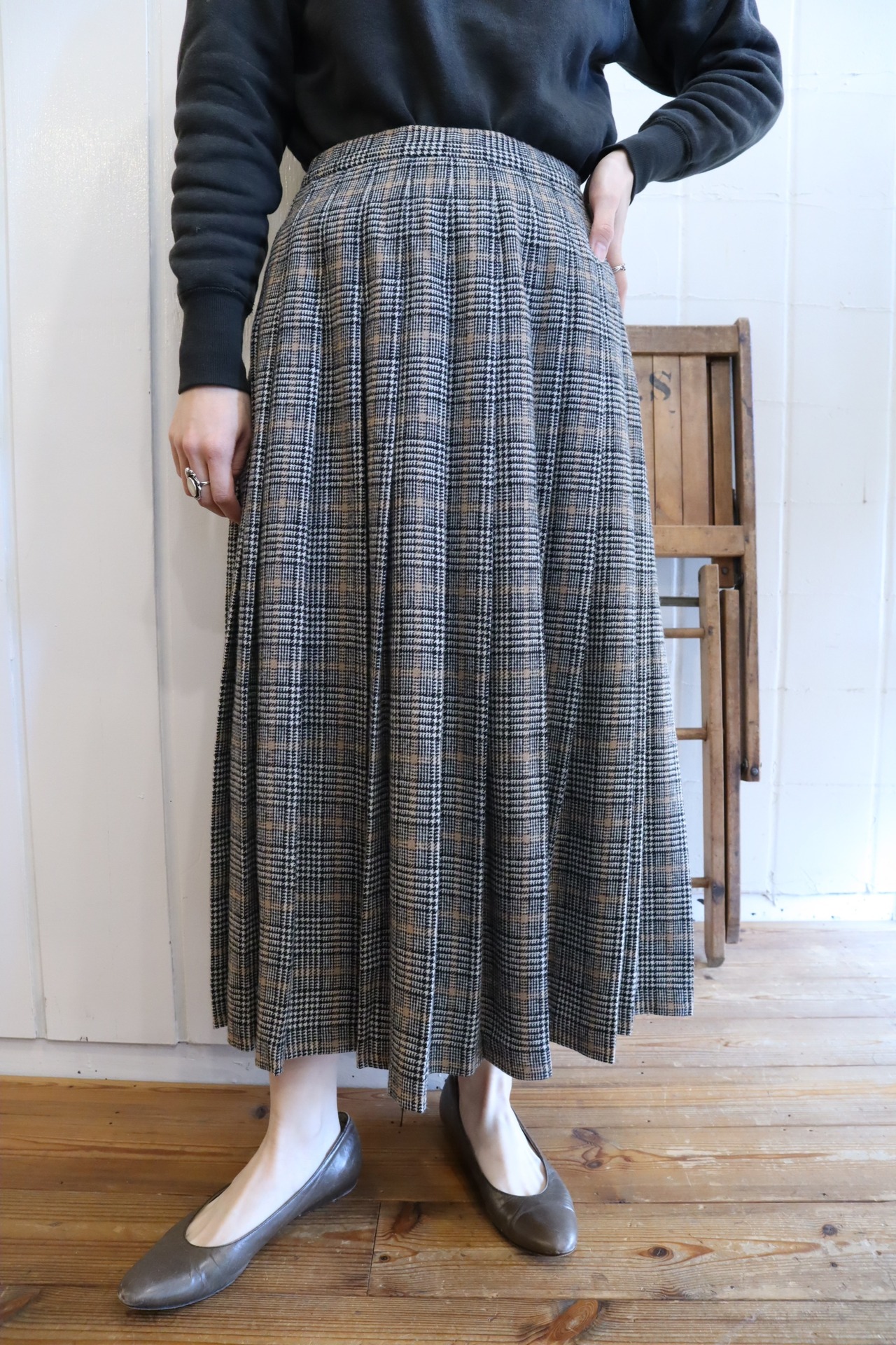 70s PENDLETON black×beige houndstooth pleats wool skirt [l-2412]