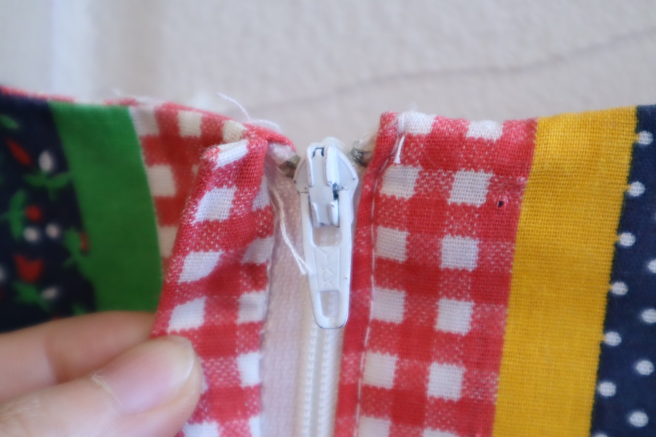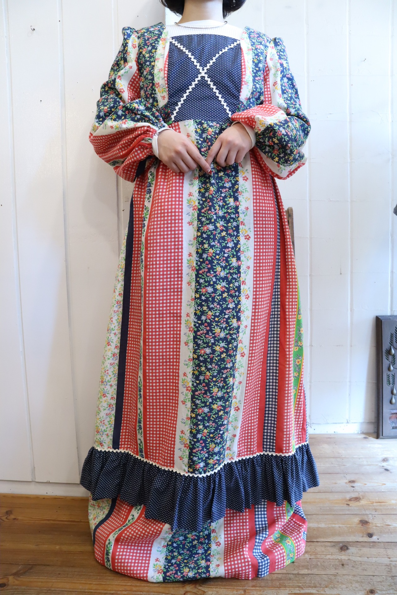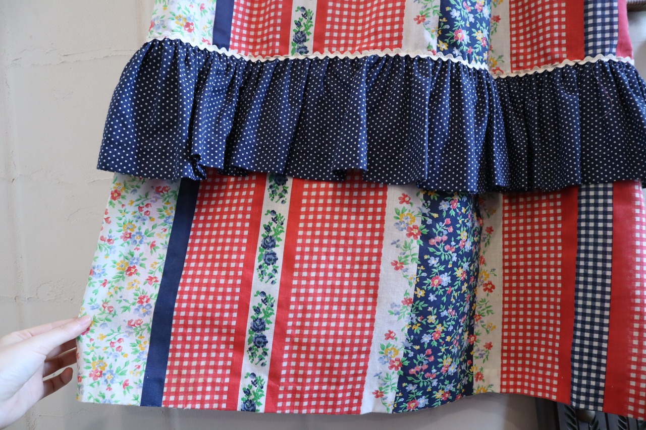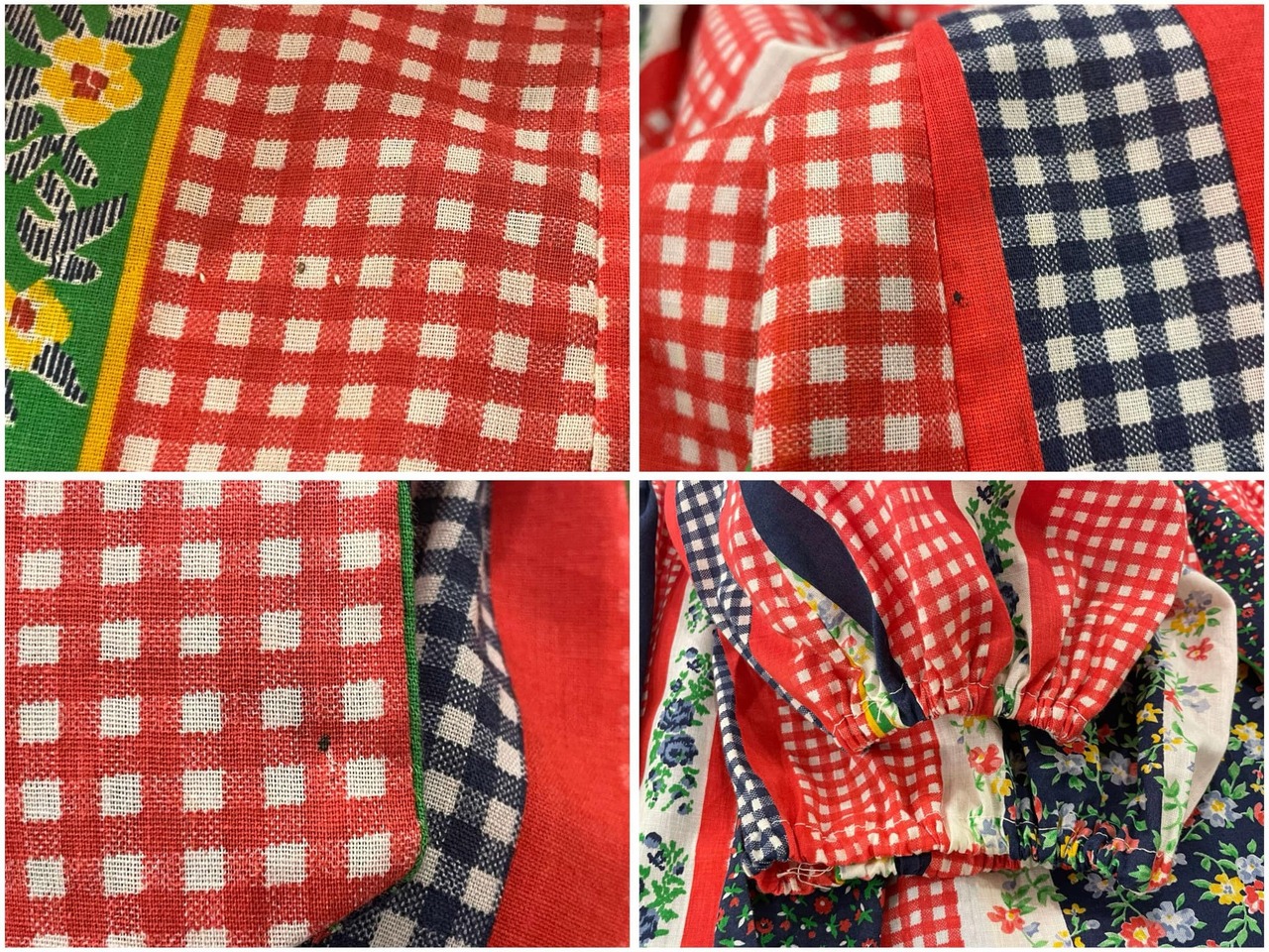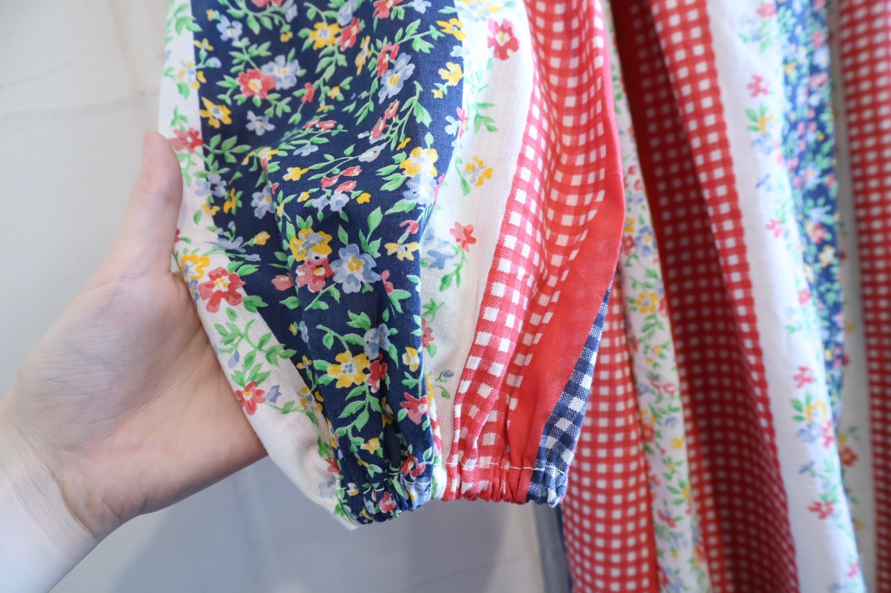 ストライプ状に切り替えられた花柄とギンガムチェックやポイントで入っているドット柄の組み合わせも素敵ですね。