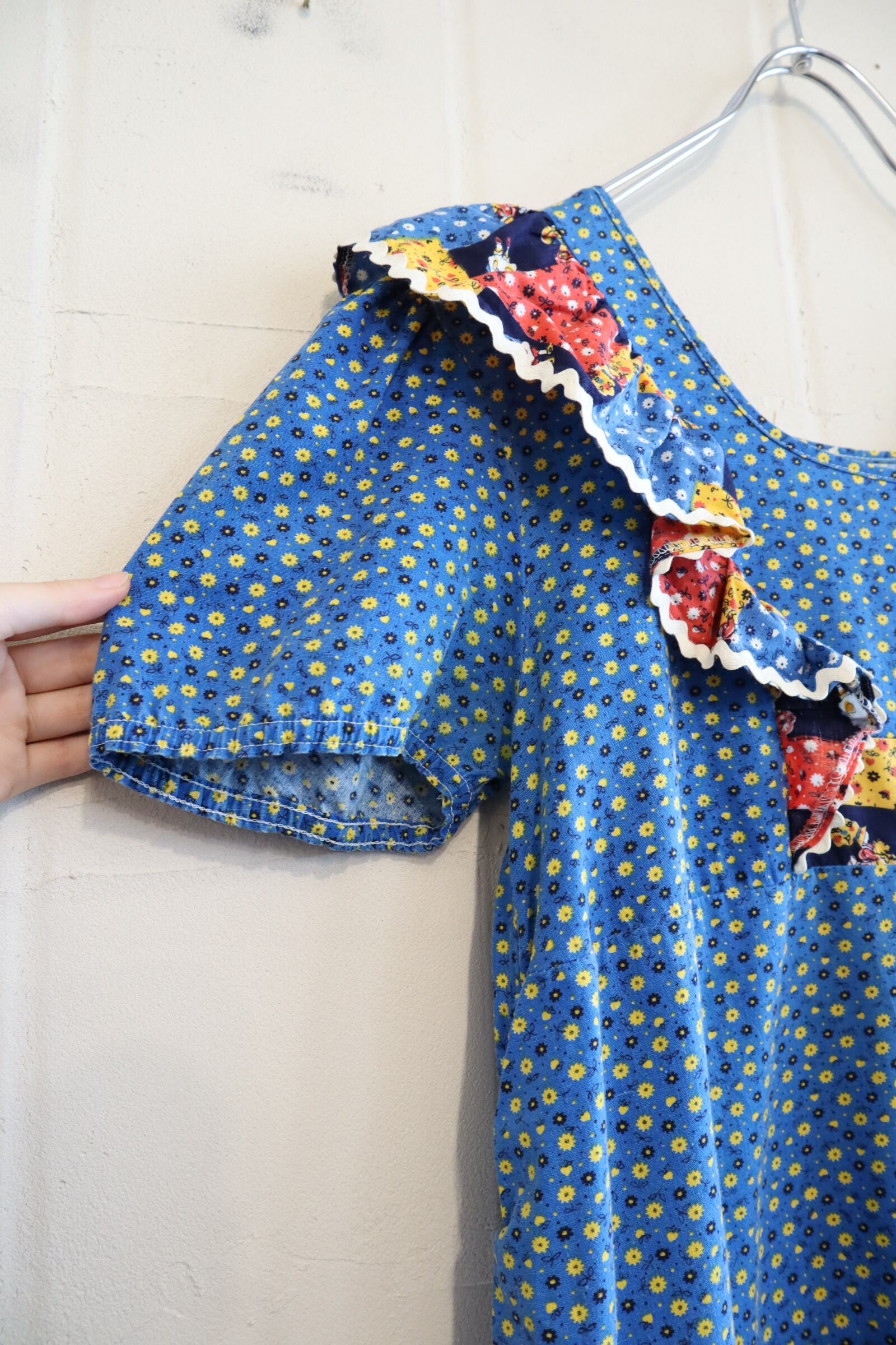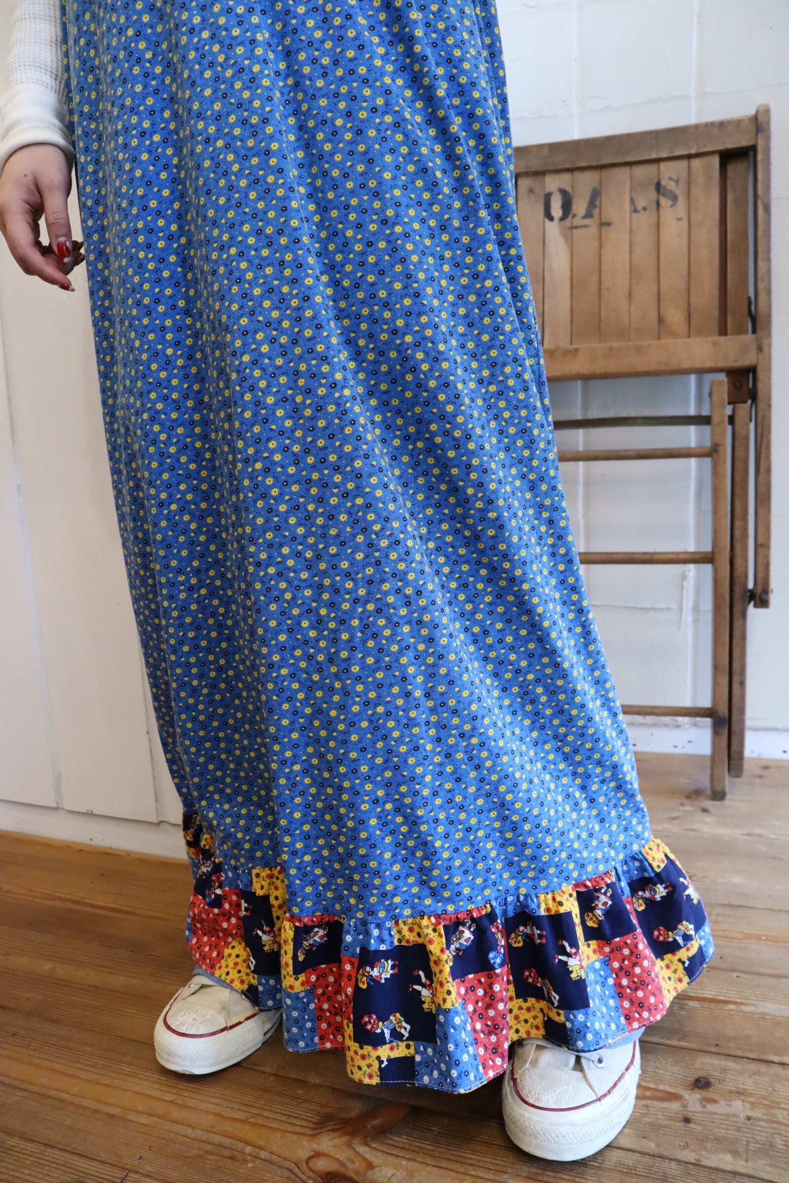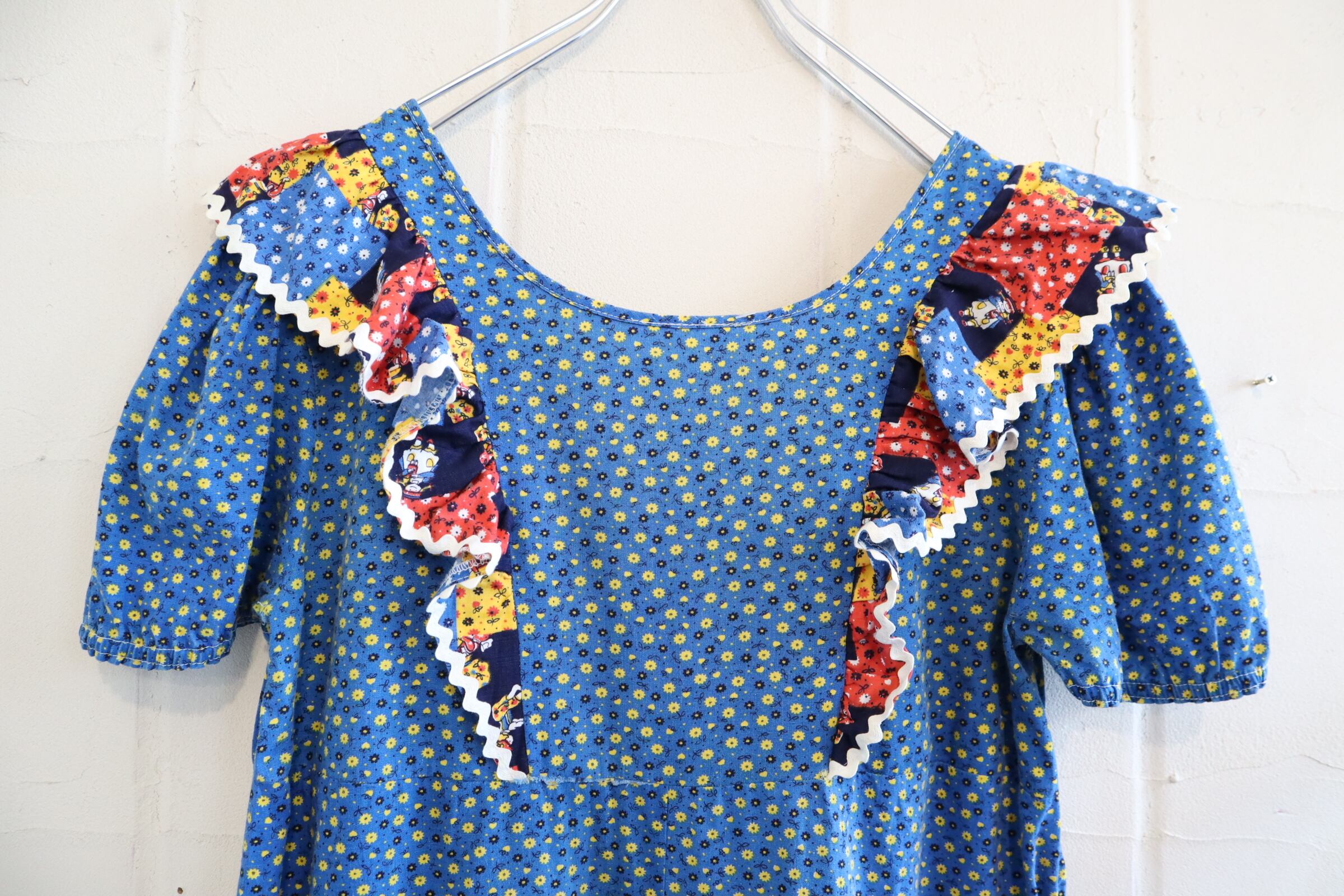 フリルと裾部分がパッチワーク柄で可愛い70sドレスです。