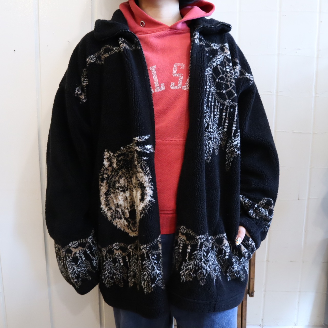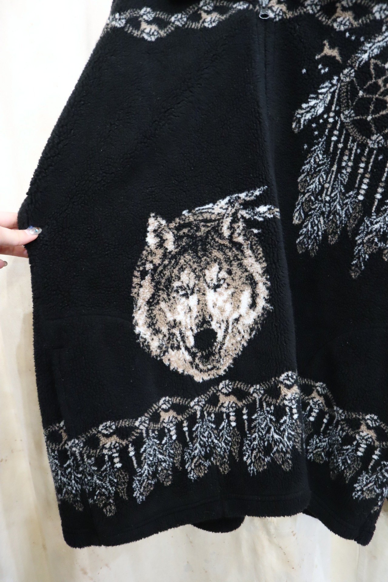 バックデザインの狼がインパクト大のフリースジャケットです。