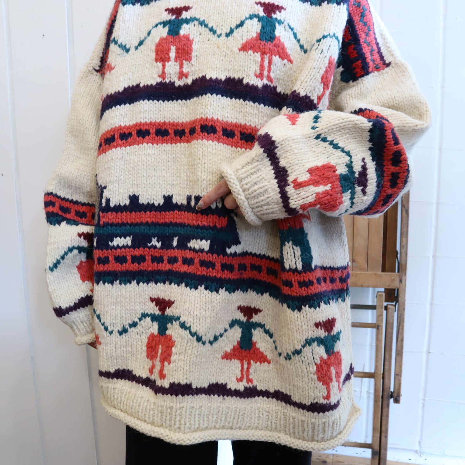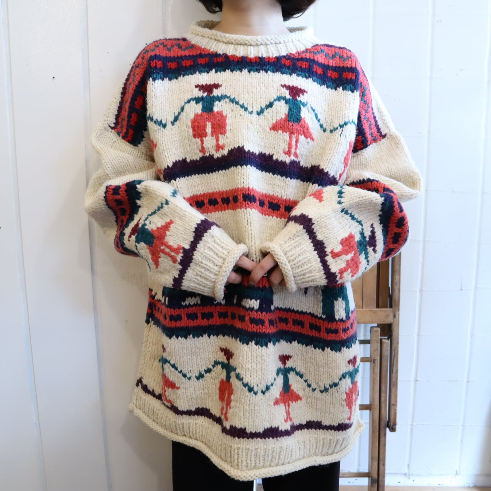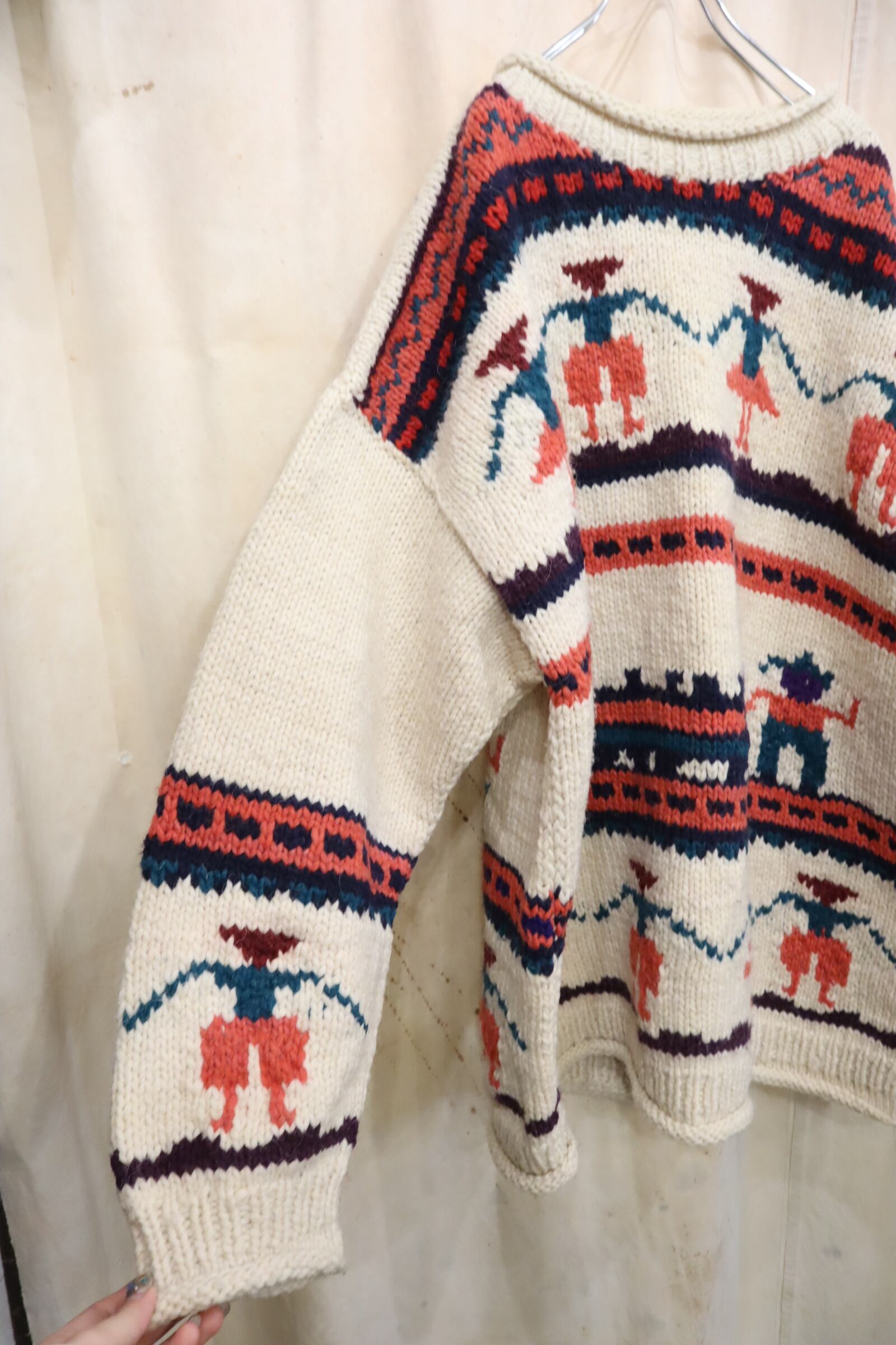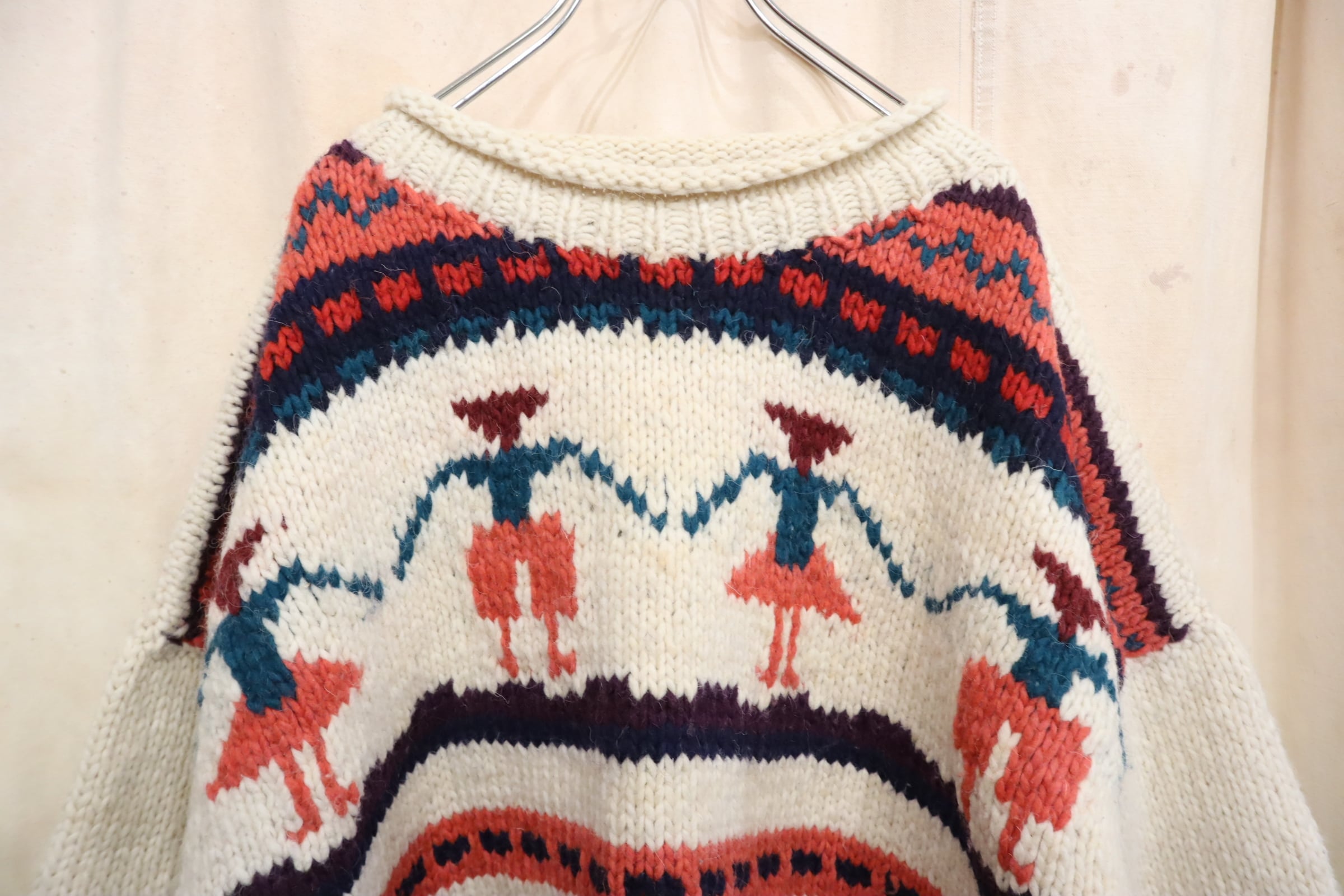 made in Ecuador offwhite×pink×green knit pullover [l-2431]