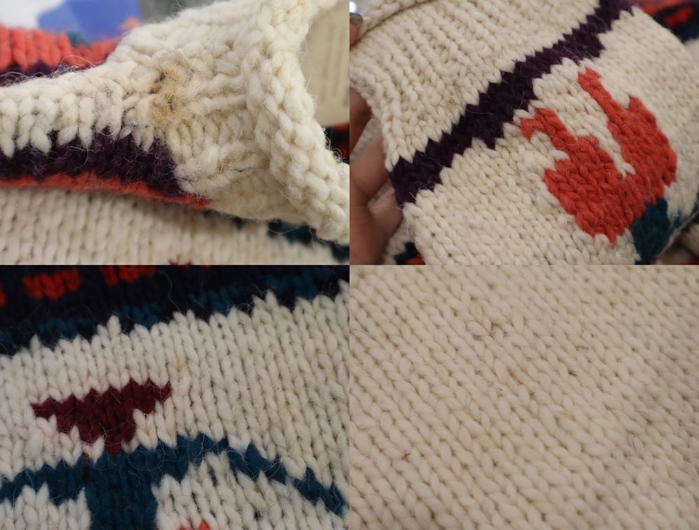 いくつかシミ汚れや全体的に生地の毛羽立ちがございますが、古着の味として着て頂けるかと思われます。