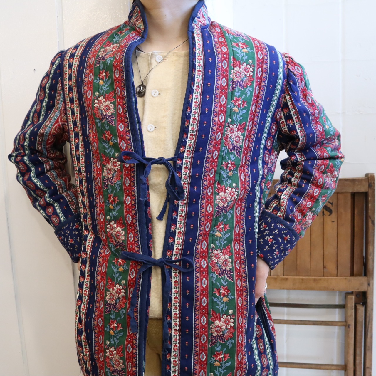navy×red×colorful flower pattern quilting jacket [l-2451]