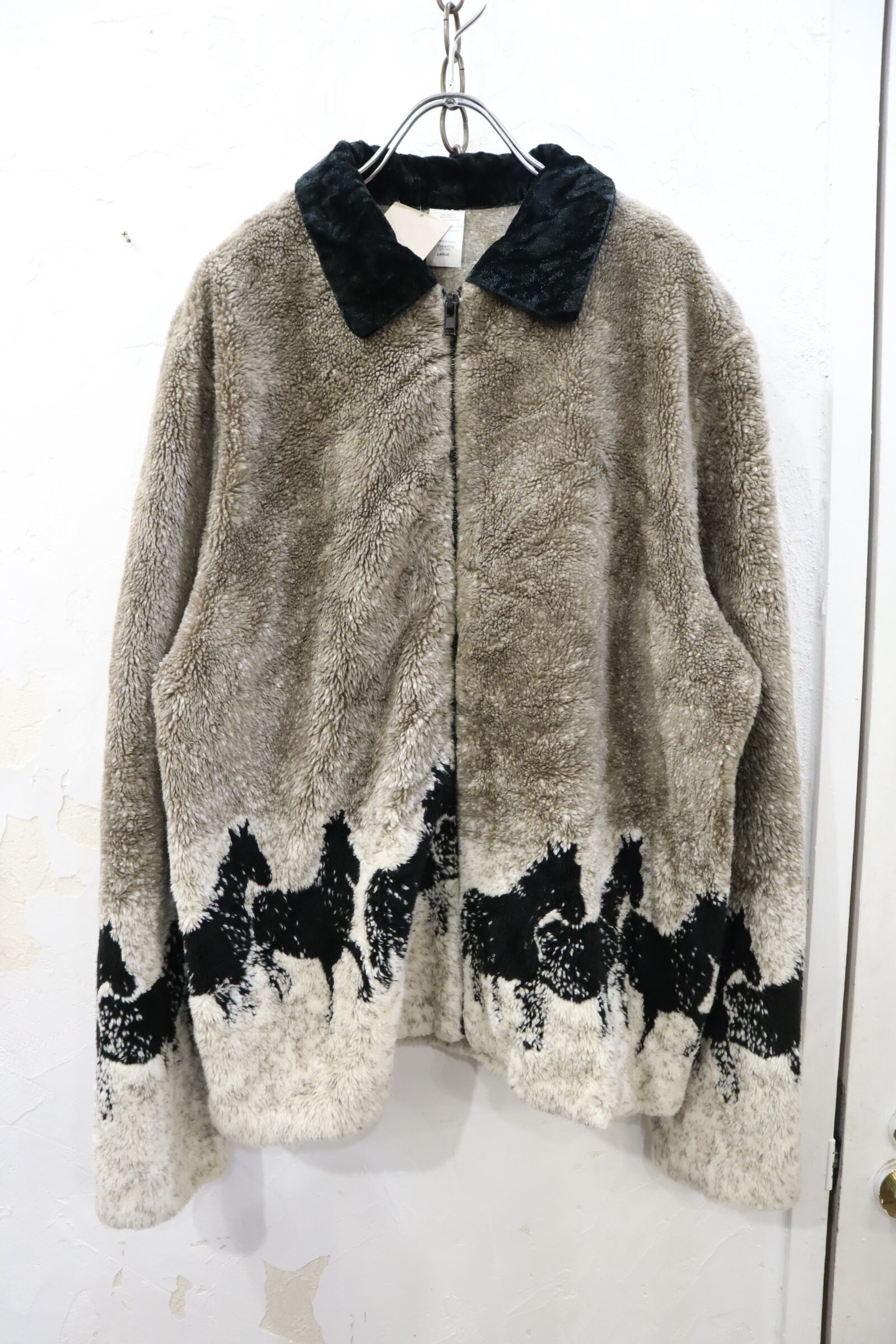 made in USA beige×black horse pattern fleece jacket [l-2458]