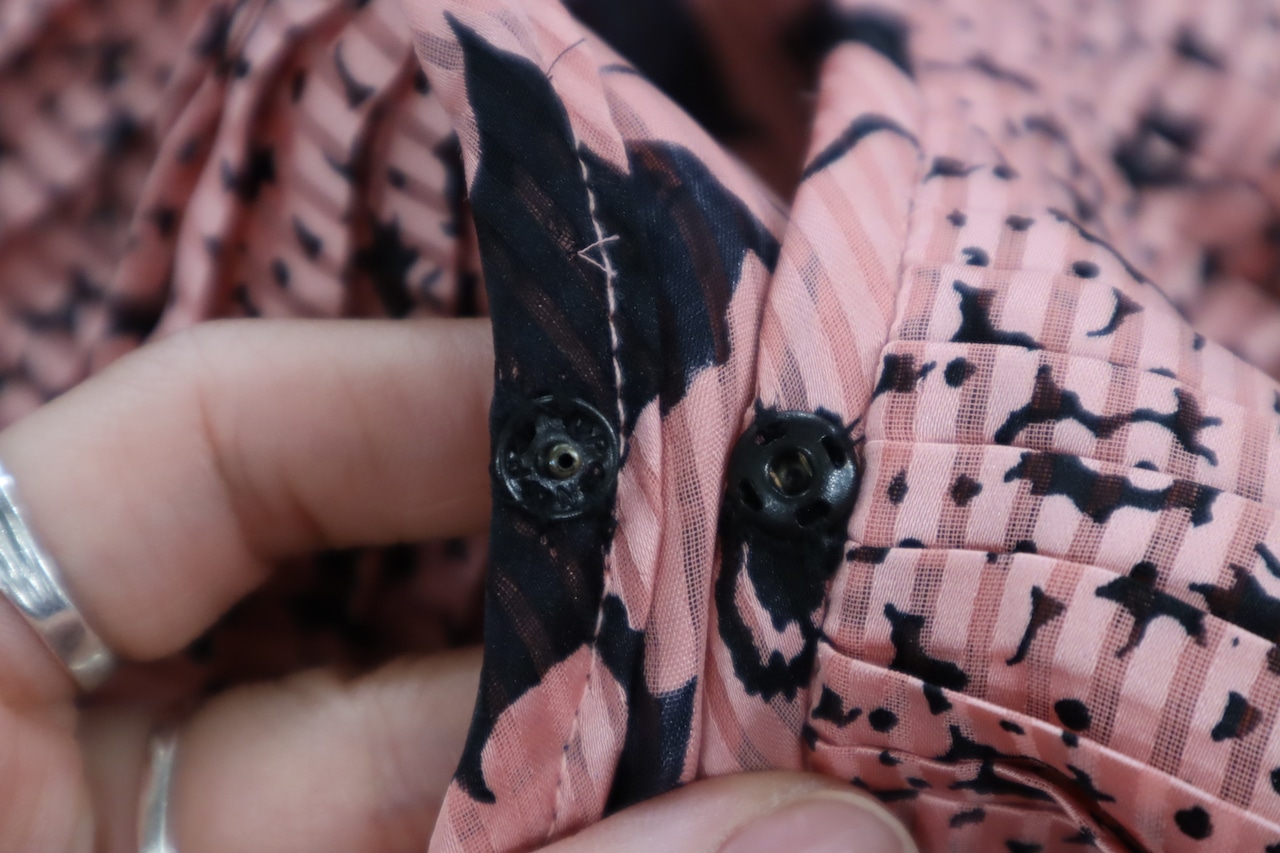 カシュクール部分にスナップボタンが付いており気分で開き具合を変えれるのも良いですね。