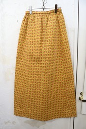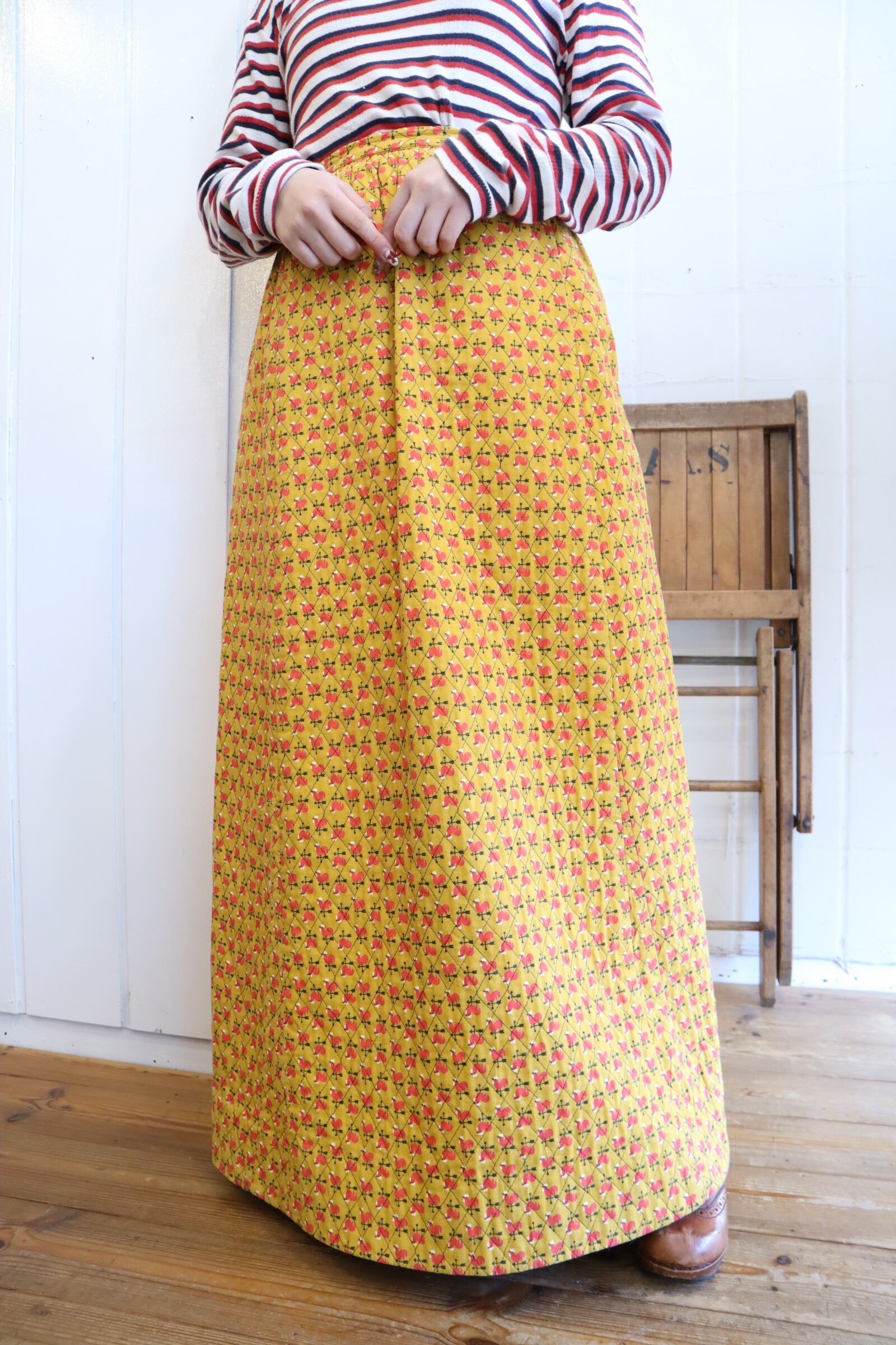 70s yellow×orange bird pattern quilting long skirt [l-2464]