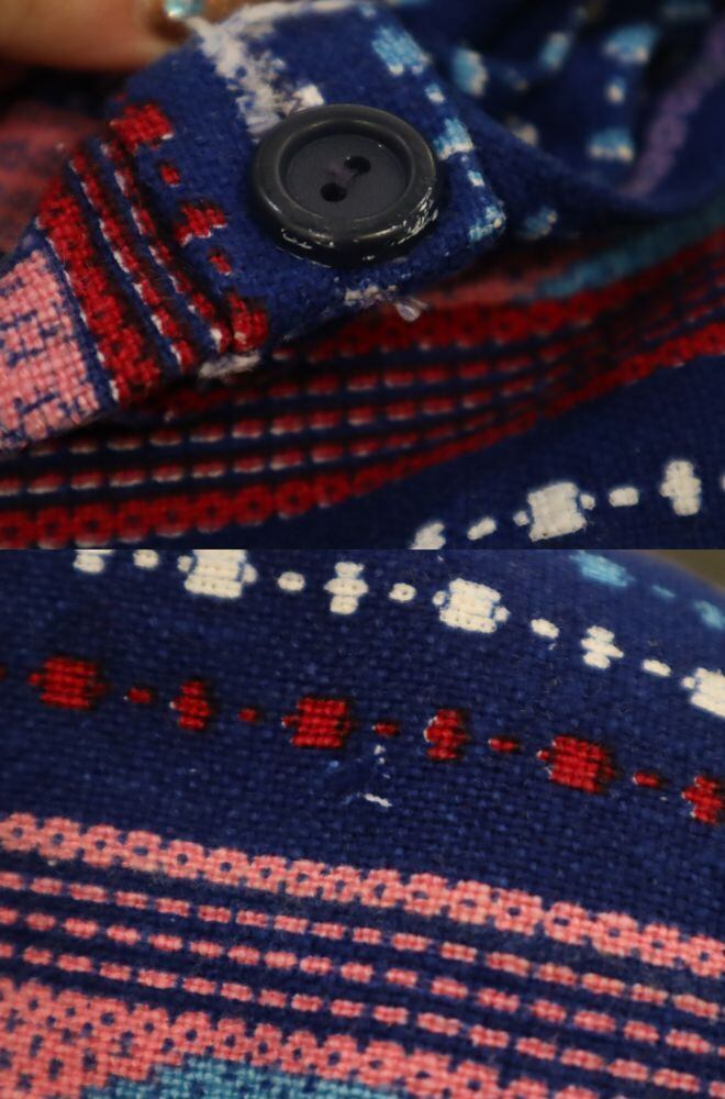 一部ボタンのキズや小さな生地の剥がれがございますが、あまり気にならないかと思われます。