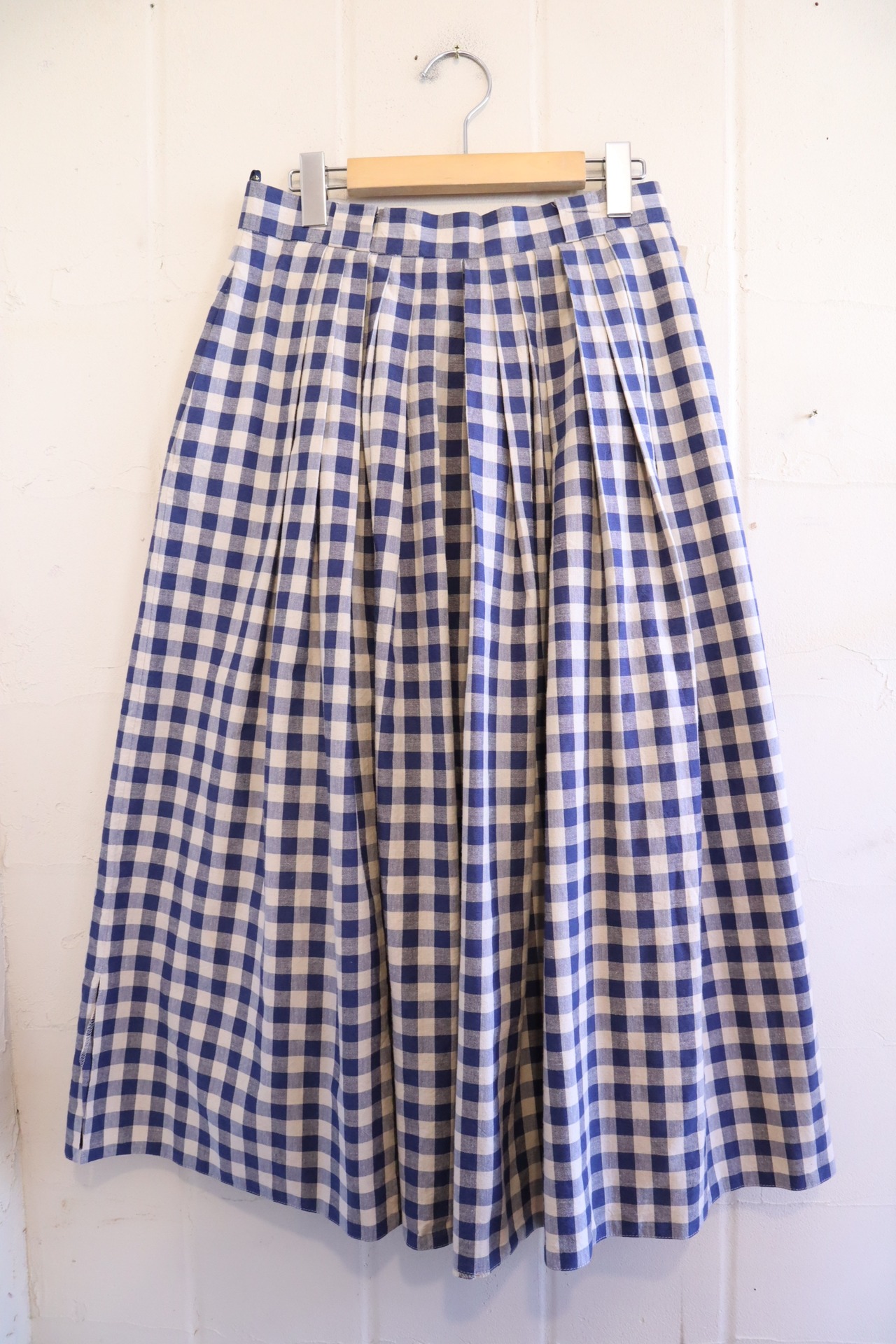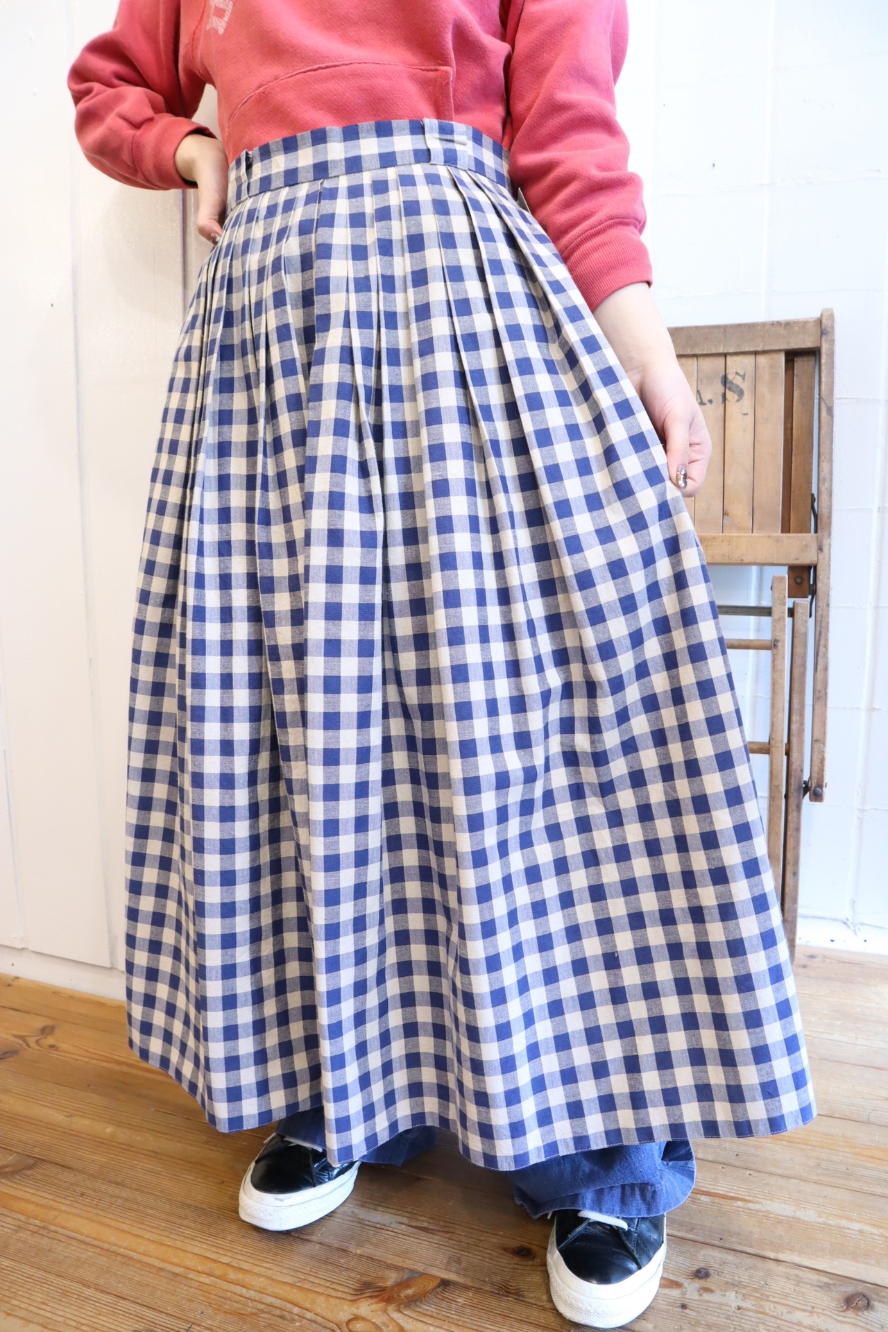 blue×offwhite ginghamcheck tyrol skirt [l-2500]