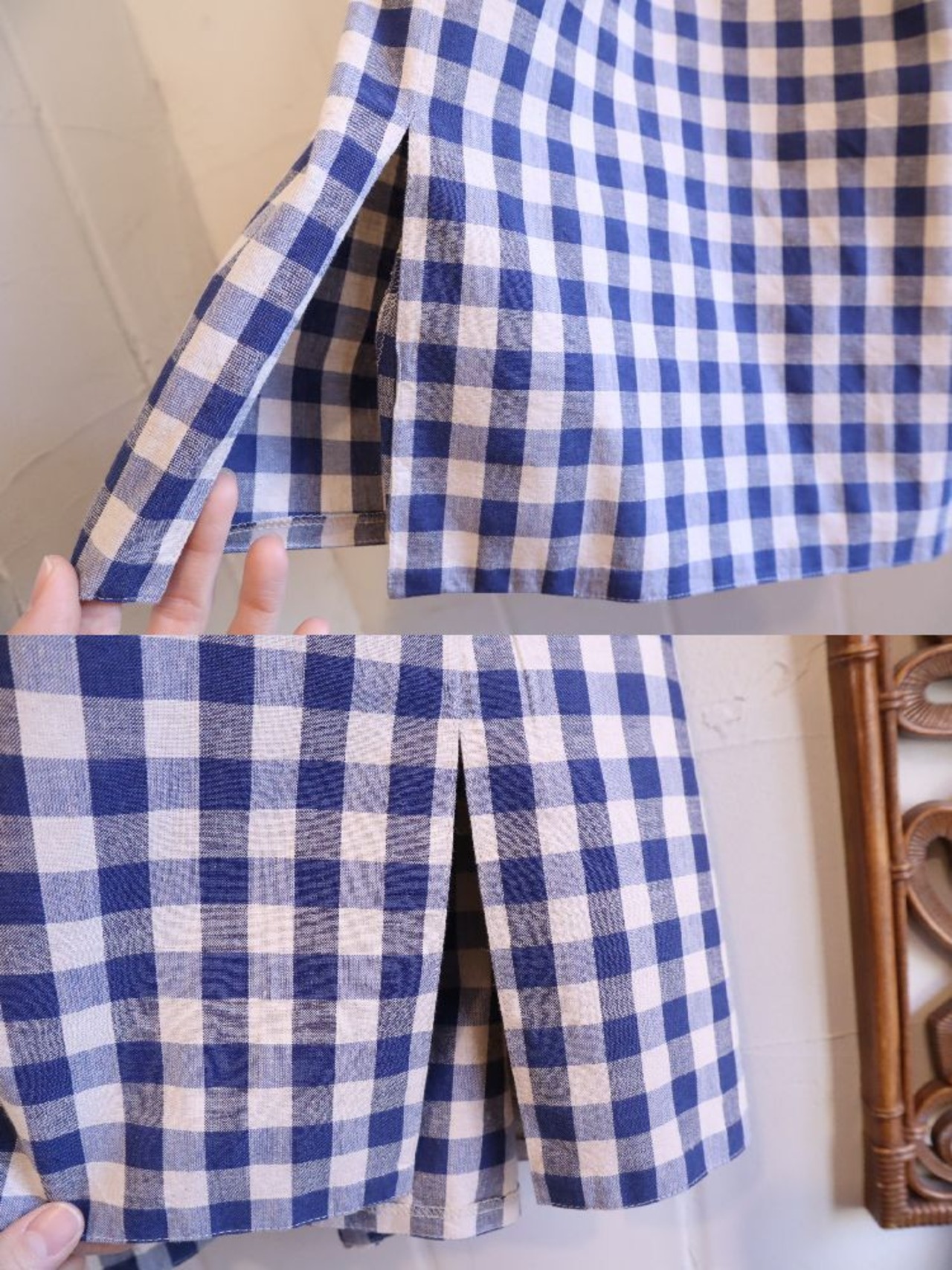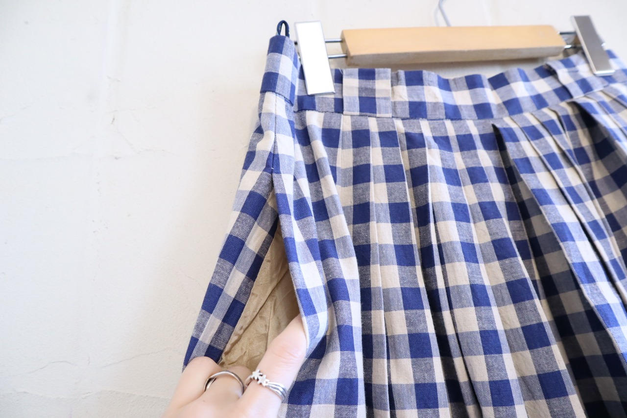 ベージュに近いオフホワイトとブルーのギンガムチェックが可愛いチロルスカート。