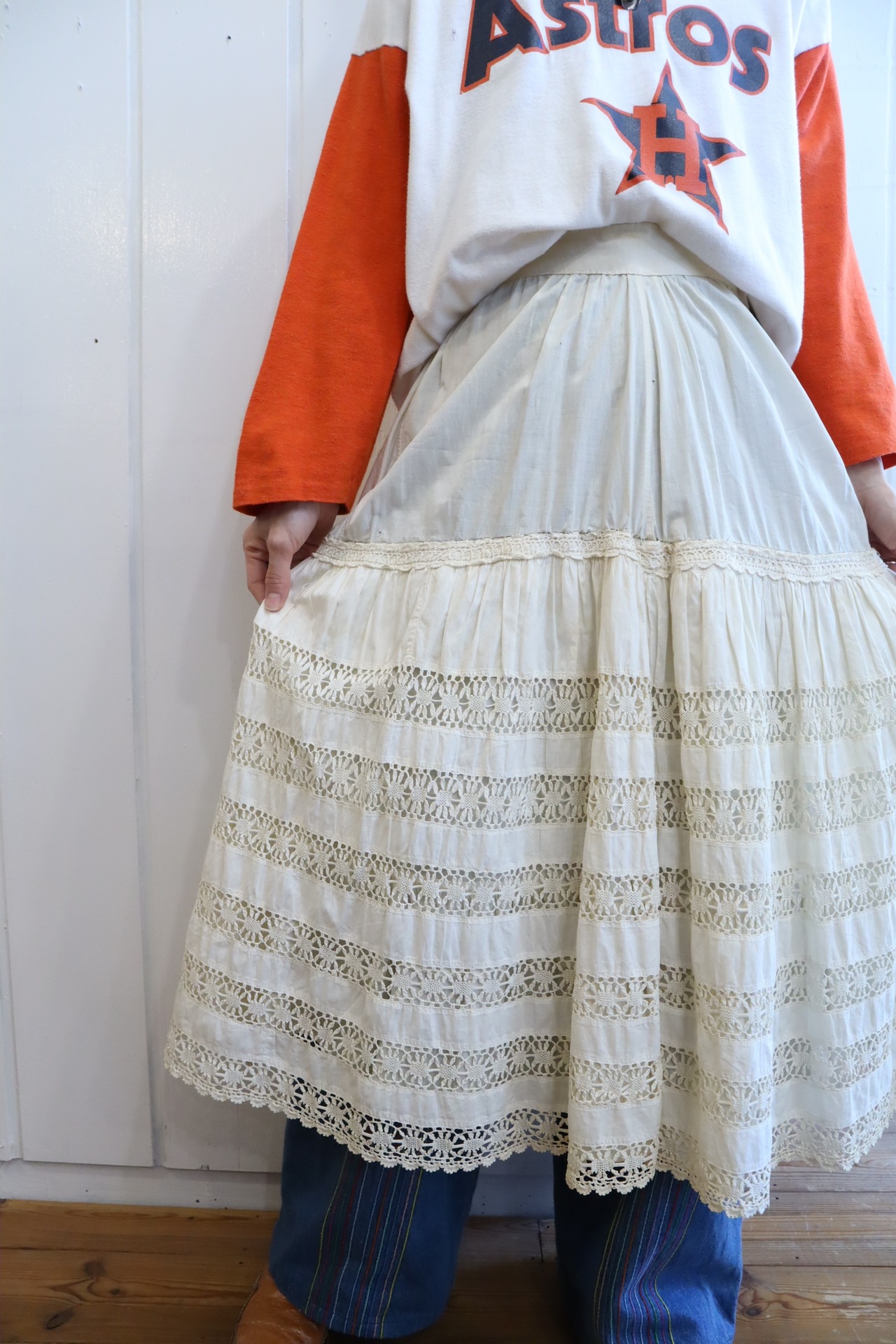 繊細なアンティーク生地、かぎ編みレースやふわっと広がるシルエットが素敵なパニエスカート。