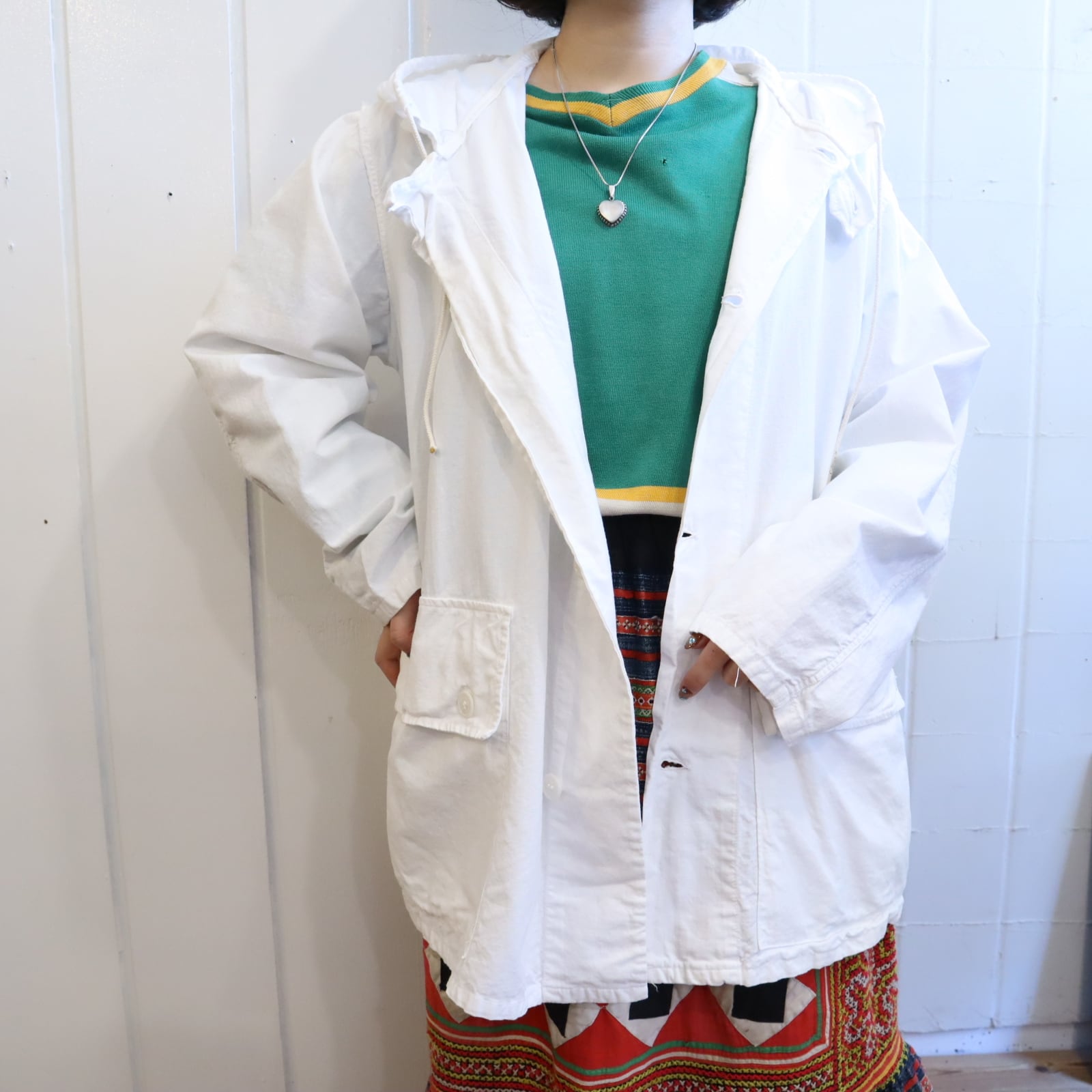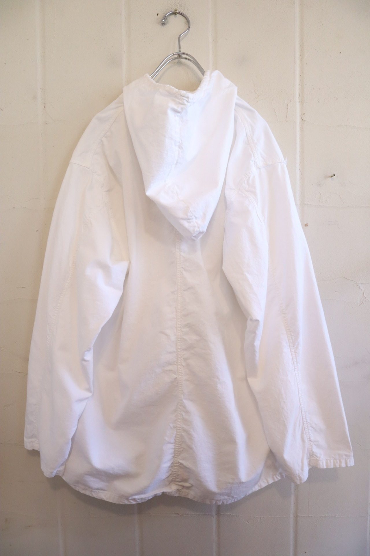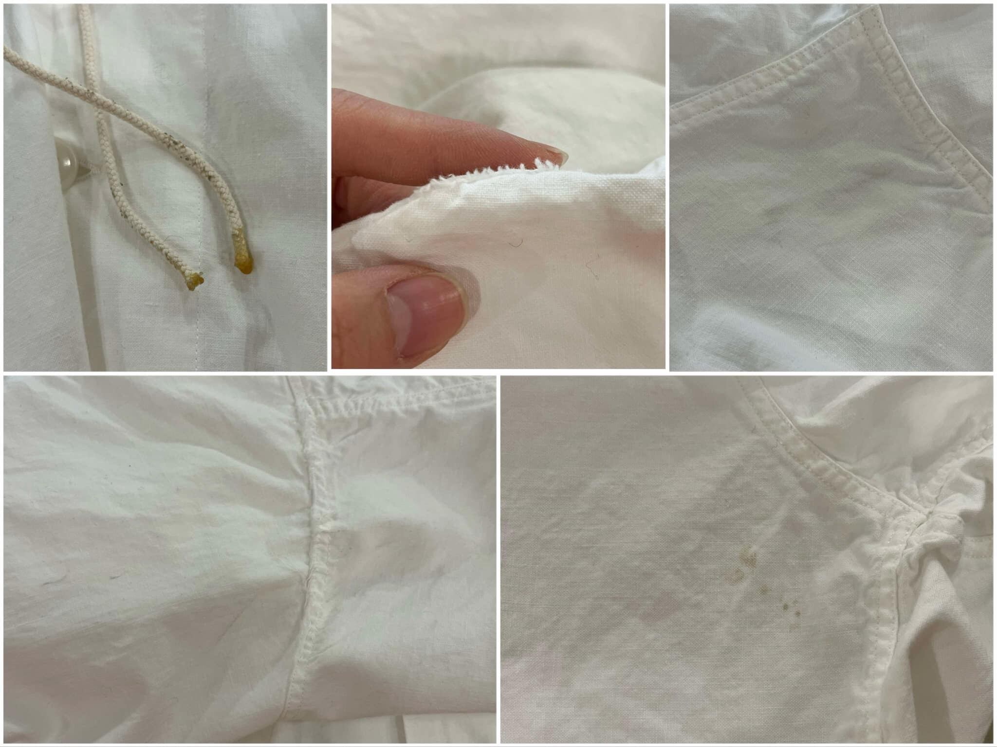 フード紐先端にぷにぷにした少し粘着性のある汚れ・縫い目から生地のホツレが飛び出しておりますが、着用に問題はないかと思います。