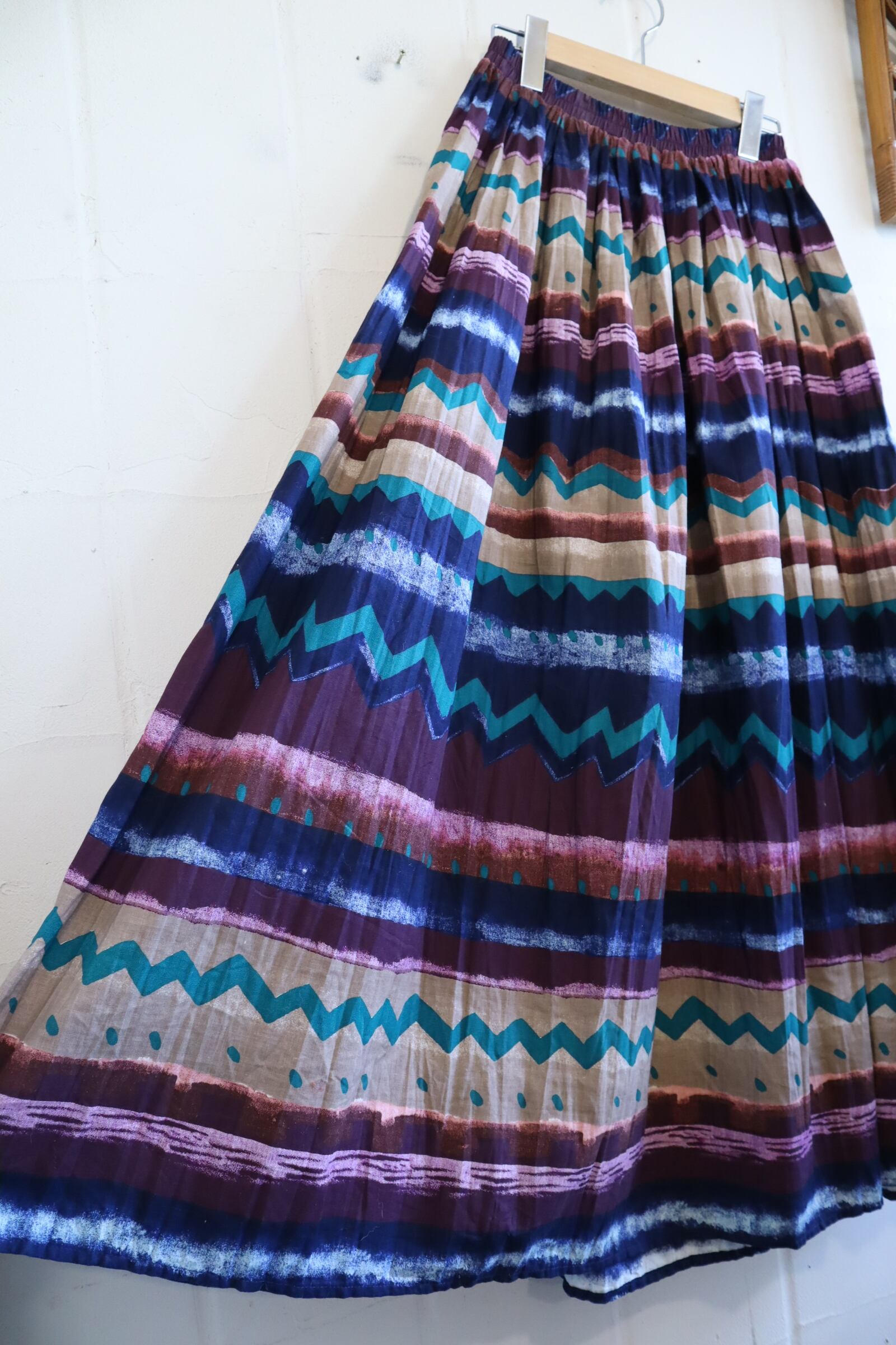 ギザギザ模様や染めのようなプリントが素敵な80年代頃のロング丈スカート。