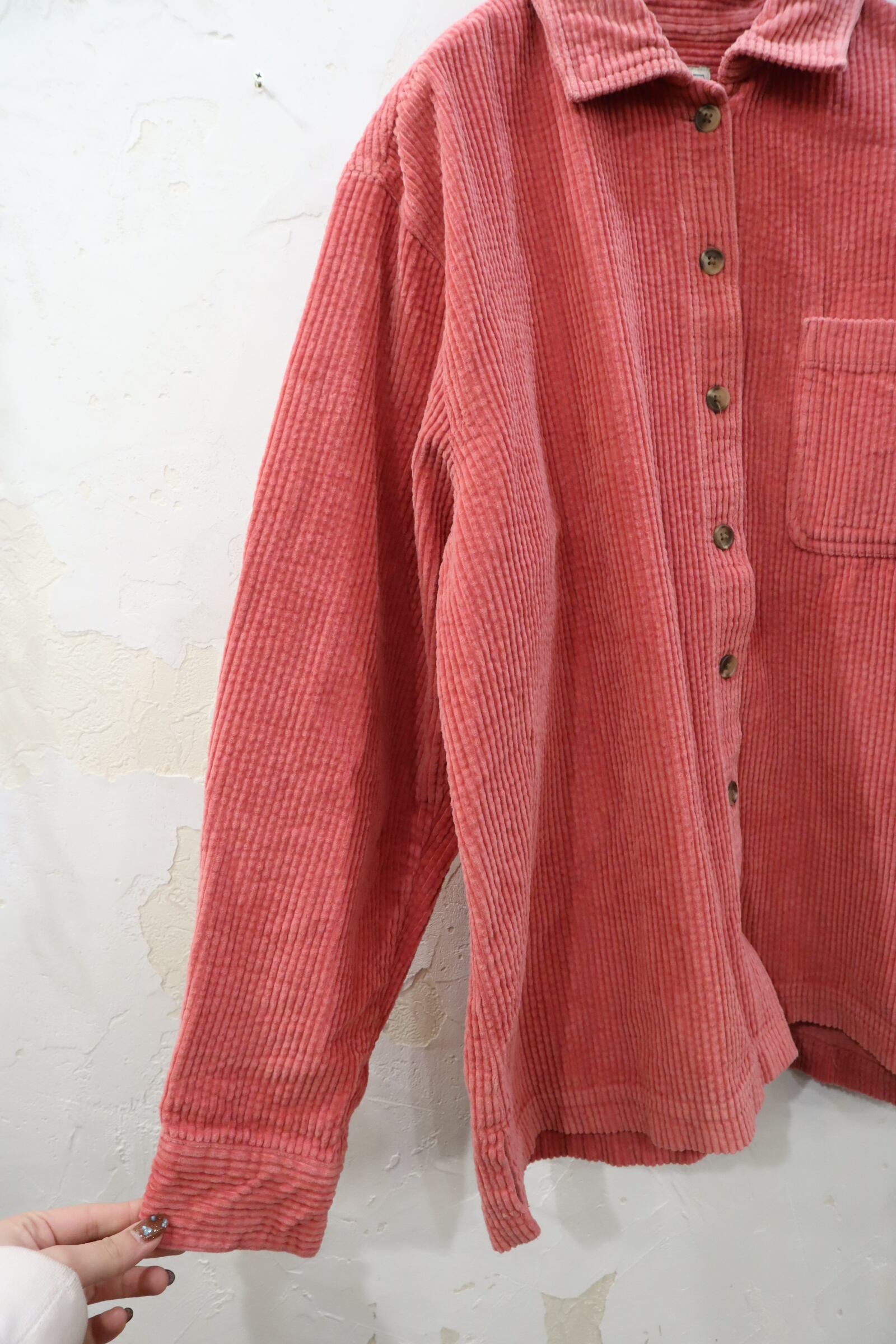 パキっとしたピンクが可愛いコーデュロイシャツです。