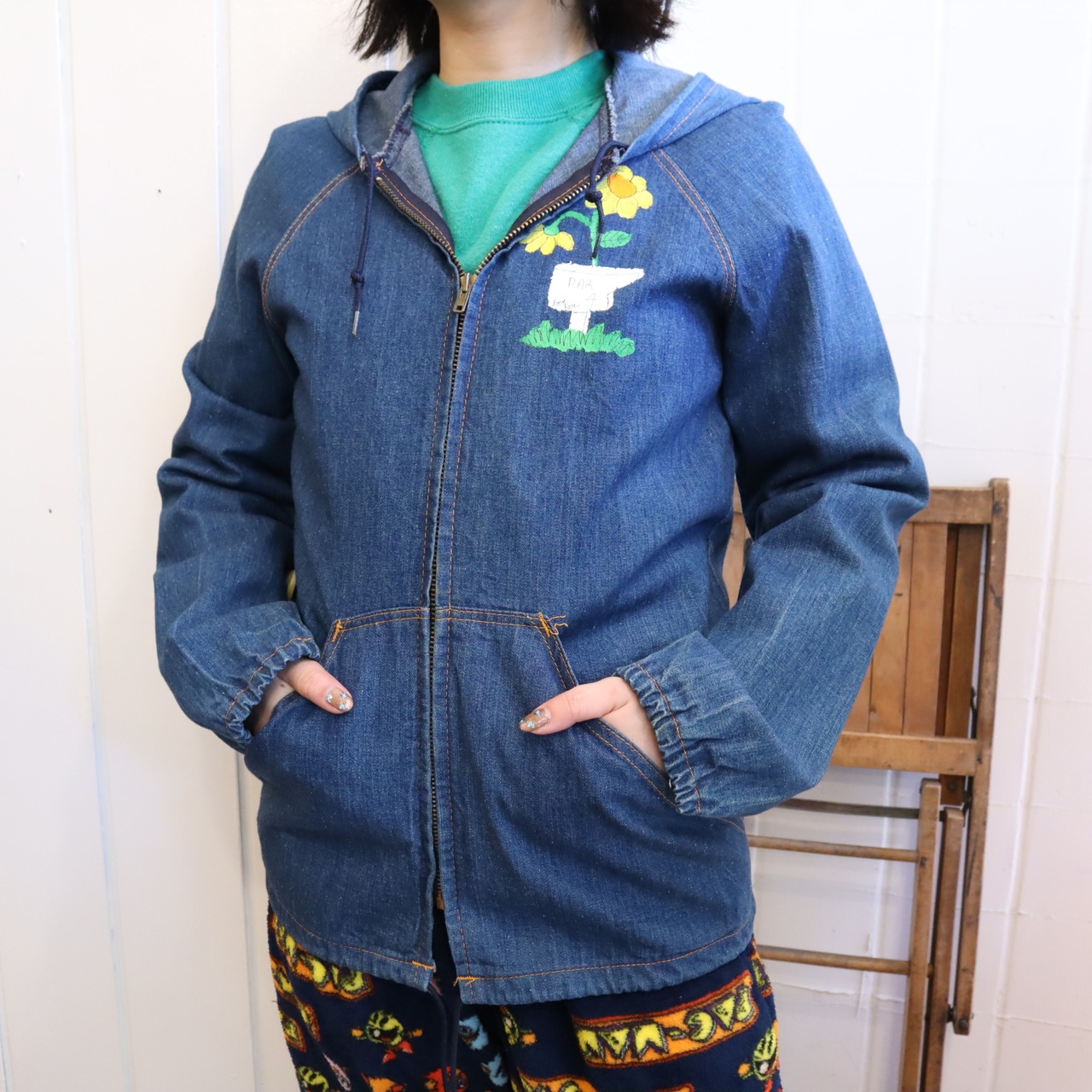70s indigoblue handpaint hood denim jacket [l-2537]