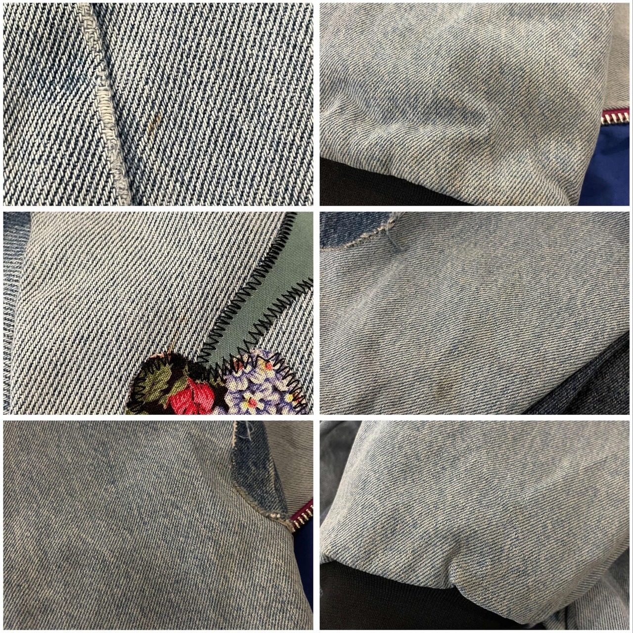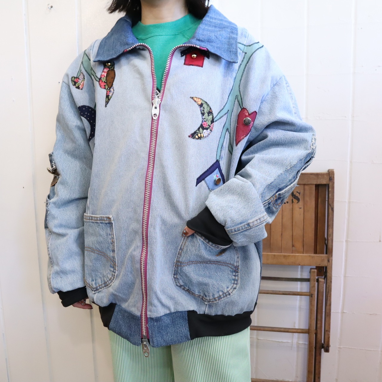 ハートや星、鳥や巣箱などのパッチがキュートなデニムジャケット。