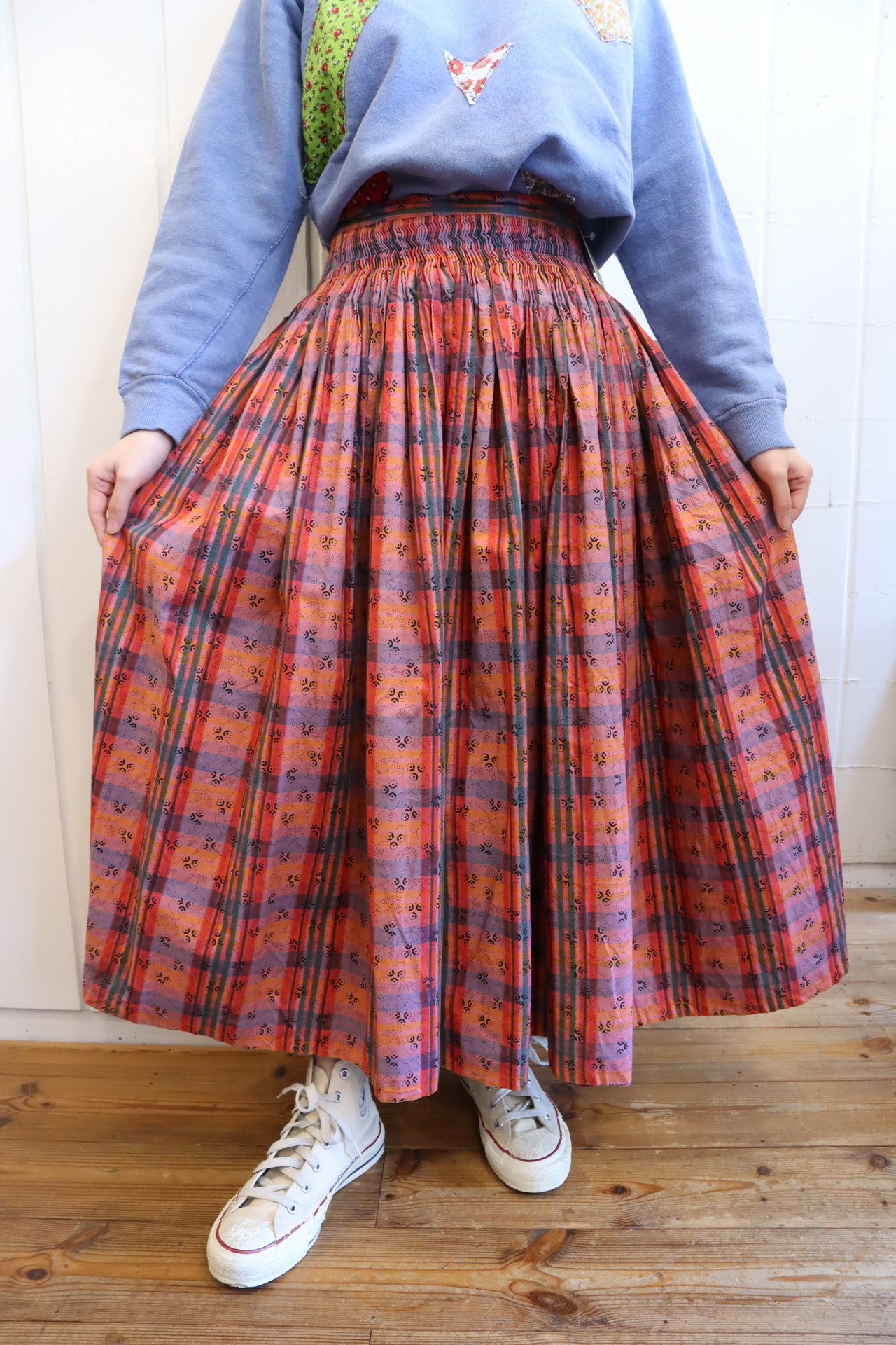 pink×blue×colorful plaid & leaf pattern tyrol skirt [l-2544]