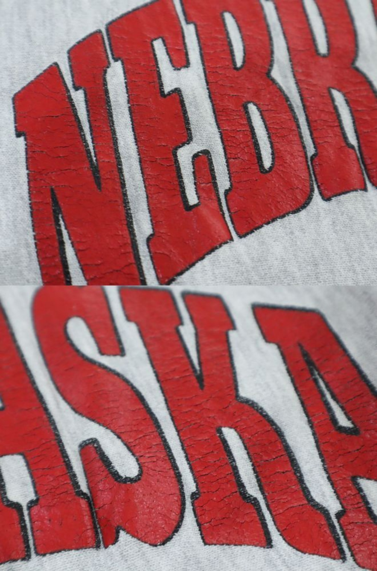 プリント全体にひび割れがございますが、古着の味として着て頂けるかと思われます。