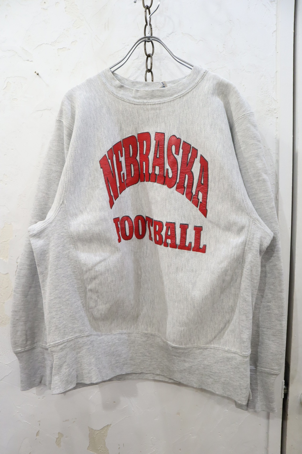 80s champion gray×red rubber print reverse weave sweat [l-2553]