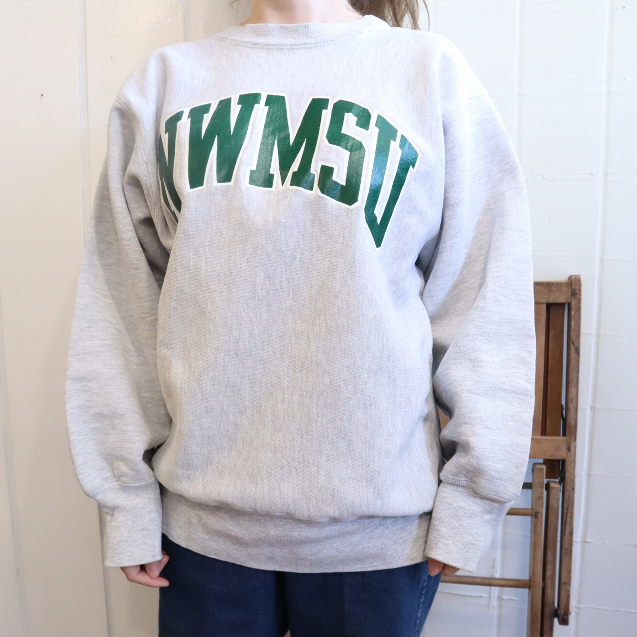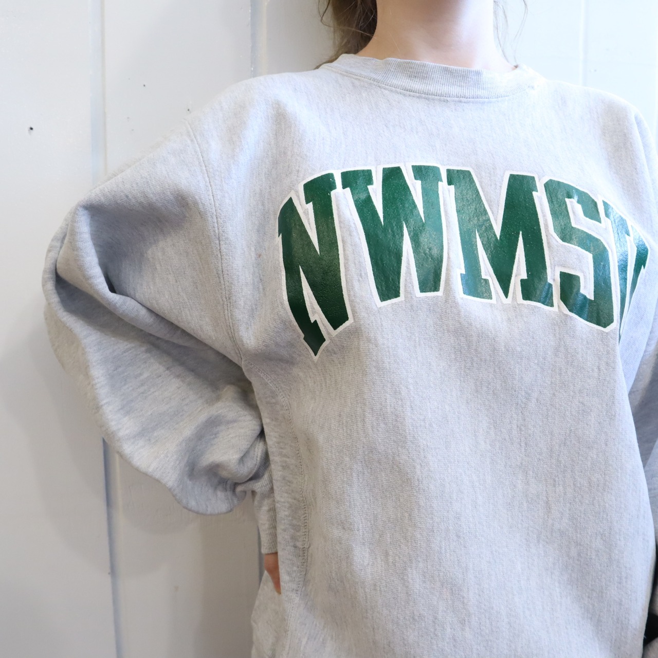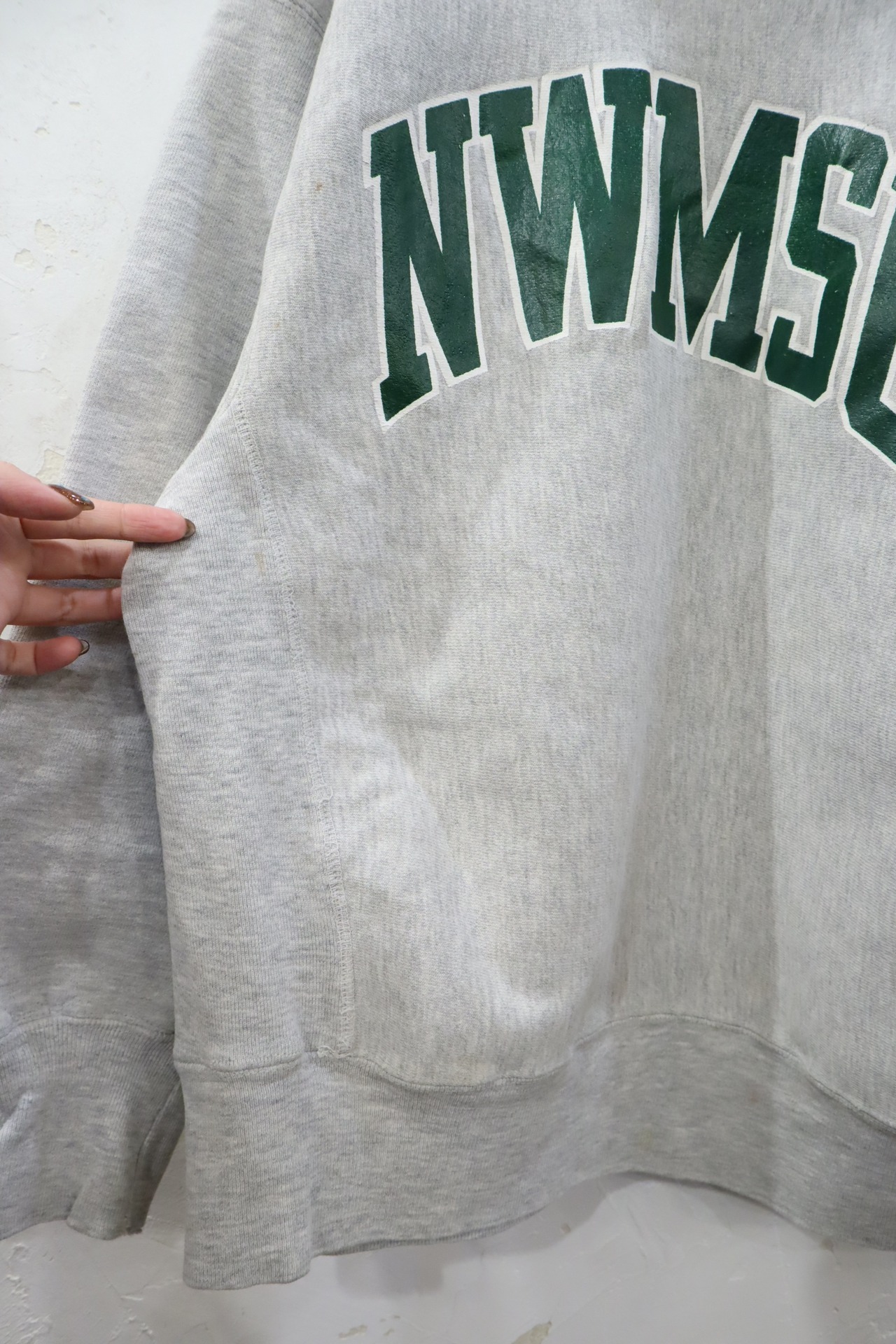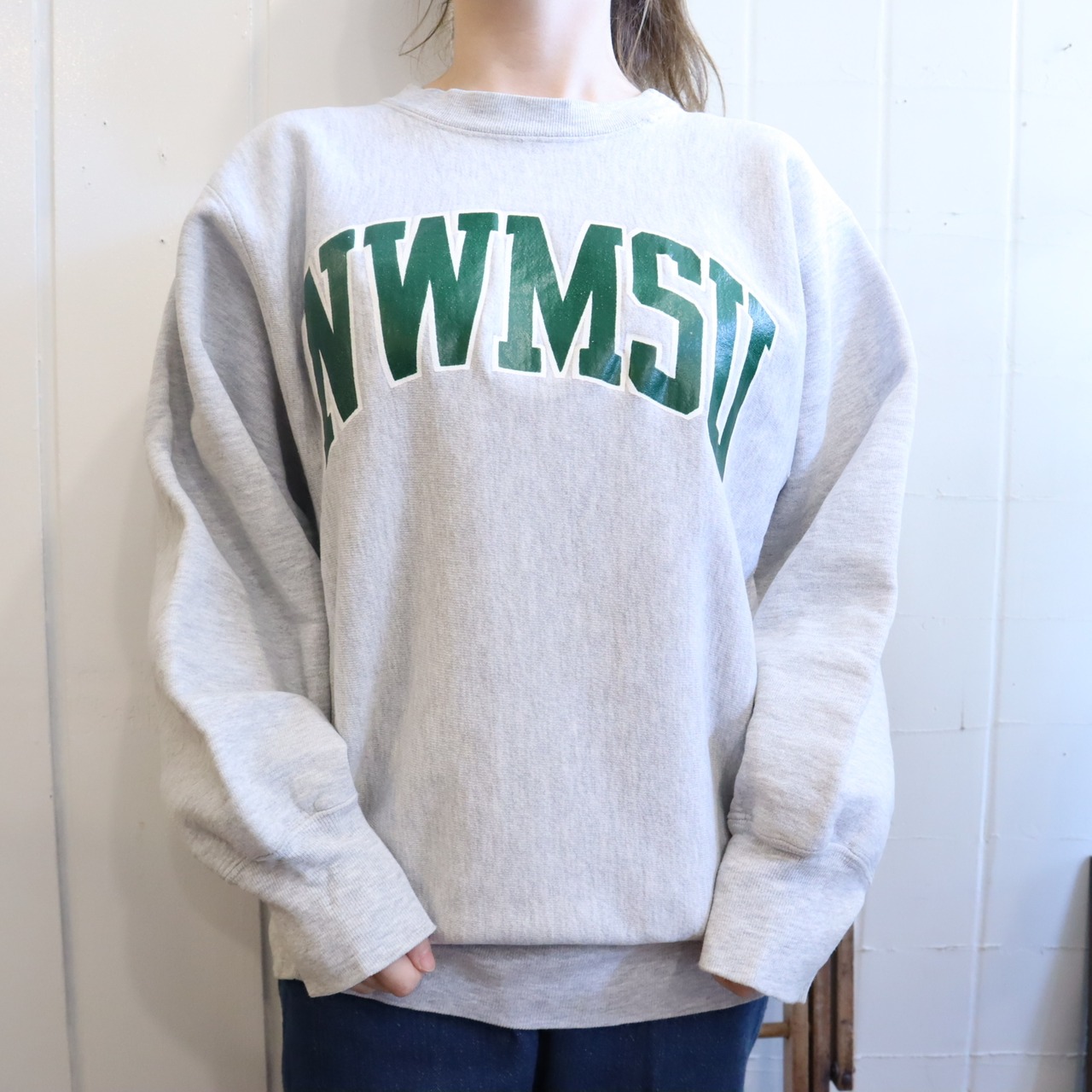 80s champion gray×green rubber print reverse weave sweat [l-2554]