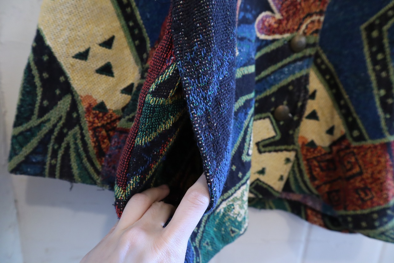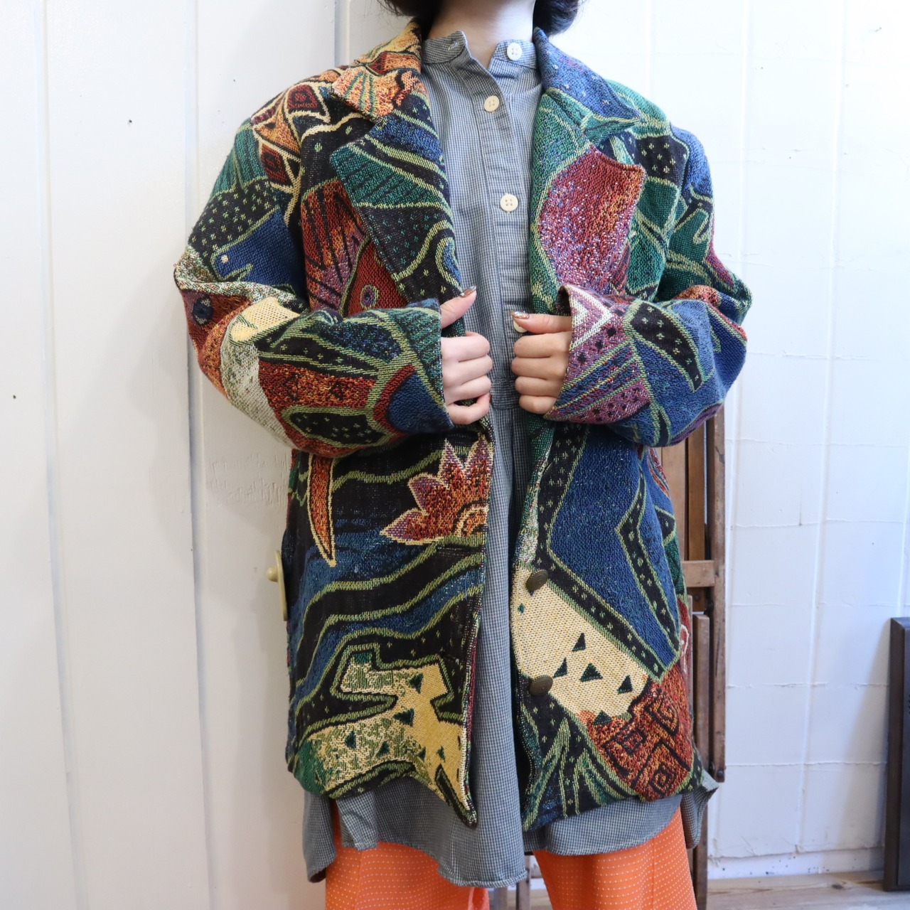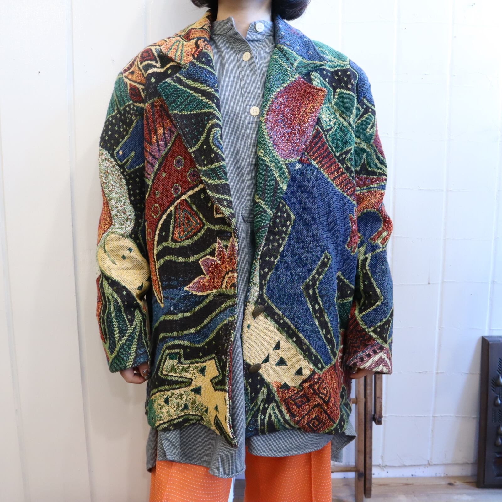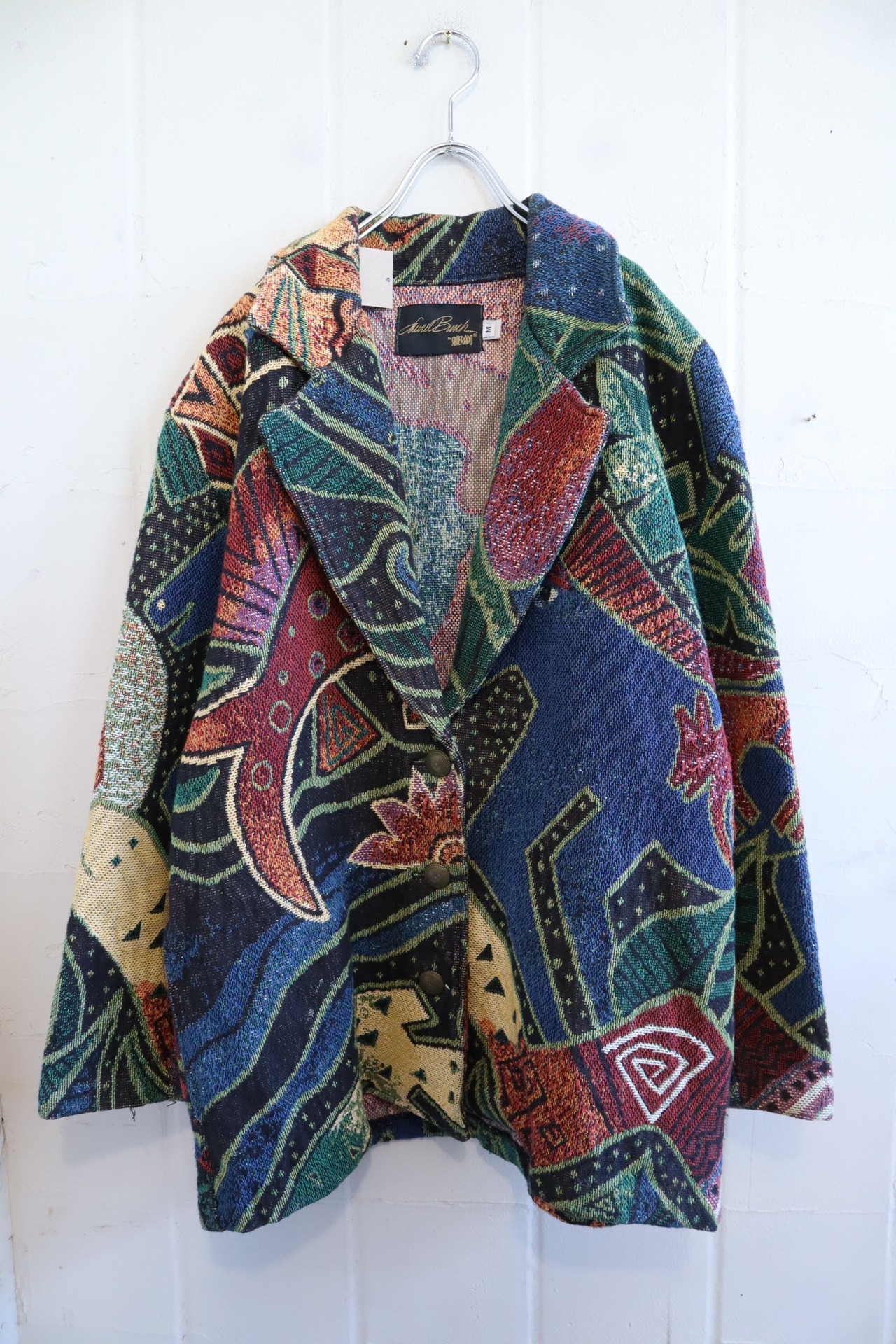 made in USA blue×green×red total pattern gobelin jacket [l-2562]